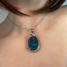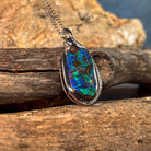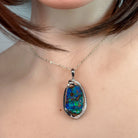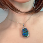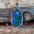 This striking 14kt white gold pendant showcases a magnificent 27.56ct boulder opal, renowned for its vibrant play of colors and natural patterns. Its bold size and luminous sparkle make it the perfect centerpiece for any outfit, delivering unmatched elegance and a unique statement of luxury. Ideal for those who appreciate distinctive, high-quality gemstones that captivate attention effortlessly.