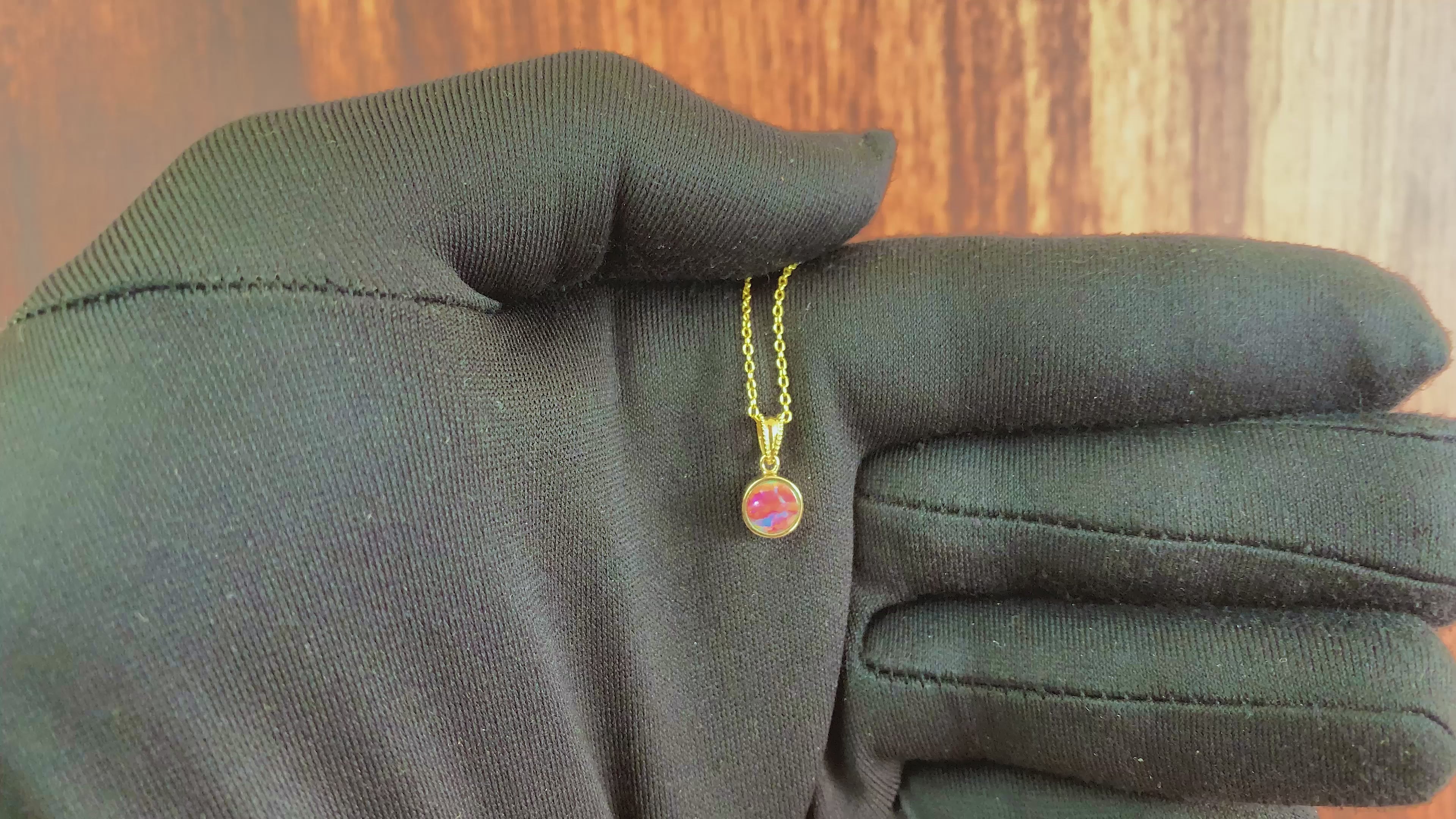 14kt Yellow Gold 5.7mm Round Opal doublet pendant