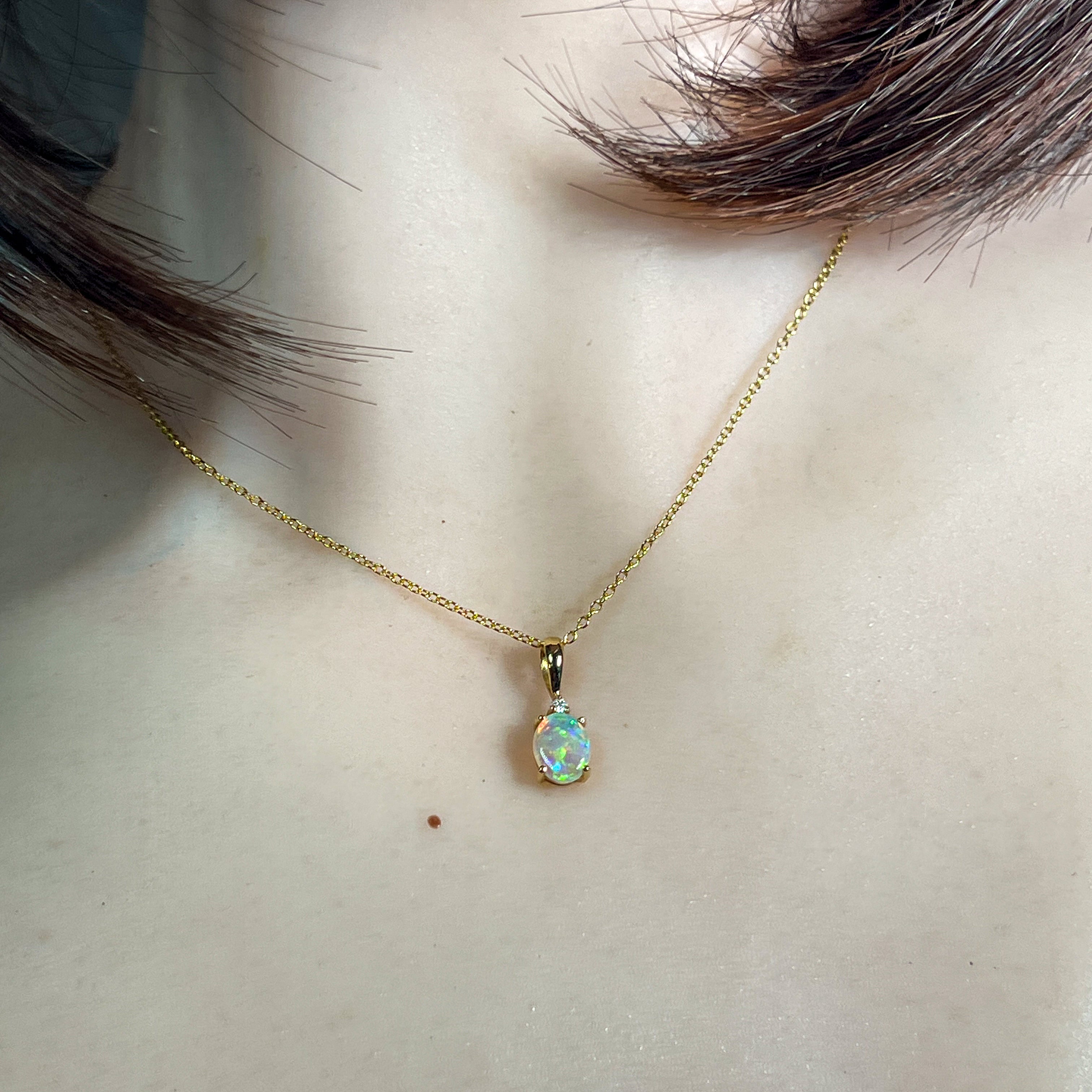 14kt Yellow Gold 8x6mm Crystal Opal and diamond pendant