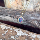 18kt Yellow Gold 8x6mm Opal doublet and diamond pendant