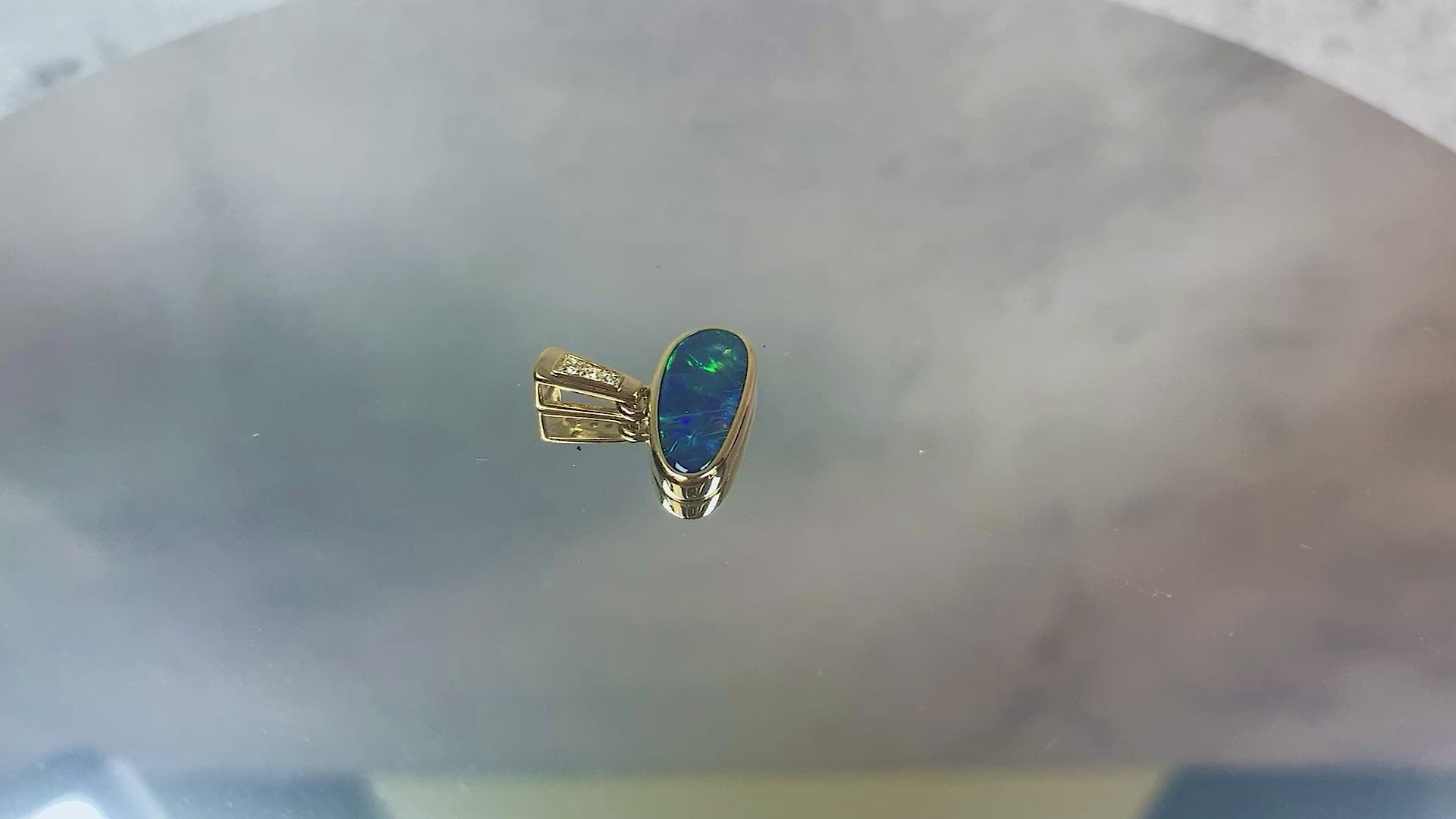 9kt Yellow Gold 0.83ct Opal doublet and diamond pendant