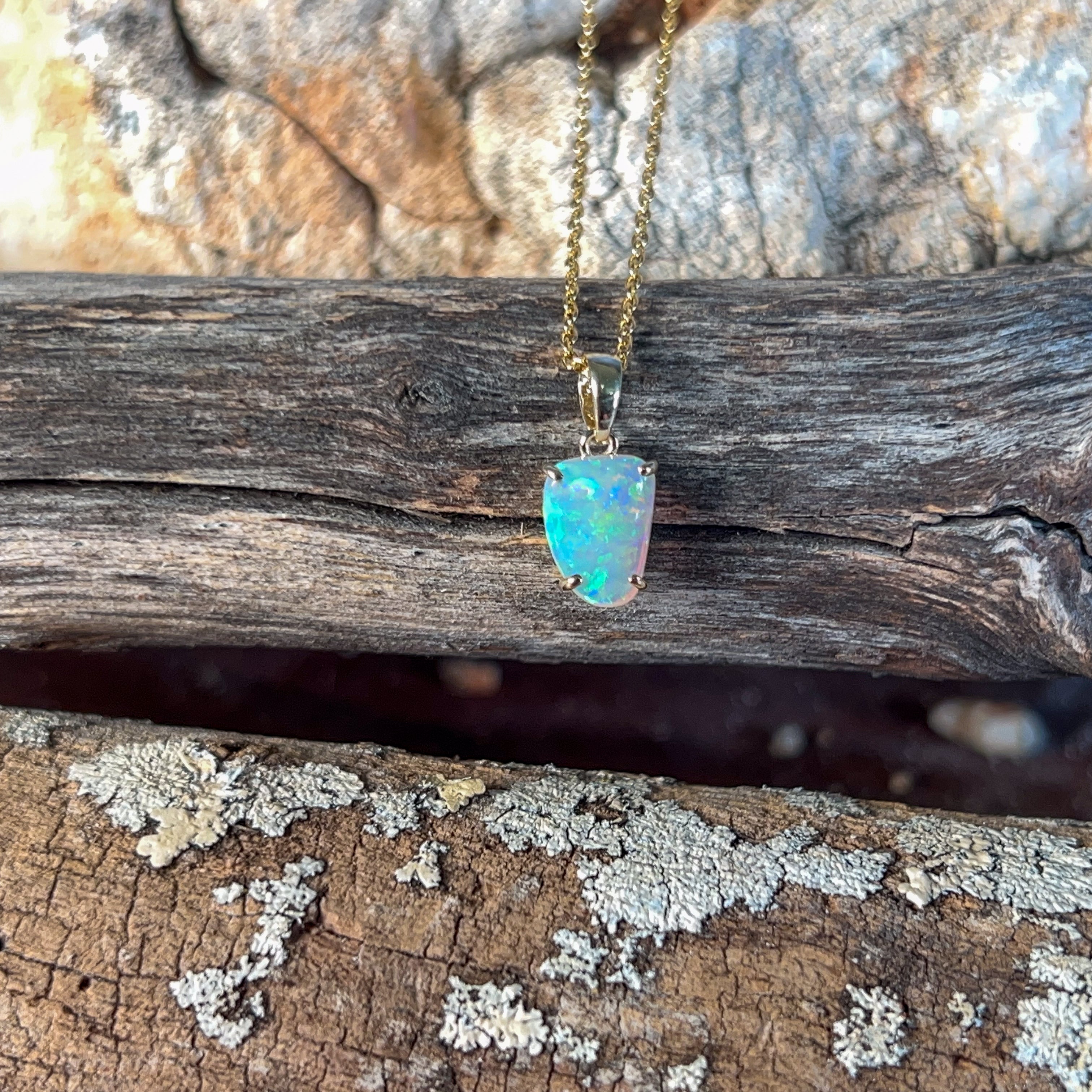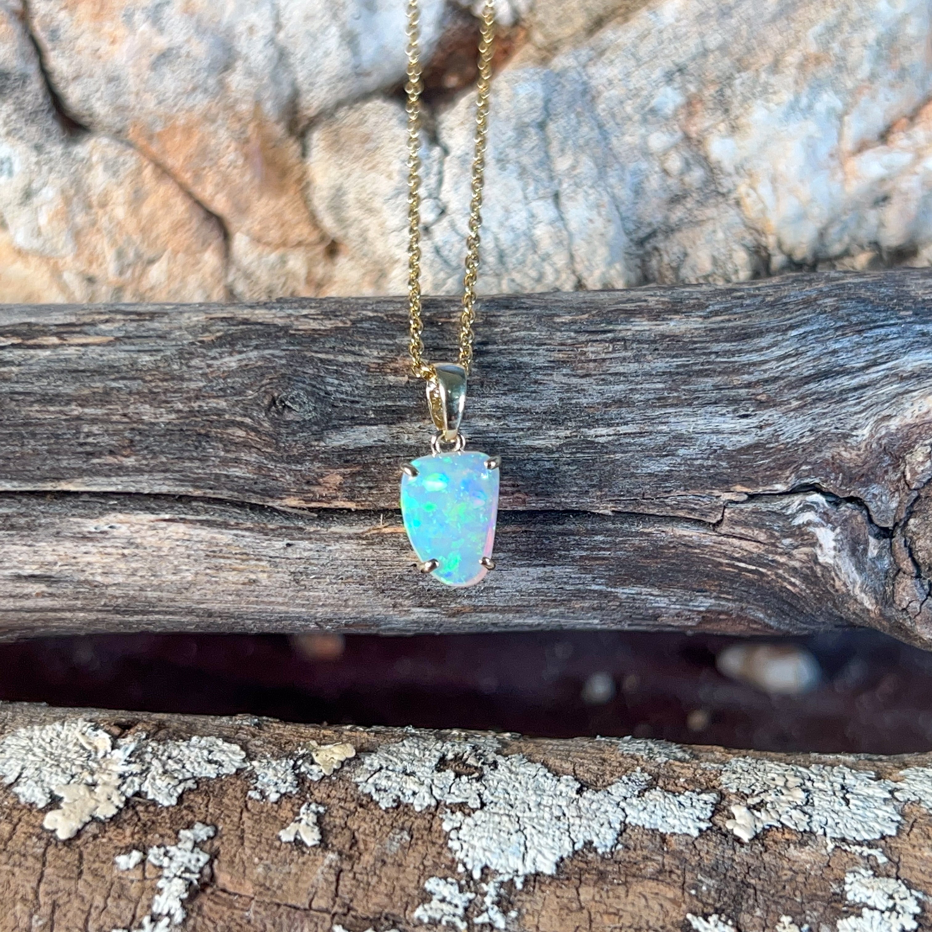 9kt Yellow Gold crystal Opal 1.1ct pendant claw set