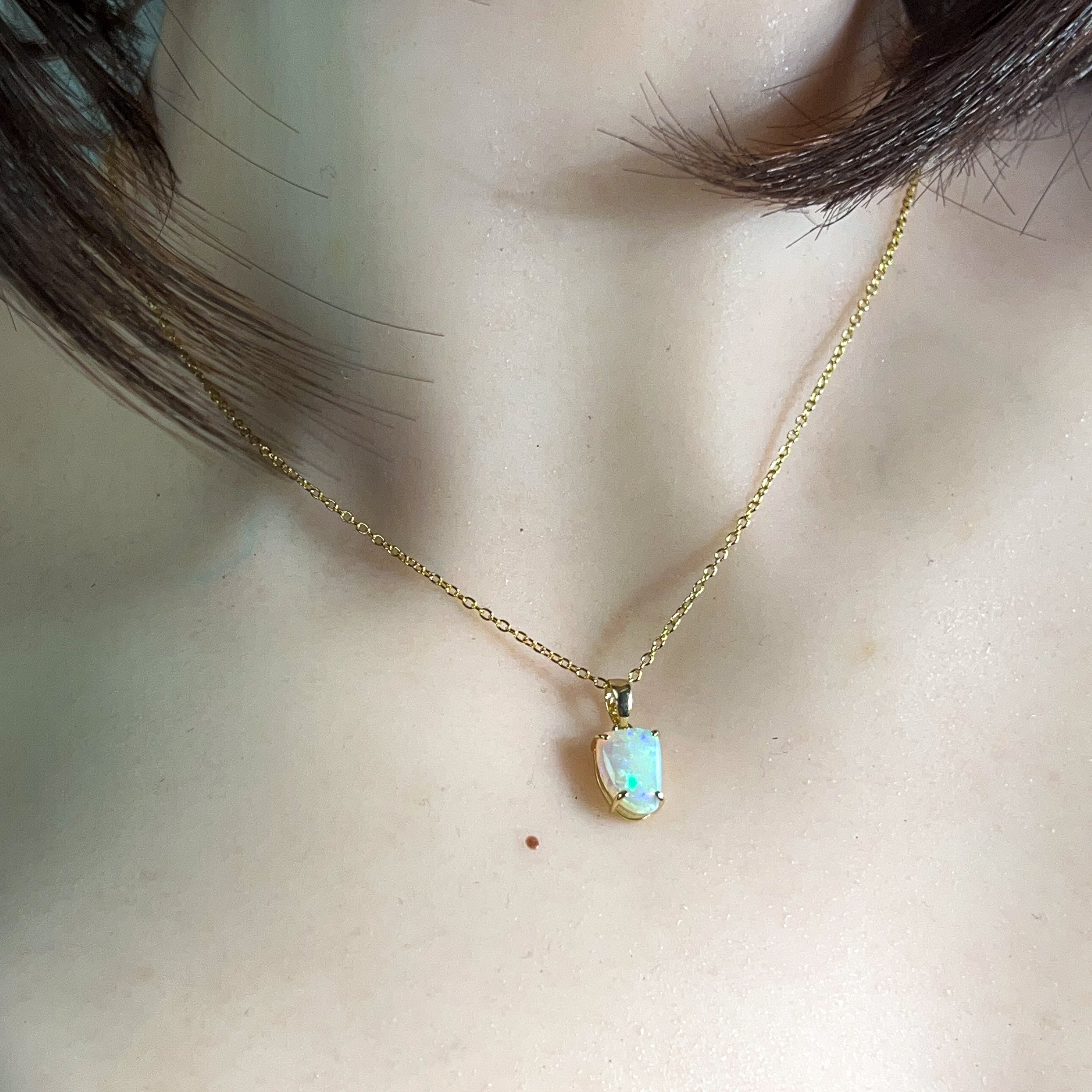 Elevate your everyday elegance with this stunning 9kt yellow gold pendant, featuring a radiant 1.1ct crystal opal secured in a refined claw setting. The dainty design captures light beautifully, showcasing the opal's mesmerizing play of colour in a contemporary style that complements any occasion. Perfect for those who appreciate understated luxury and timeless sophistication, this piece seamlessly transitions from day to night. A modern classic that deserves a place in your jewellery collection.