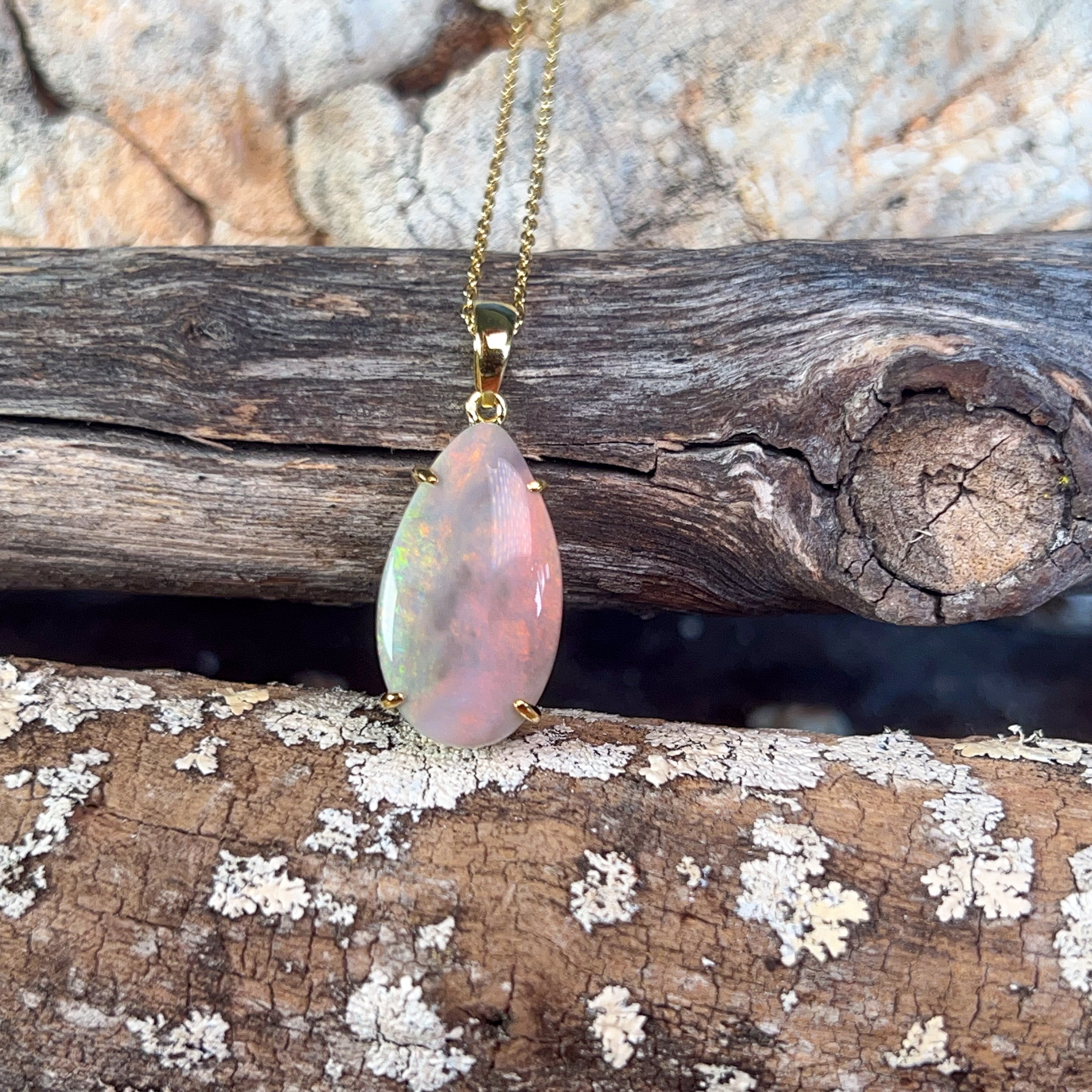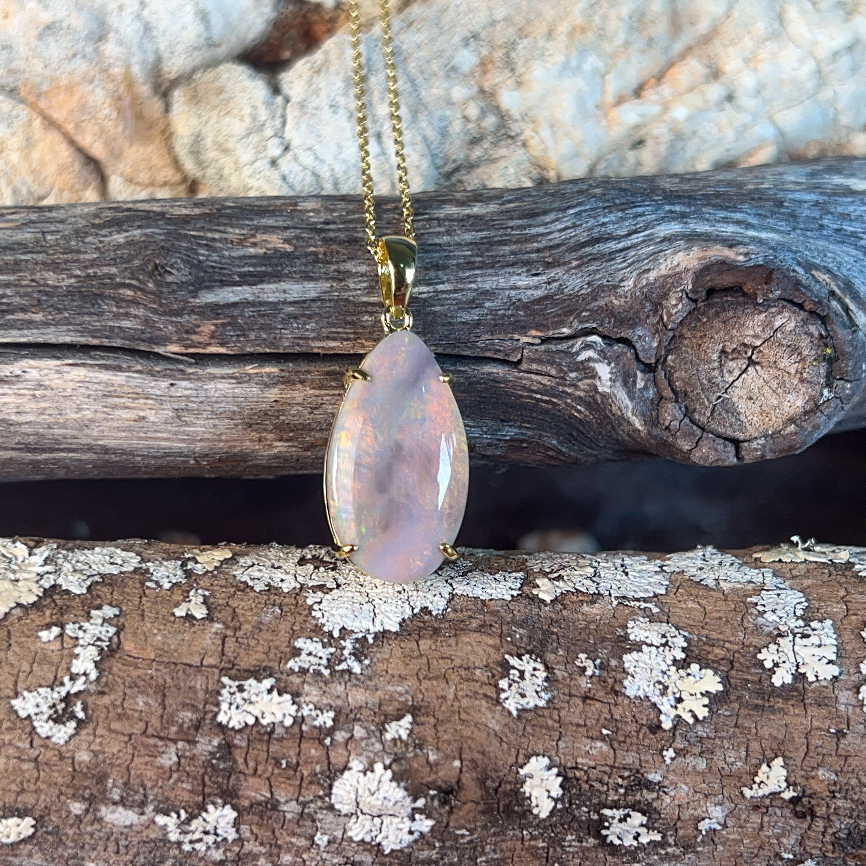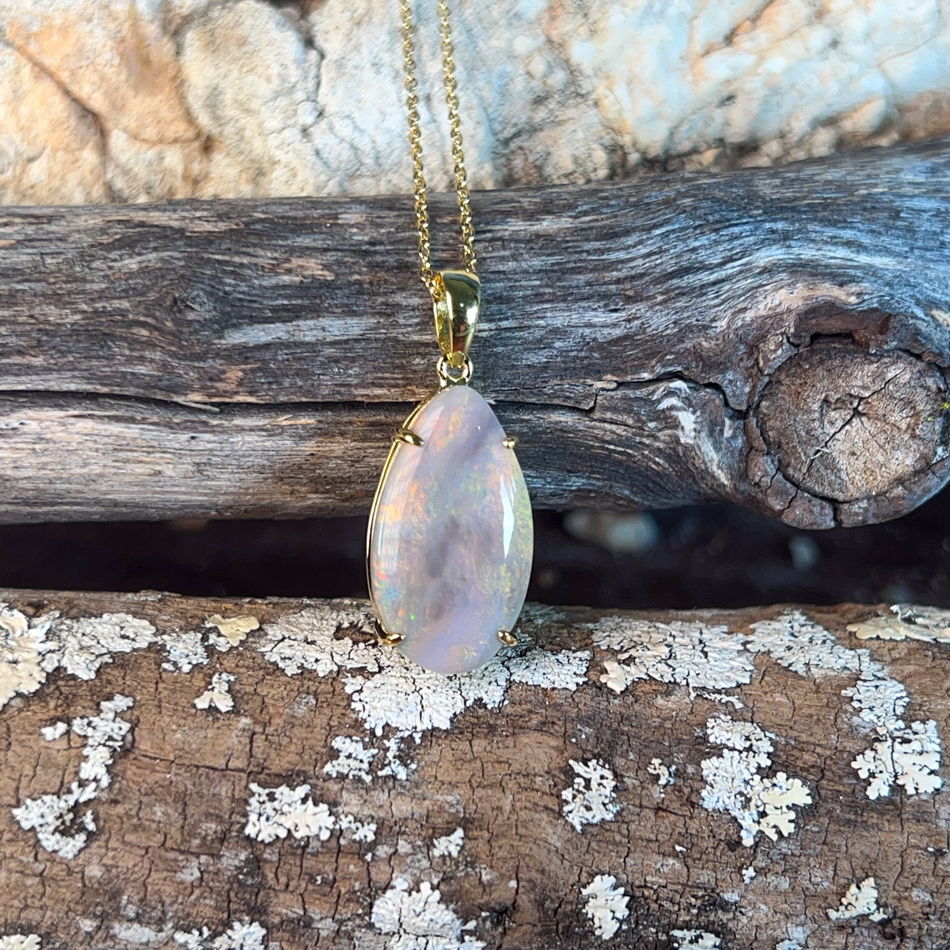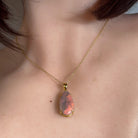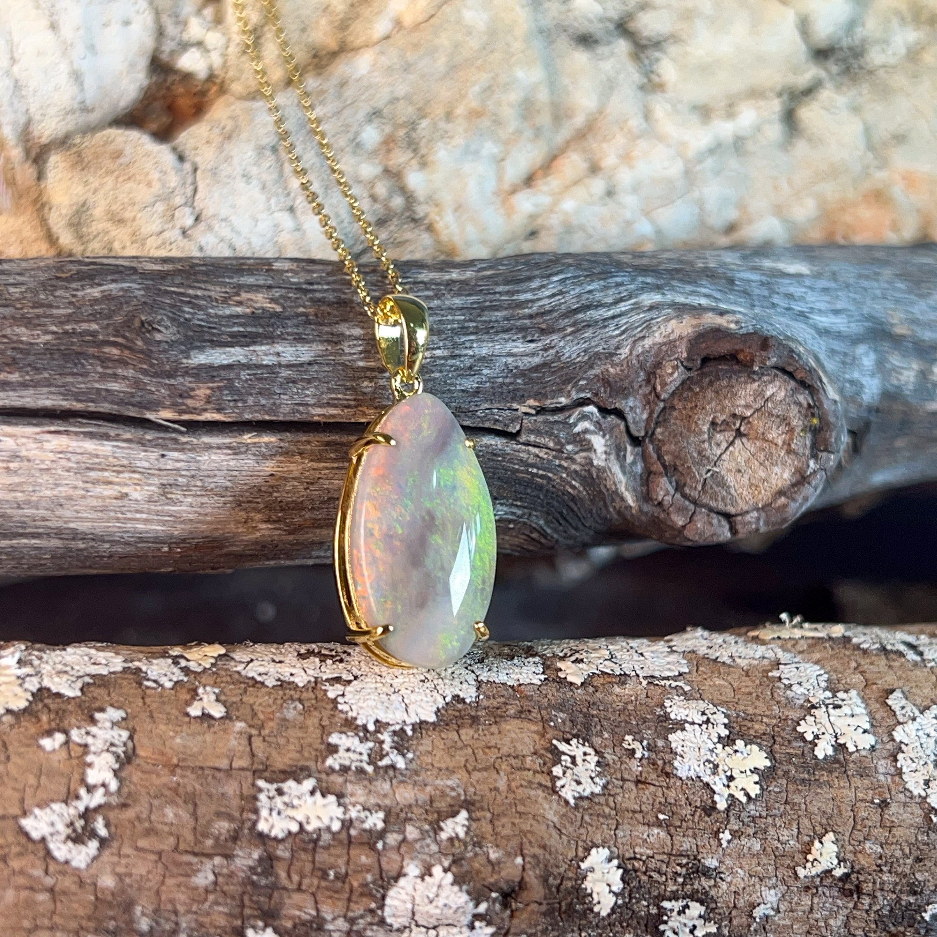 Discover the captivating allure of this exquisite Gold Plated Silver Black Opal pendant, featuring a stunning 7.08ct natural black opal that showcases mesmerising flashes of colour. The luxurious gold plating over sterling silver creates an elegant frame that enhances the opal's dramatic play-of-colour, making it a truly distinctive statement piece. Perfect for those who appreciate rare gemstones and timeless sophistication, this pendant combines the prestige of precious metals with the unparalleled beauty of Australian black opal. An investment in wearable art that will captivate admirers and become a cherished heirloom.