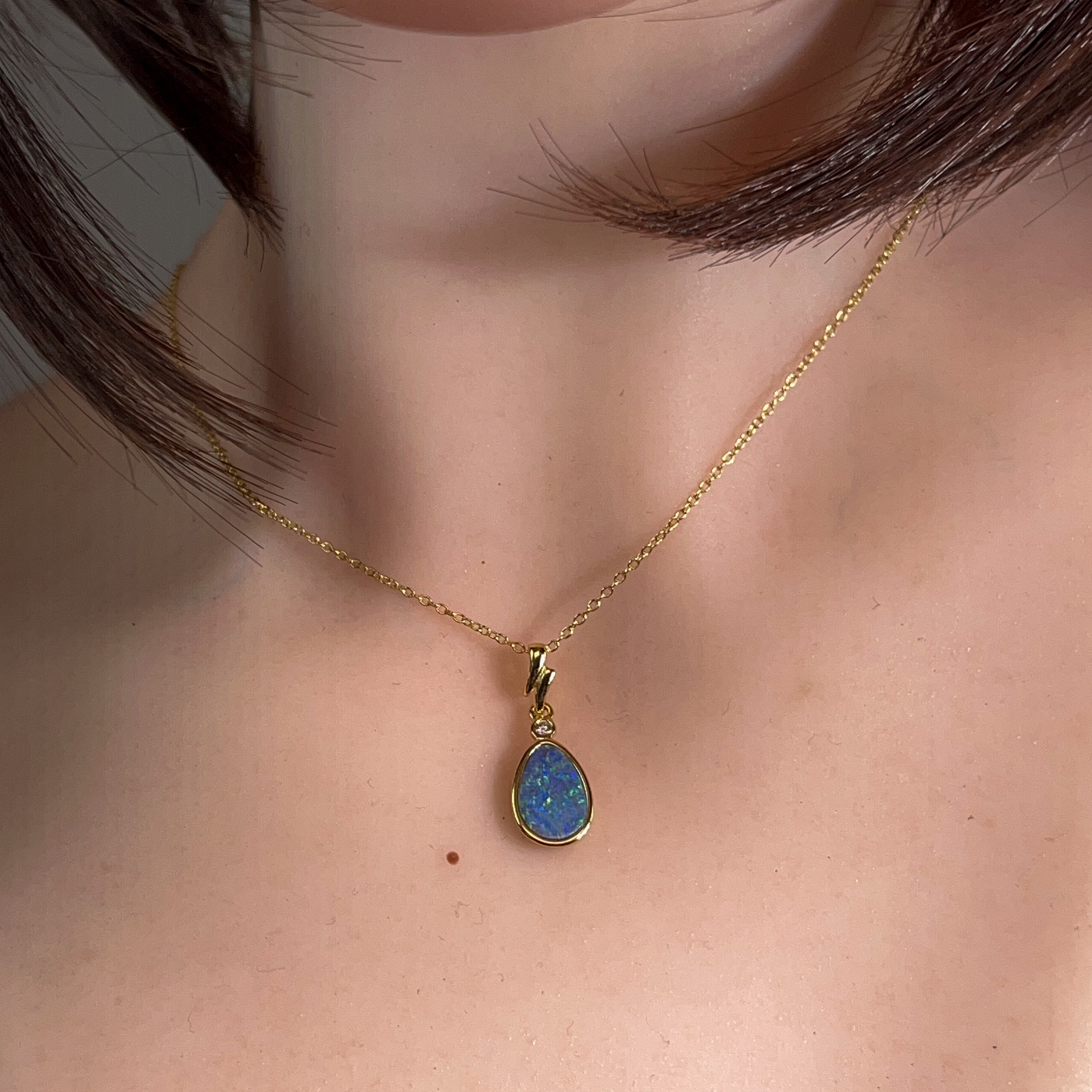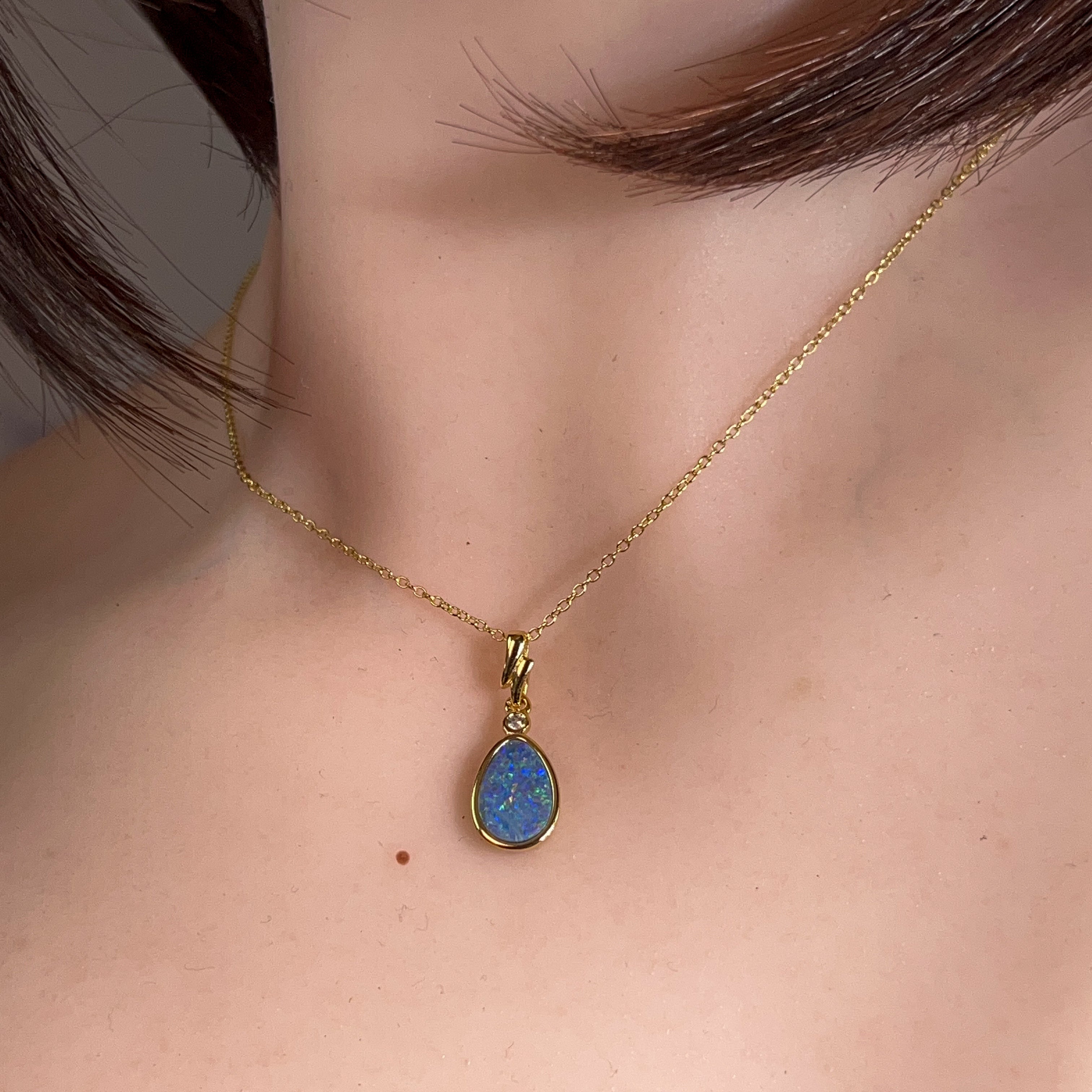 Elevate your everyday sparkle with this cheeky little opal doublet pendant that's got serious style credentials. Crafted from silver and finished with a luxe gold plate, it features a gorgeous 12x8mm opal that catches the light like nobody's business. Perfect for layering, stacking, or flying solo—this modern pendant brings that effortless elegance to any outfit. Whether you're dressing up or keeping it casual, this beauty delivers colour and personality in one compact package.