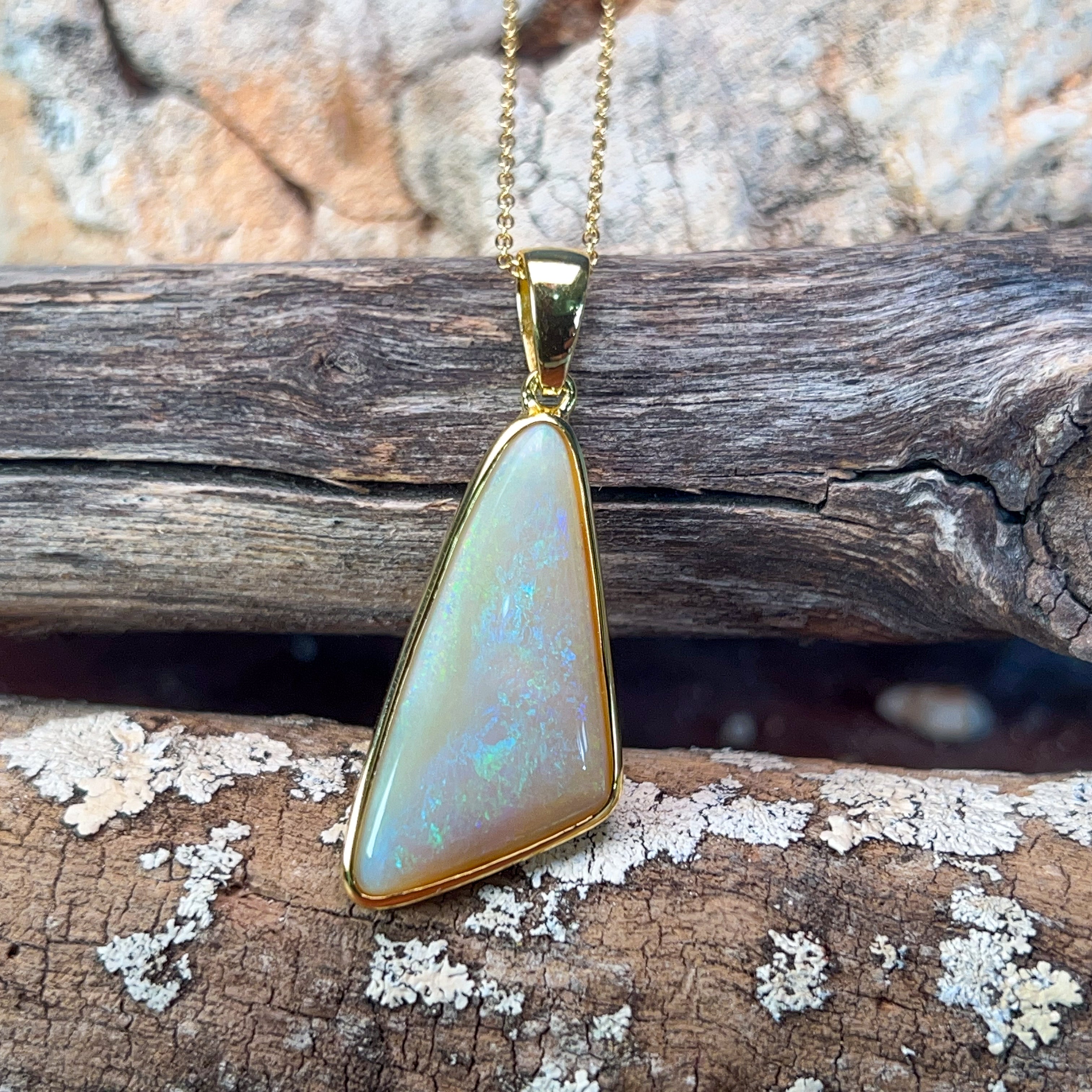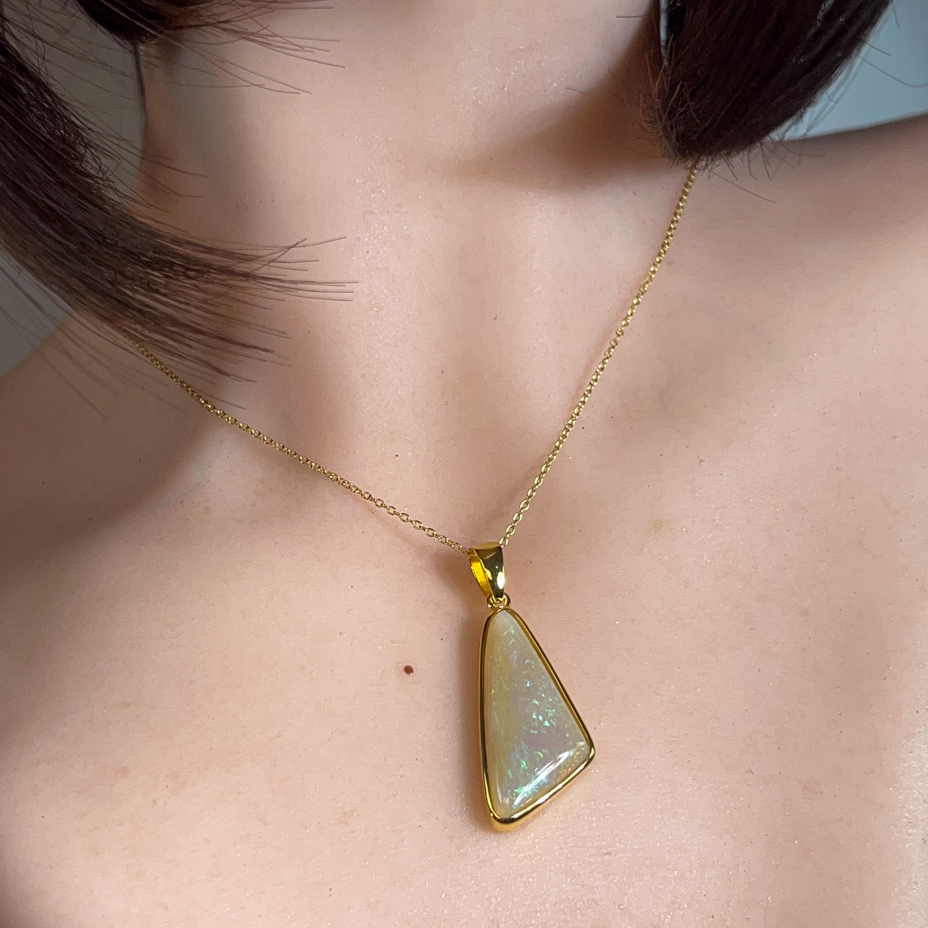Gold Plated Silver triangular 8.5ct White Opal pendant