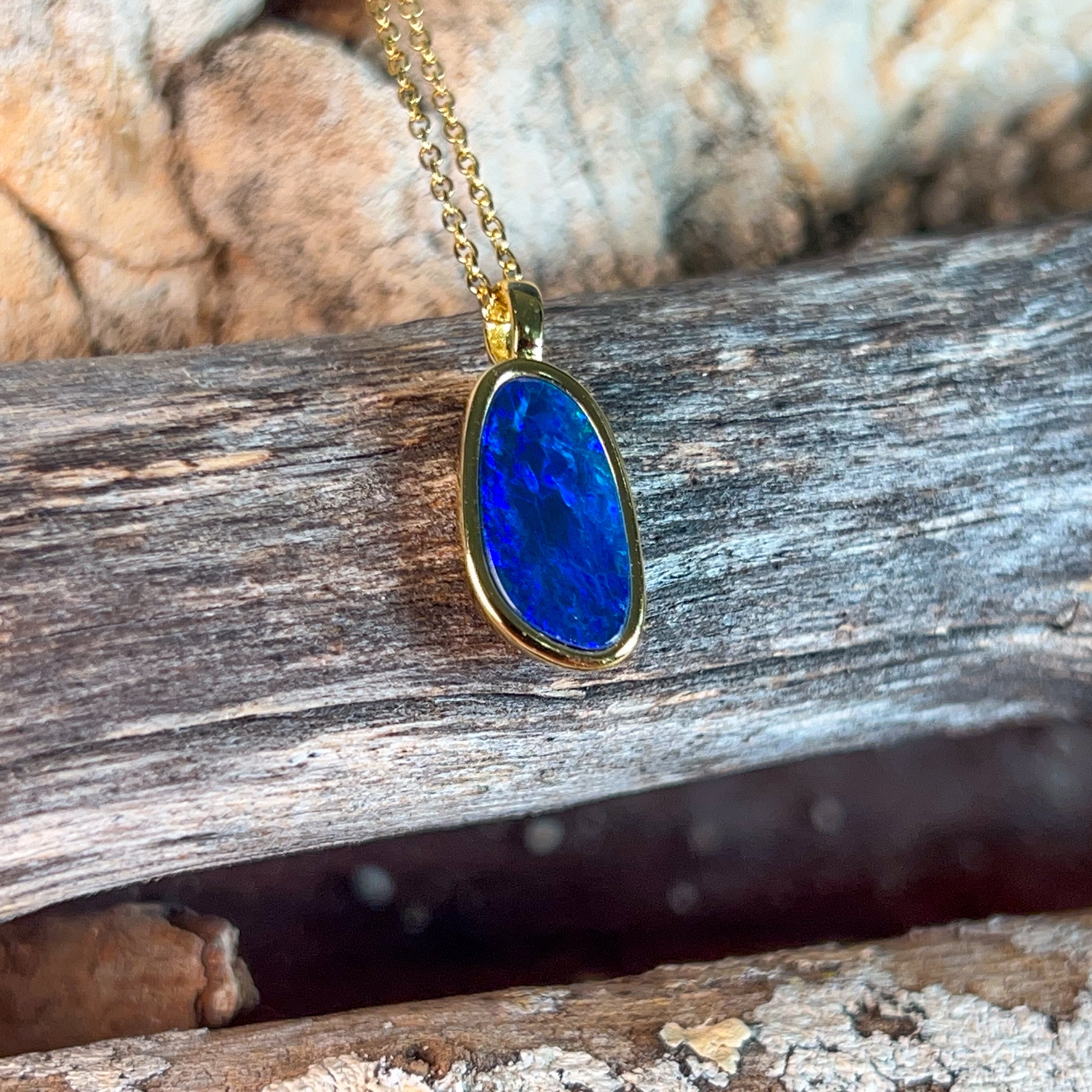 Gold plated Sterling Silver Opal doublet 15x9mm pendant