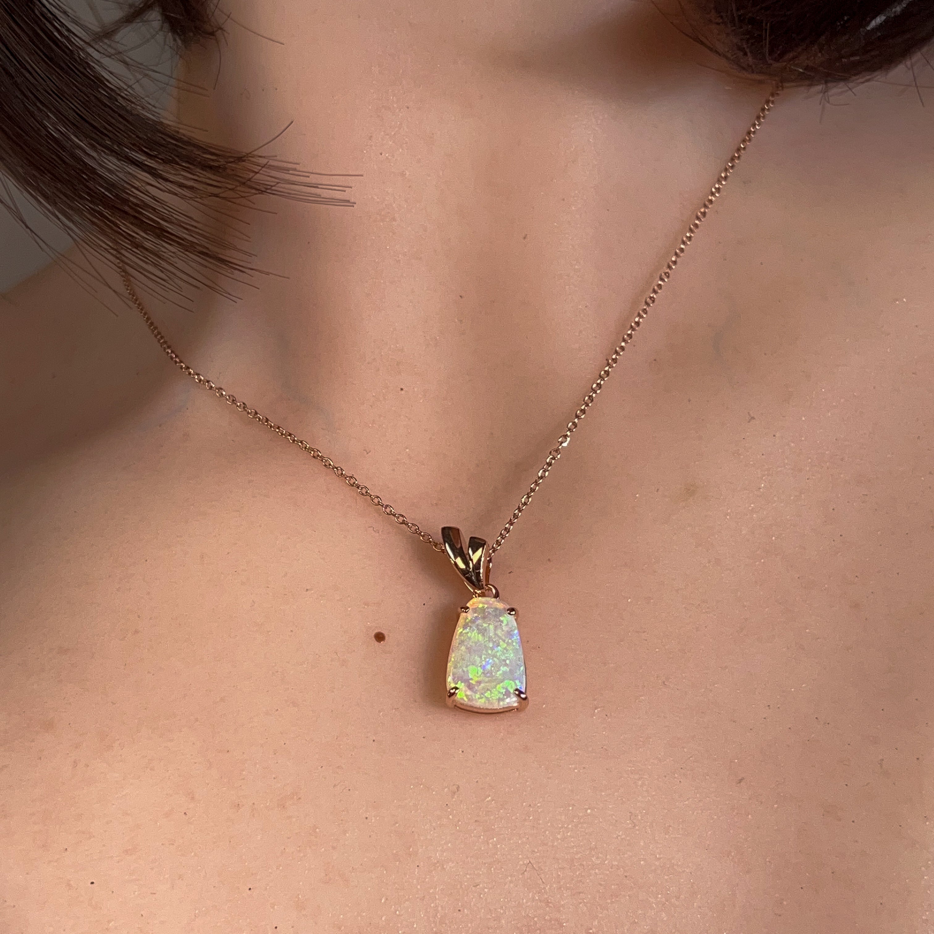 Sparkle with a touch of rose gold magic! This stunning crystal opal pendant features a brilliant 1.85ct stone set in rose gold-plated silver. Perfect for adding a pop of colour and shimmer to any outfit, this beauty catches the light beautifully and makes a statement wherever you go.