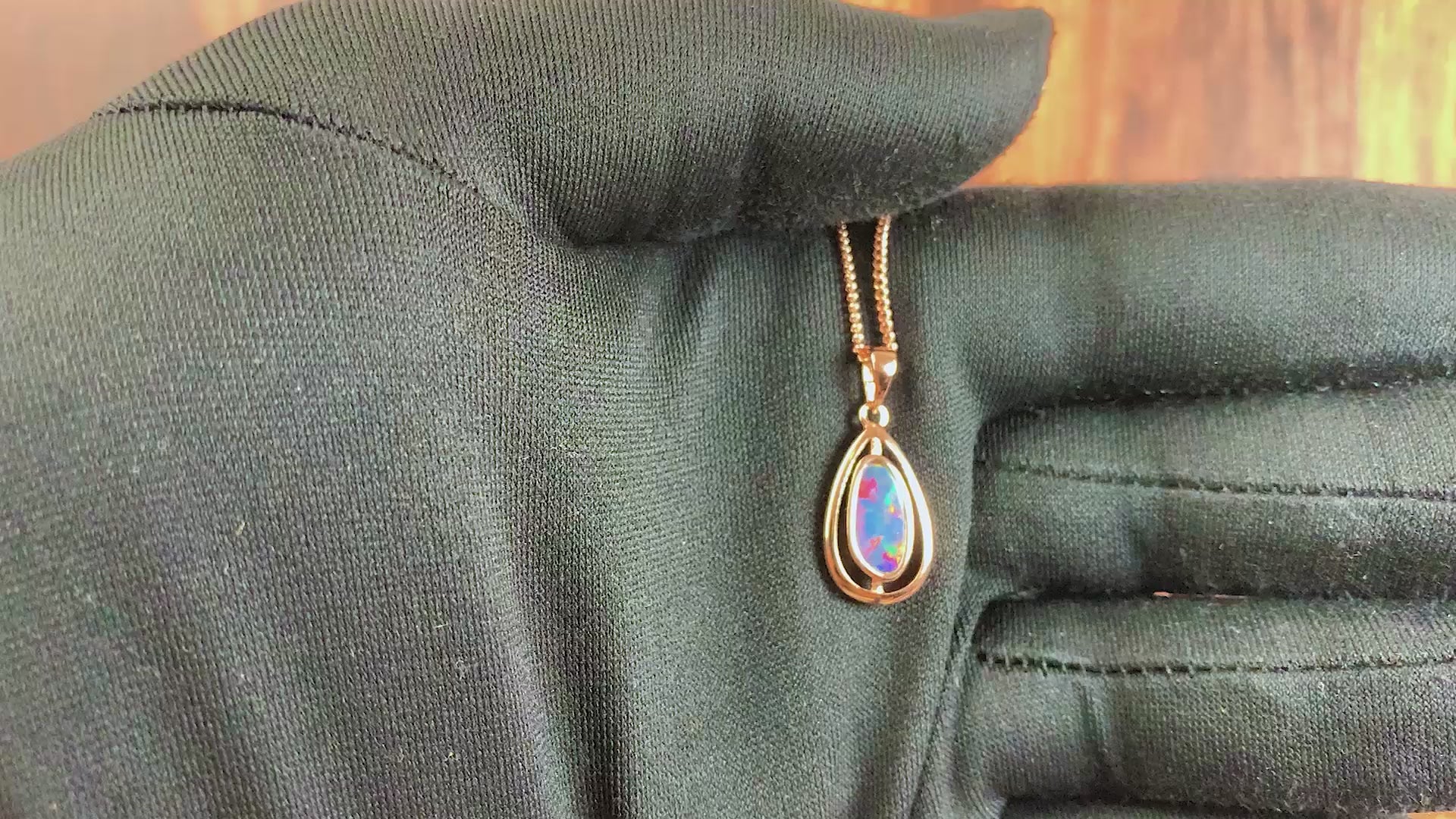 Rose Gold plated Sterling Silver freeform shape opal pendantOne Australian Opal doublet multi colour stone