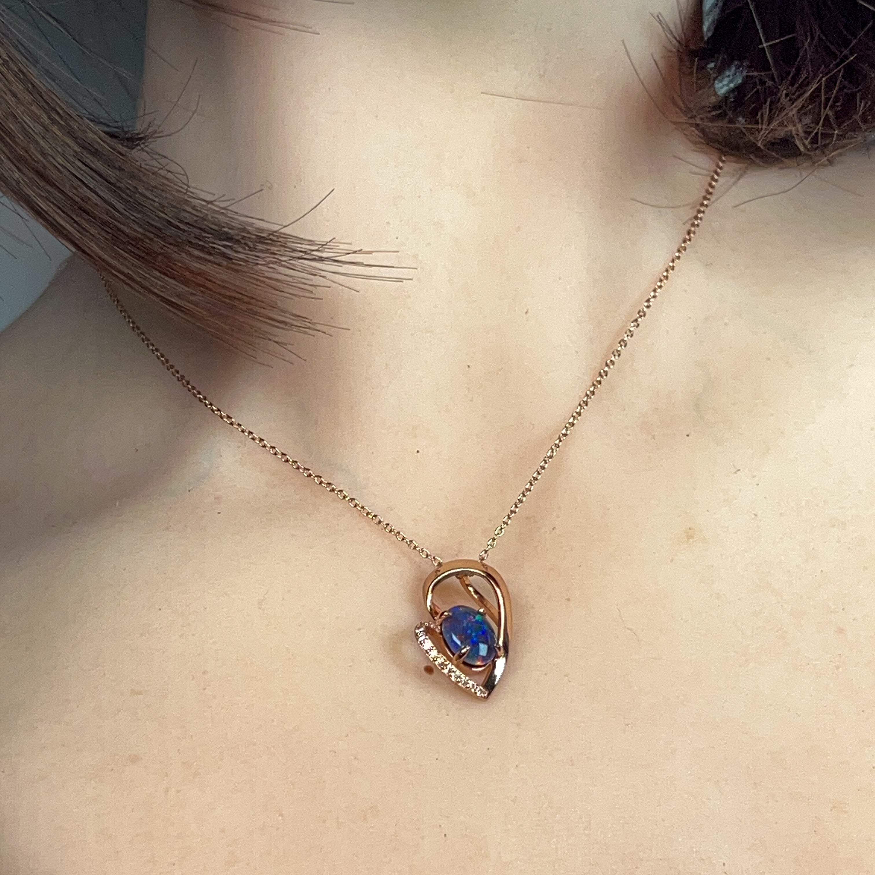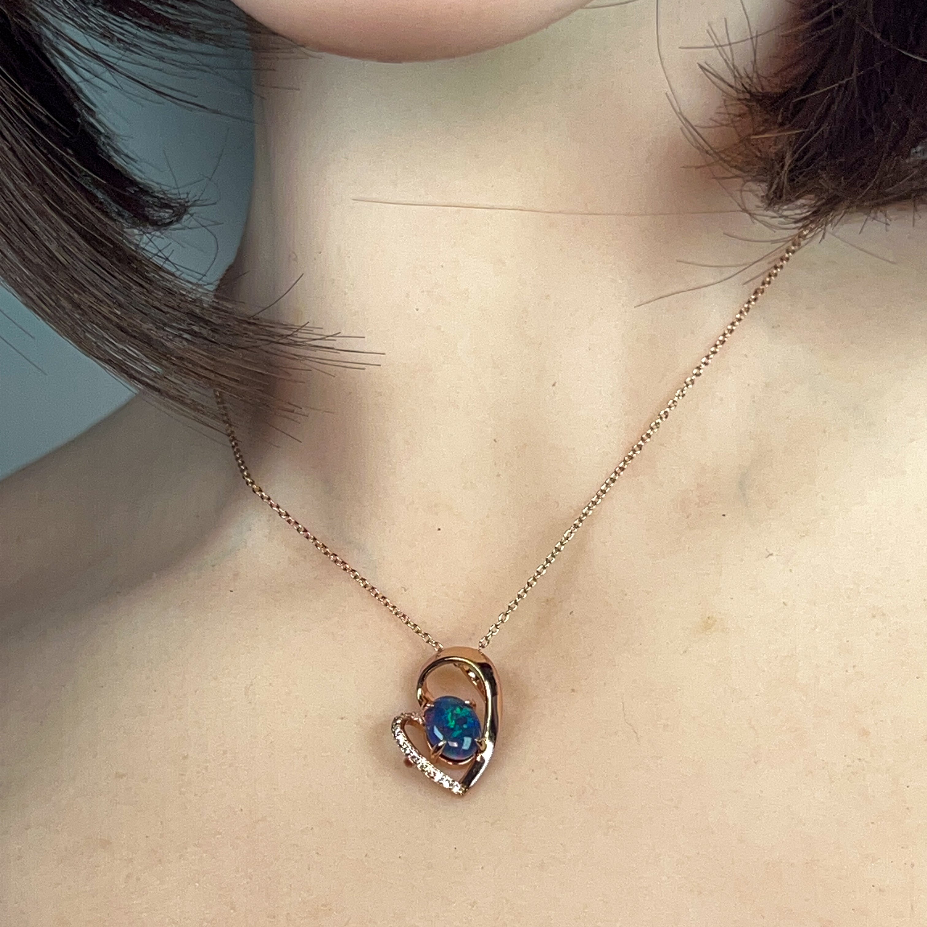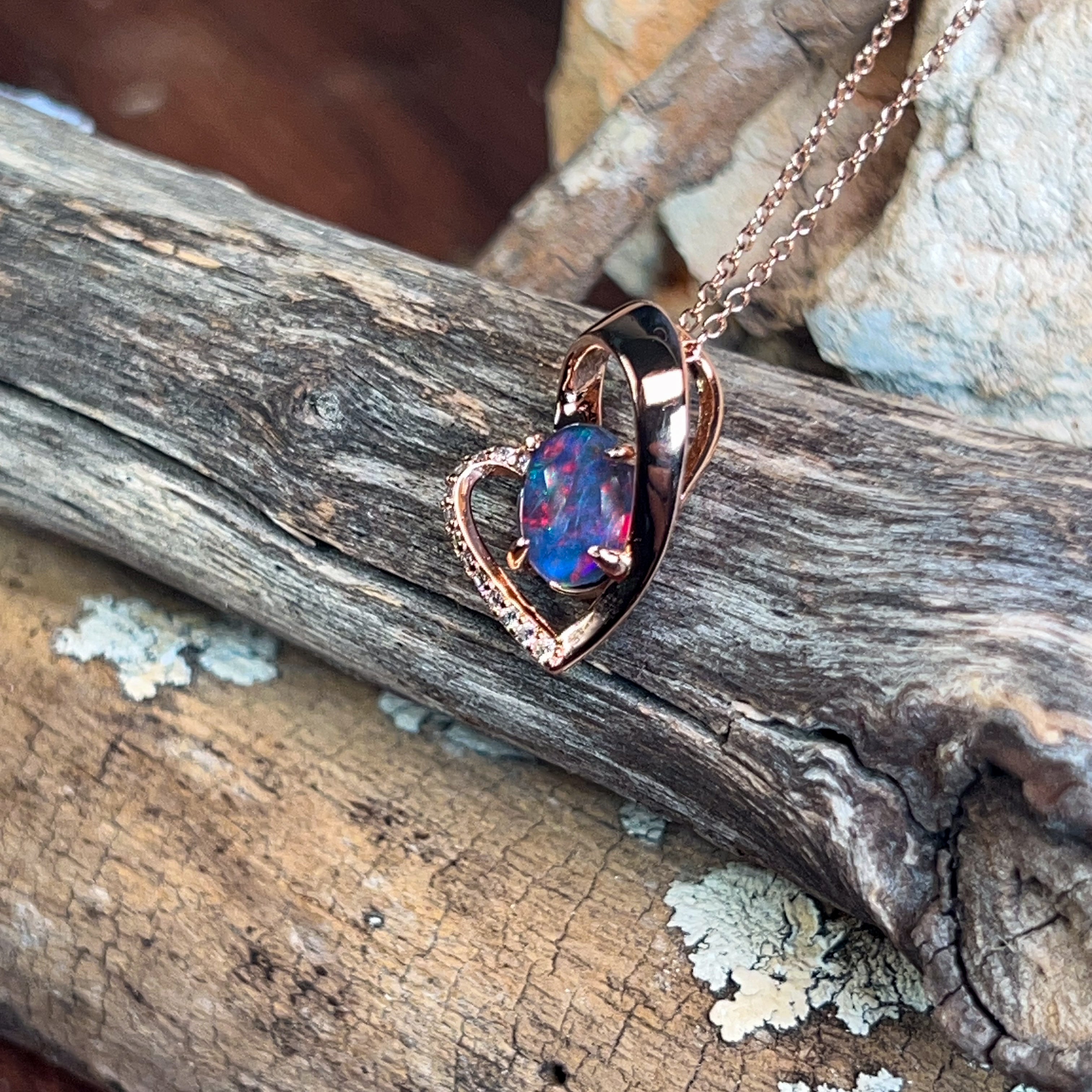 Rose Gold plated sterling Silver heart design Opal Triplet 9x7mm pendant
