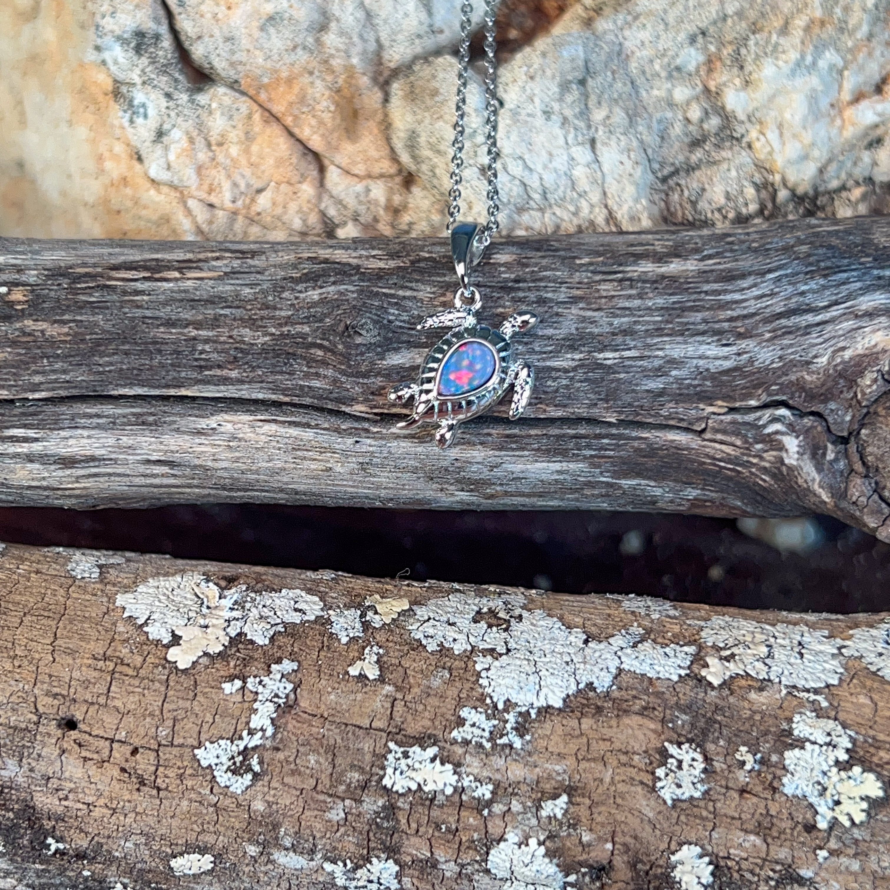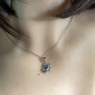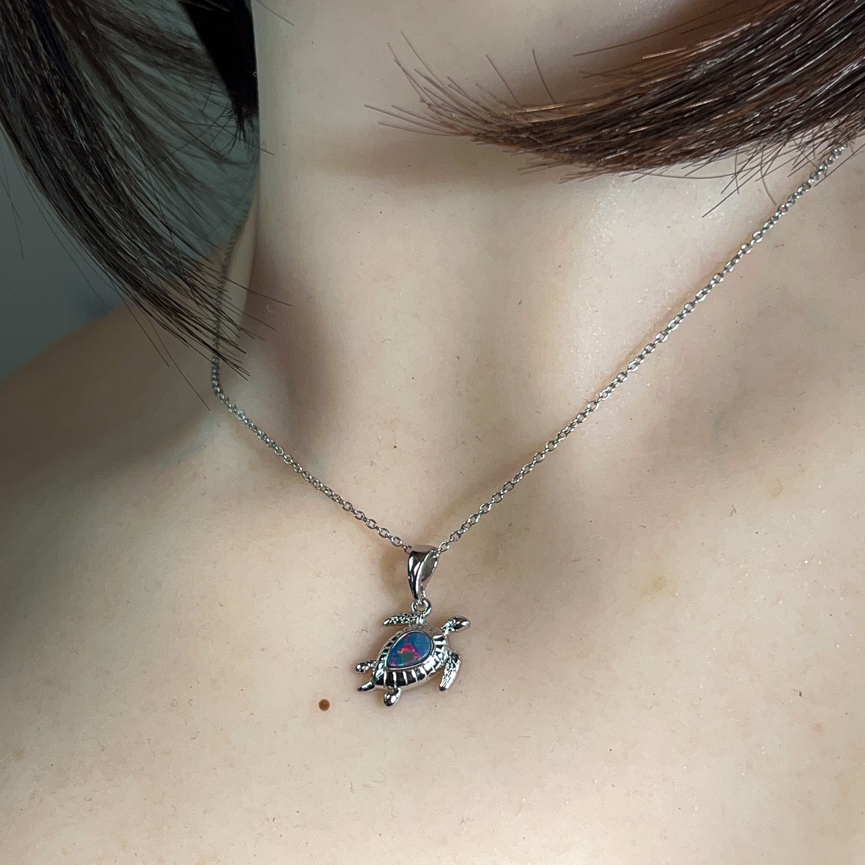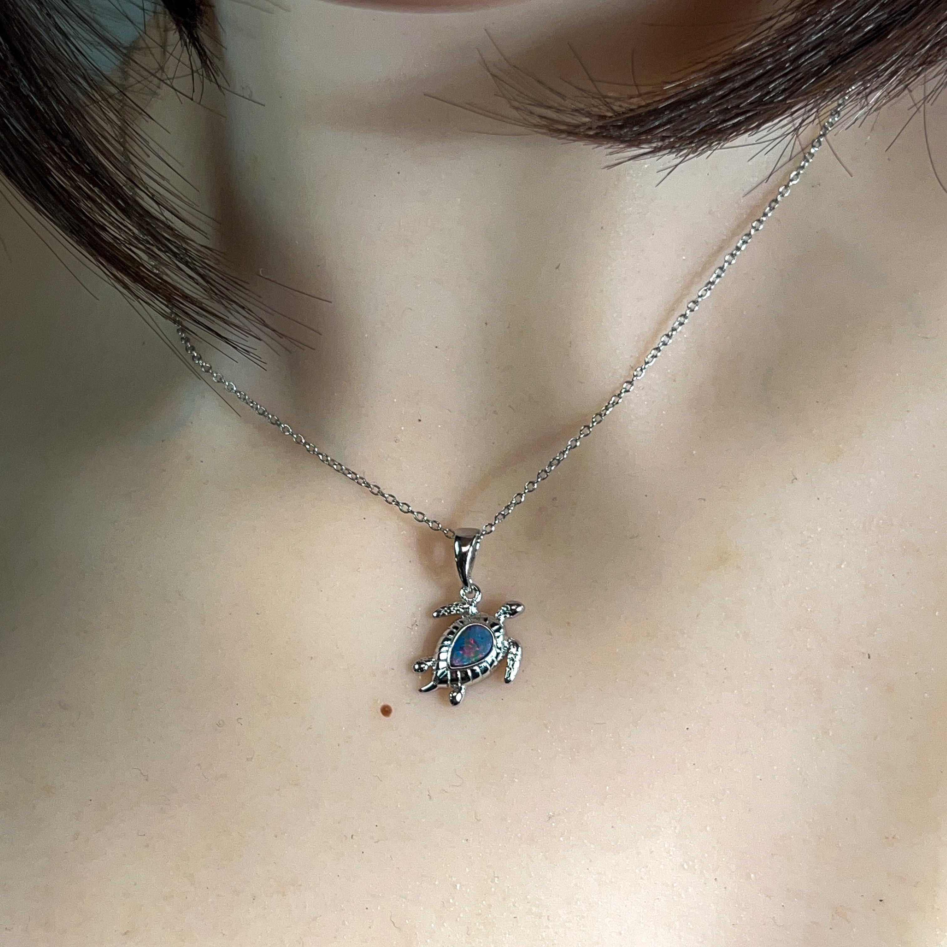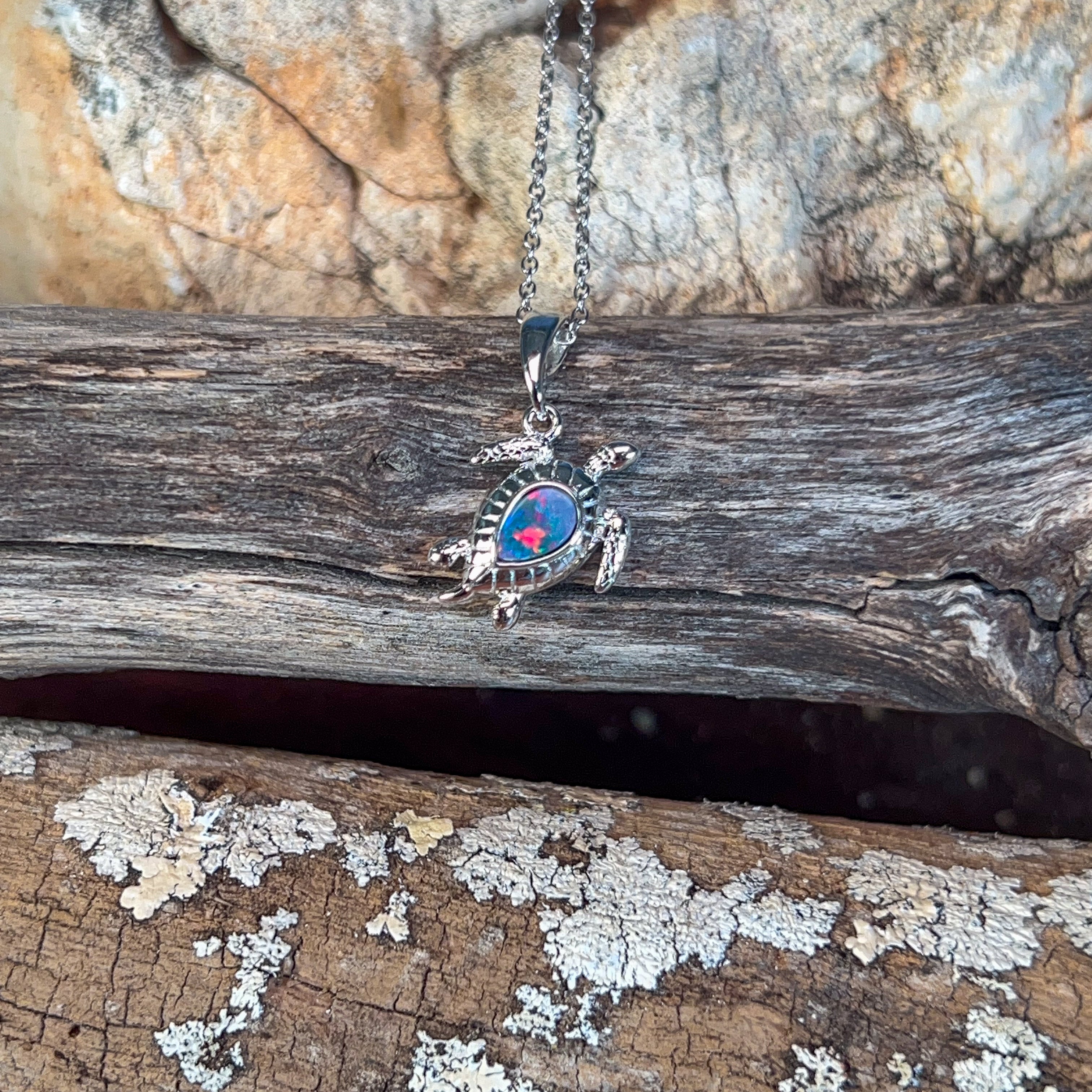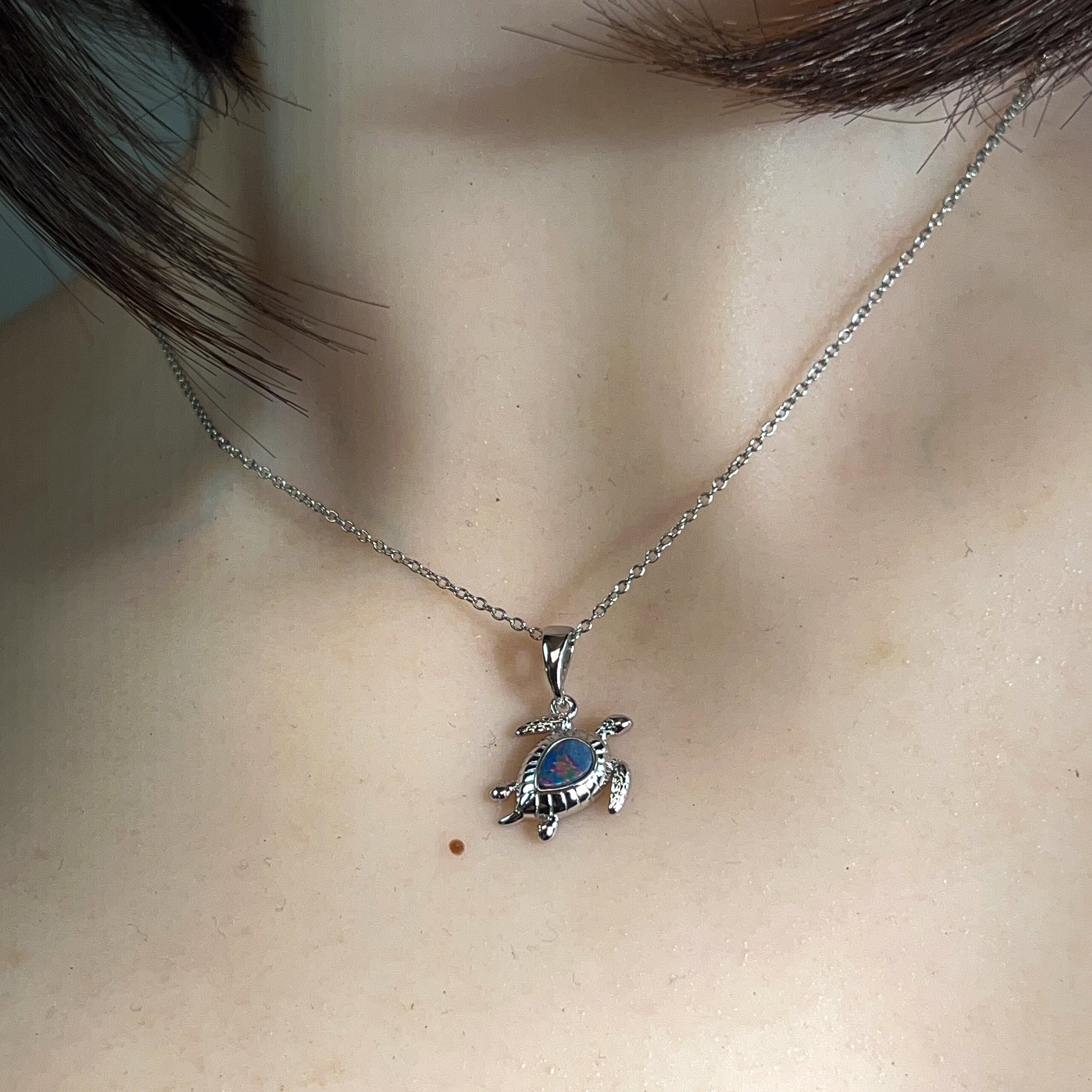 Adorable little turtle carrying a teardrop of opal magic! This delicate sterling silver pendant features a shimmering 6x4mm opal doublet that catches the light beautifully. Perfect for opal lovers who prefer understated elegance, the dainty design sits gracefully on any neckline. Whether you're a sea creature enthusiast or simply drawn to subtle sparkle, this charming turtle companion is ready to become your new favourite piece.