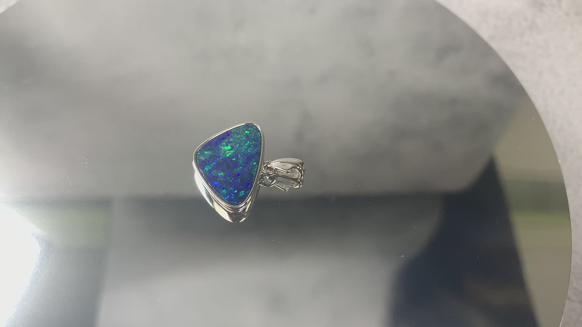 Sterling Silver Blue Green triangle opal doublet 17x13mm pendant