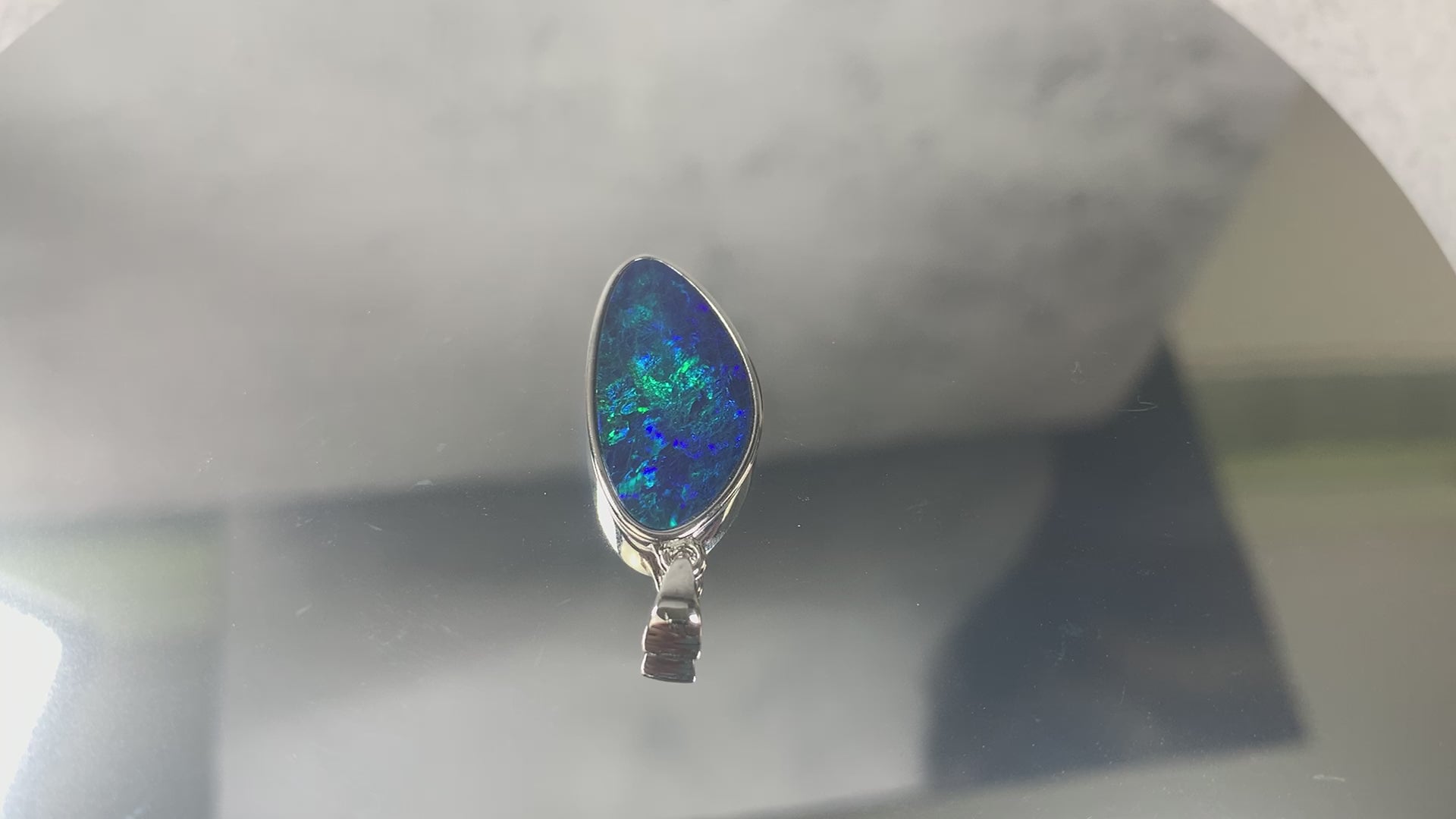 Sterling Silver Blue Opal doublet 23x11mm pendant