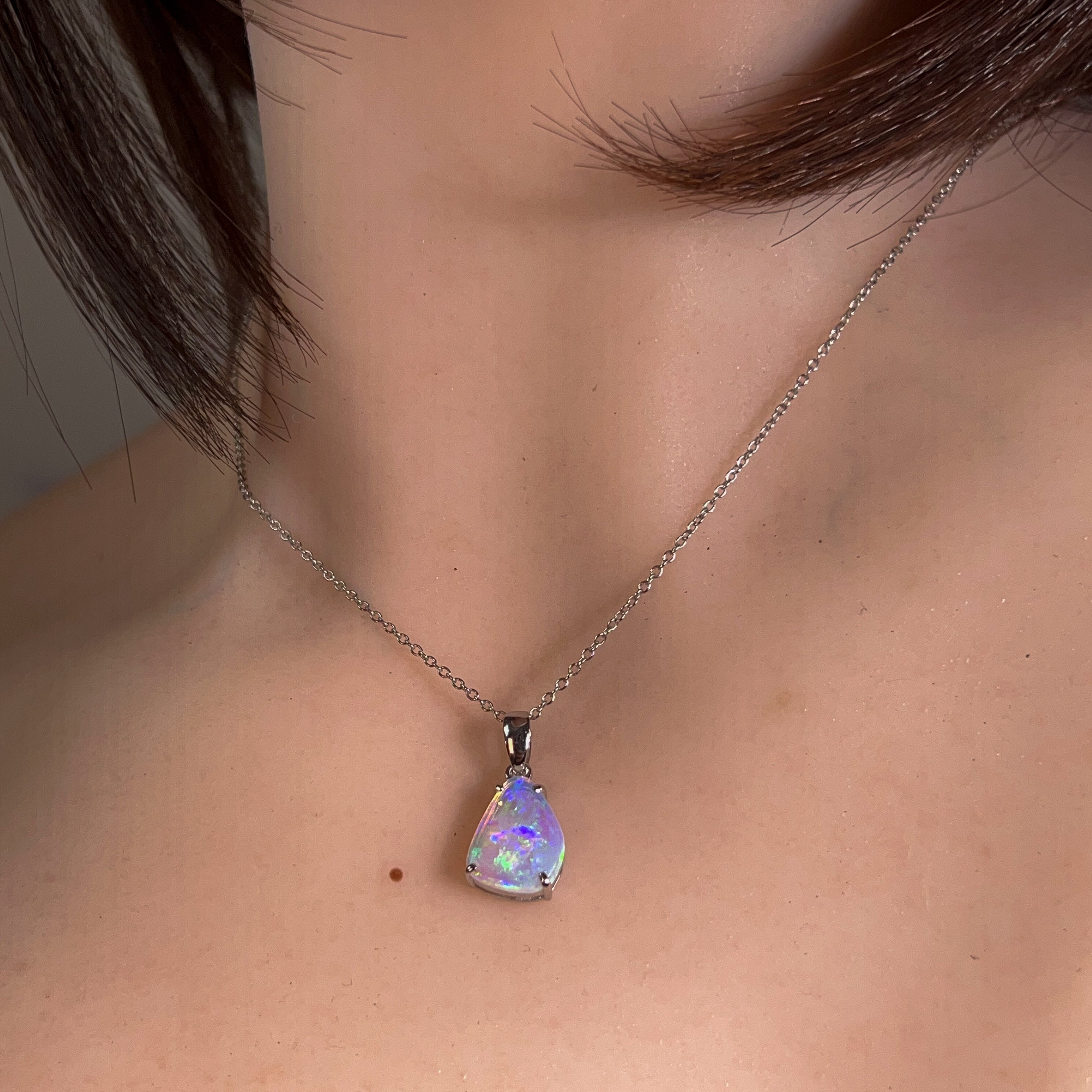 Discover the mesmerizing beauty of this sterling silver pendant, showcasing a stunning 1.4-carat crystal opal in its natural freeform shape. Each piece captures the opal's distinctive play-of-colour, displaying vibrant flashes of green, blue, and gold that shift with every movement. Crafted from premium sterling silver, this pendant offers timeless elegance with authentic gemstone character. Perfect for those seeking a distinctive statement piece that celebrates the raw, organic appeal of genuine Australian opal. An investment in natural beauty that tells its own unique story.