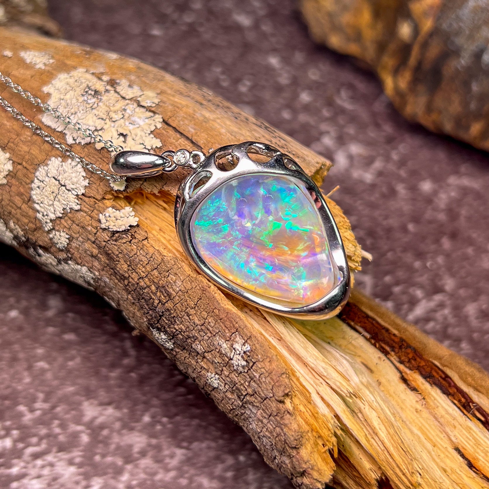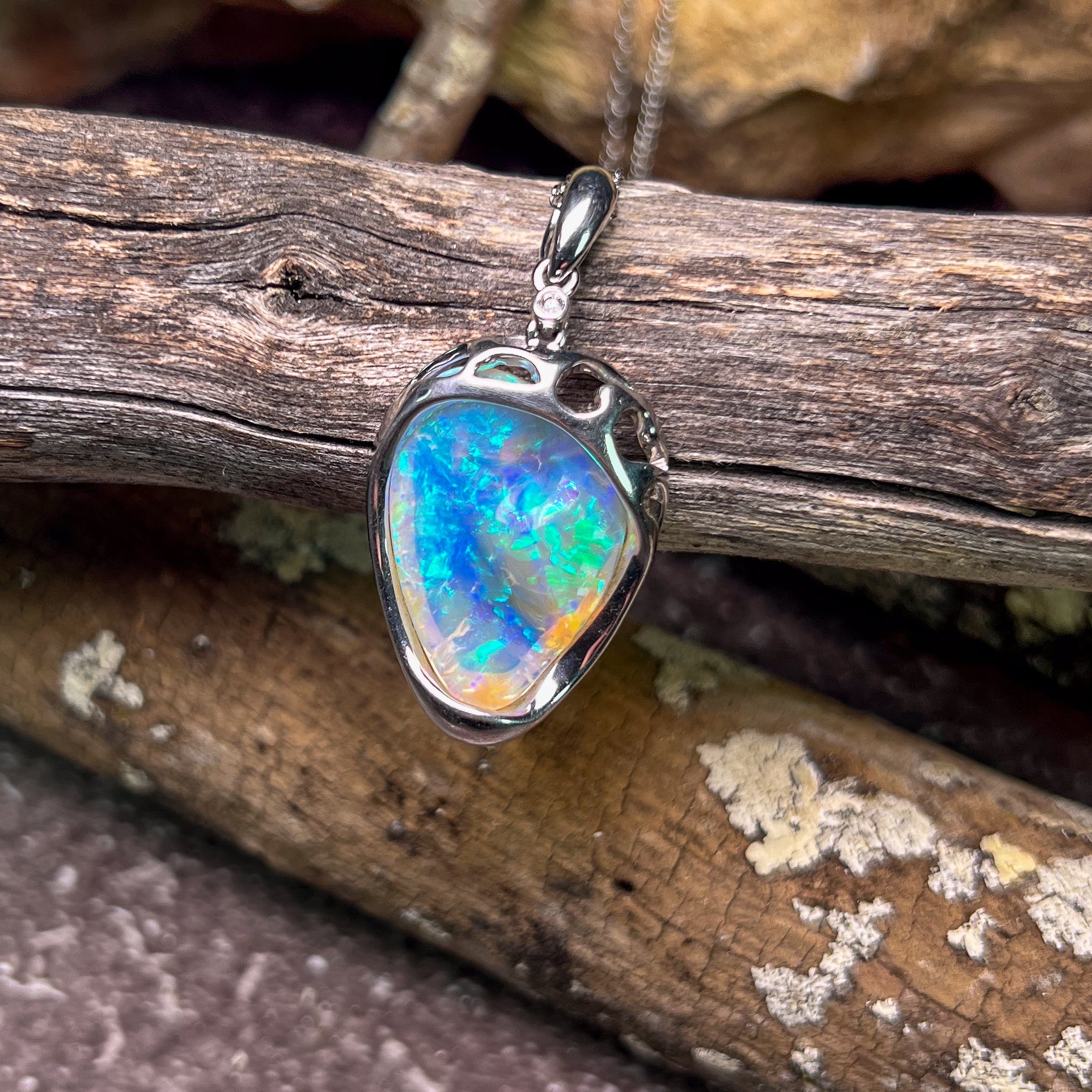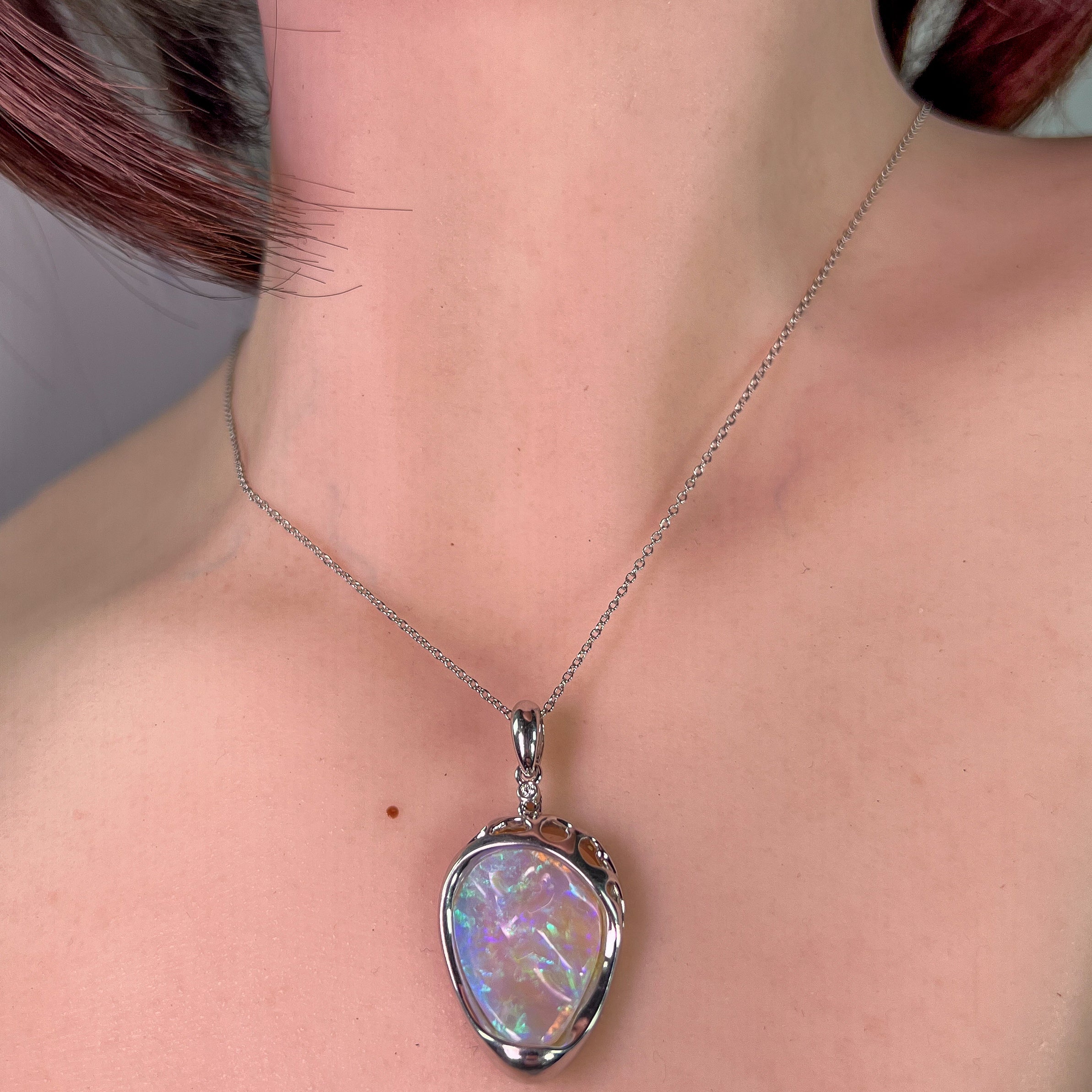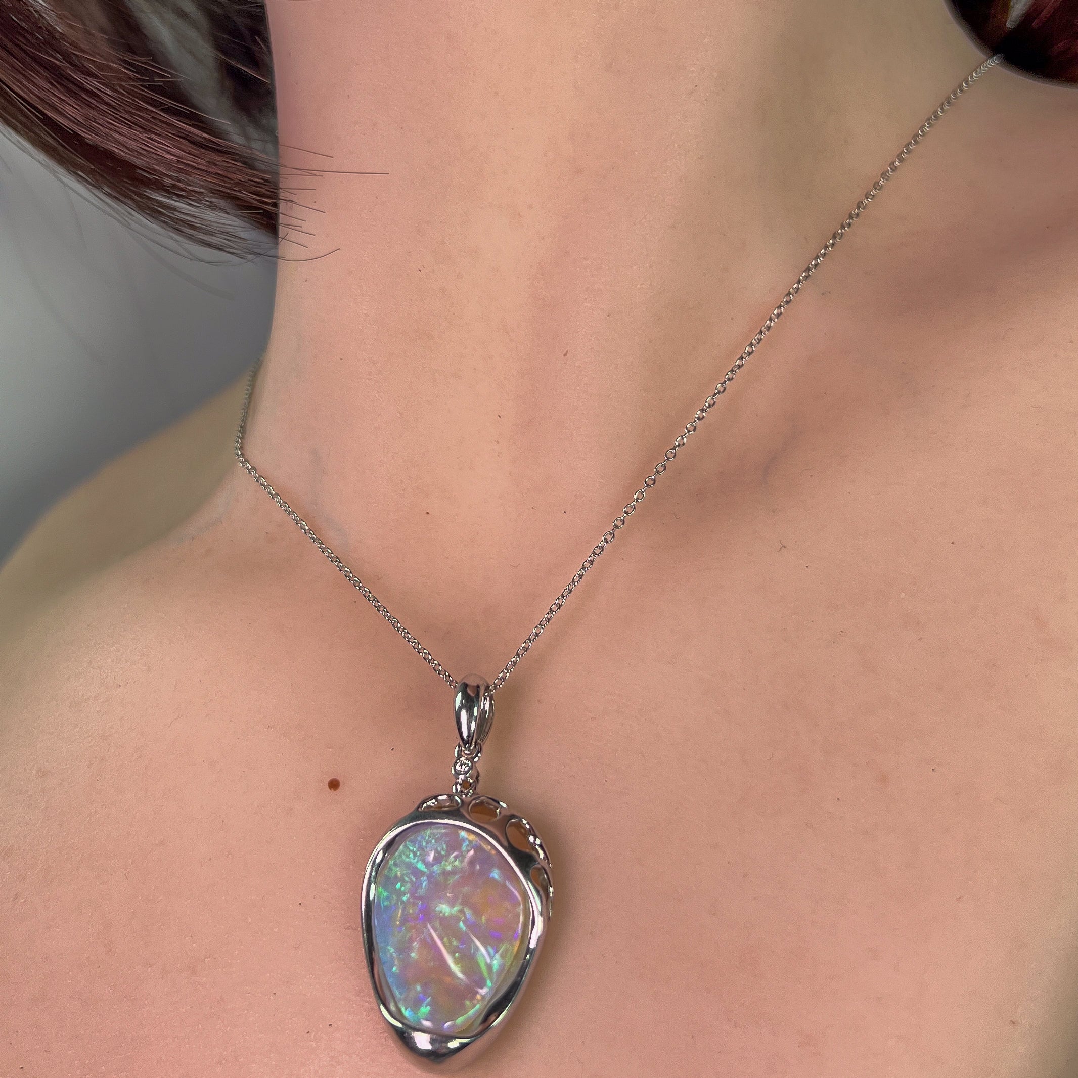 This stunning sterling silver pendant features a natural, high quality crystal opal that exudes elegance and sophistication. Perfect for any occasion, this opal jewelry for her will add a touch of luxury to any outfit. Elevate your style with the mesmerizing beauty of this opal pendant.