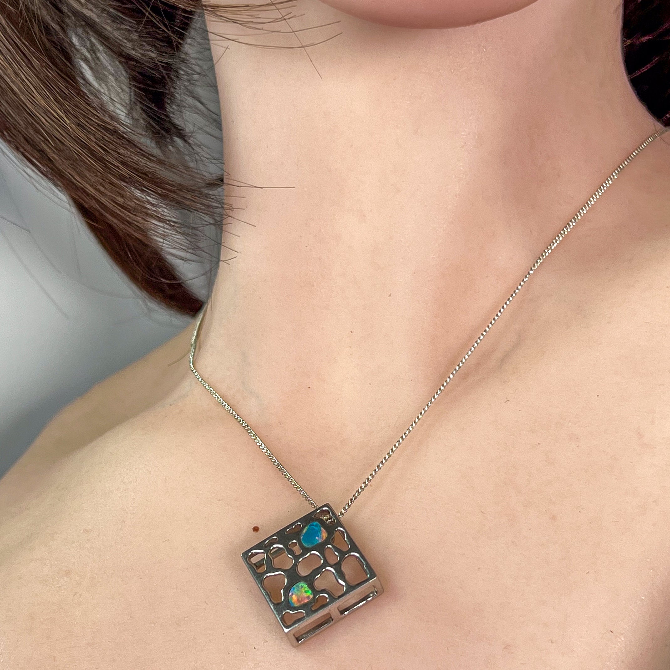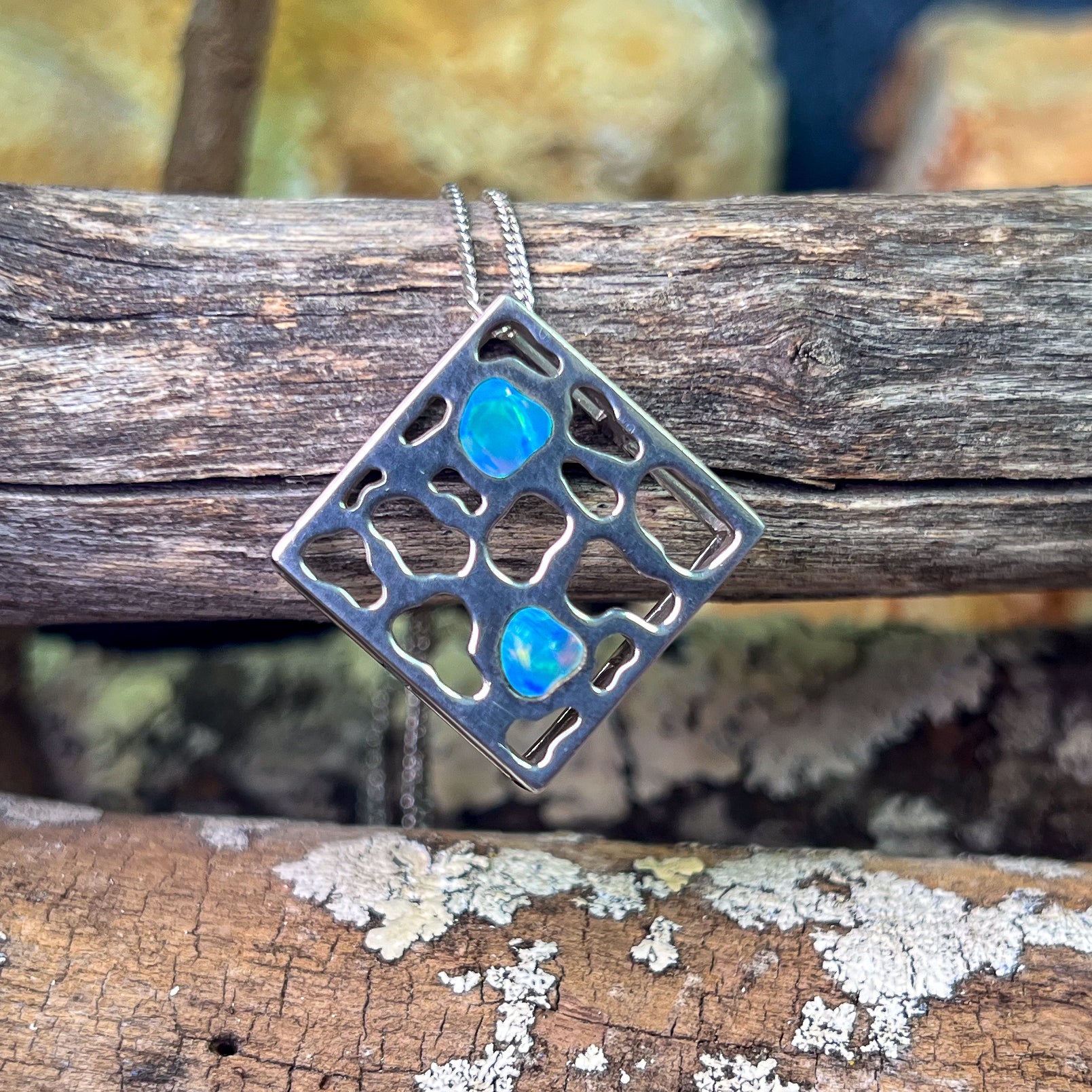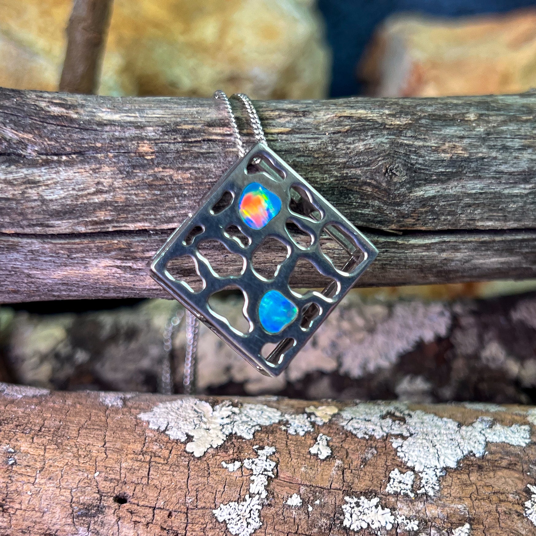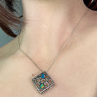 Sterling Silver Diamond shape Opal pendant