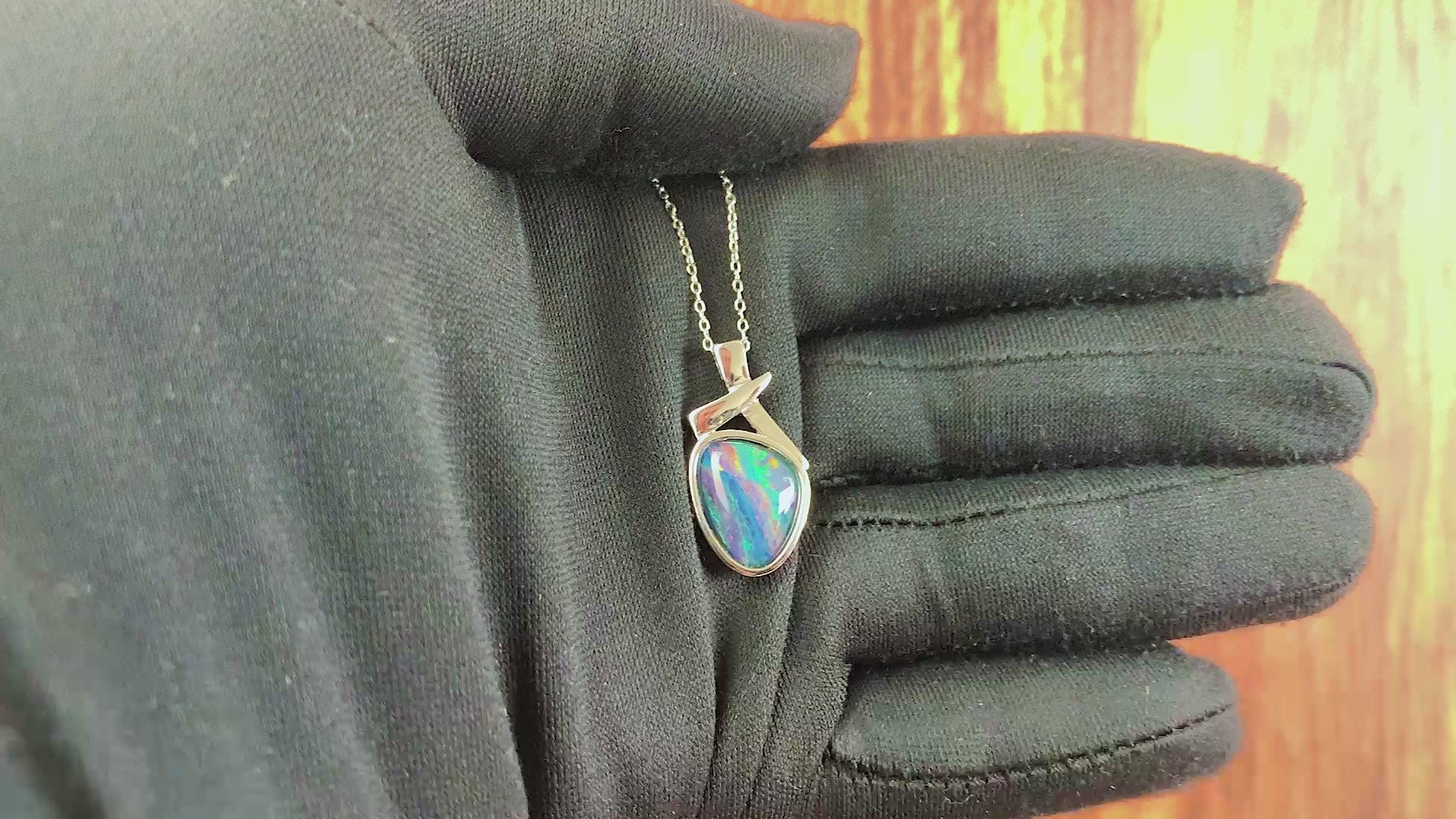 Embrace the beauty of nature with this stunning Sterling Silver Opal triplet pendant. Featuring a glittering multi-colour freeform, this captivating 25x13mm pendant is the perfect addition to any wardrobe. Let your style shine!