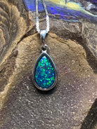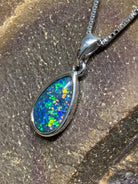 One Sterling Silver teardrop shape Australian Opal 13x8mm Triplet pendant bezel set.
