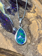 Suit up for adventure with this eye-catching Sterling Silver Opal Triplet Pendant! Its striking tear drop shape offers a daring style sensation that's sure to turn heads. Add a touch of glamour and elegance to your look with this unique and stylish opal necklace. Dare to be different!