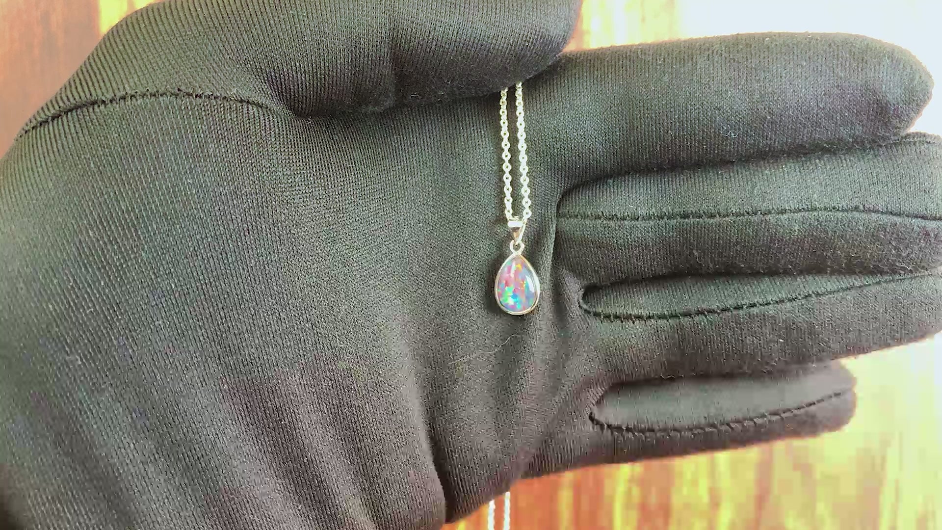 Sterling Silver Pearshape 10x7mm Opal triplet pendant