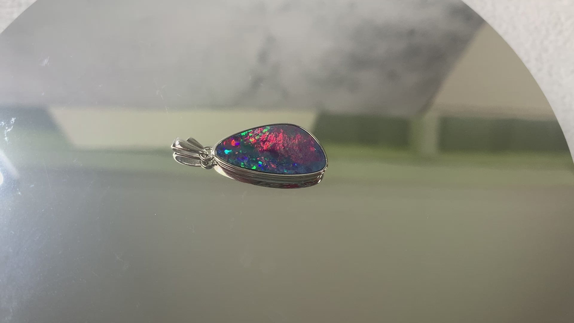 One Sterling Silver freeform bezel set pendantOne Australian Opal doublet Fire Red Blue Green