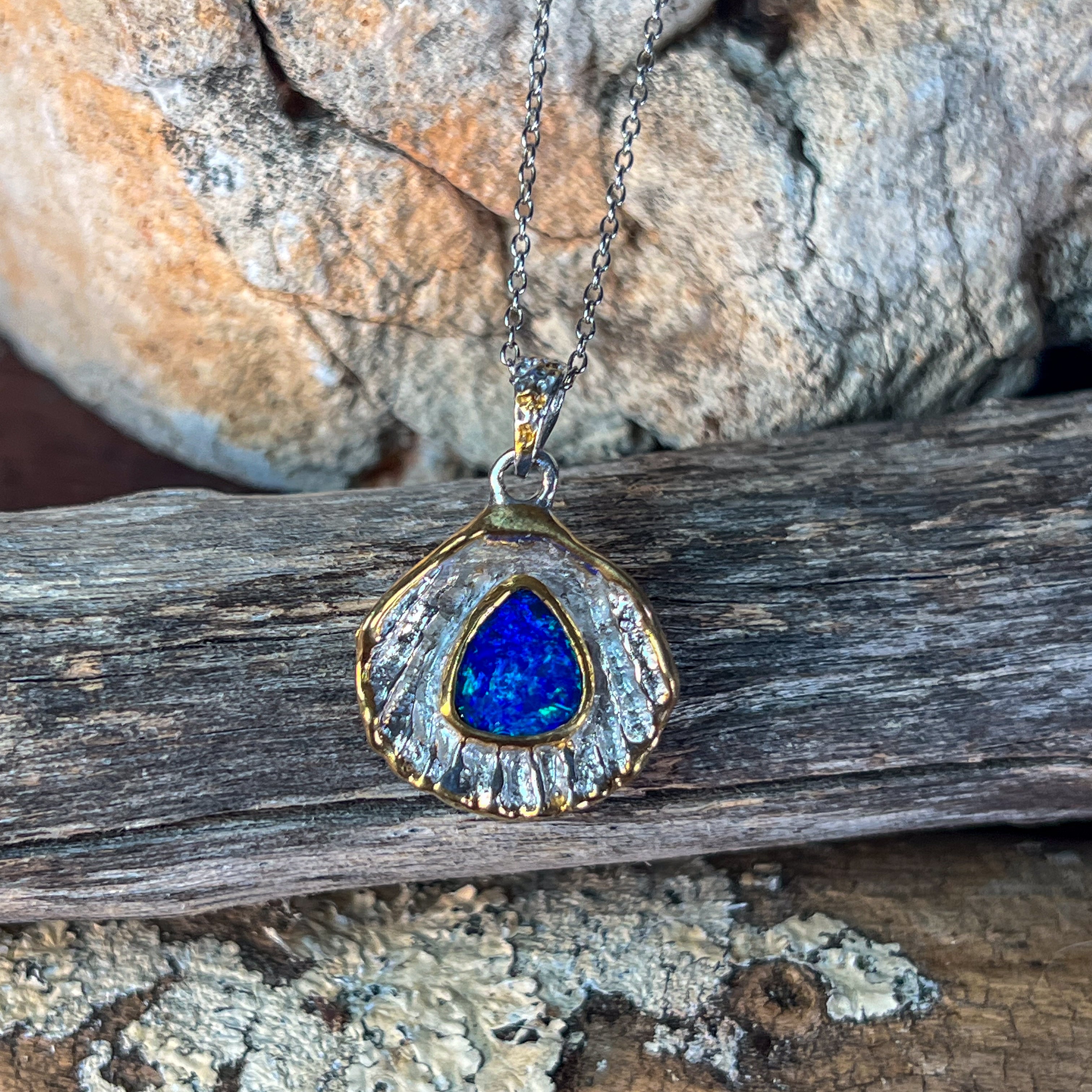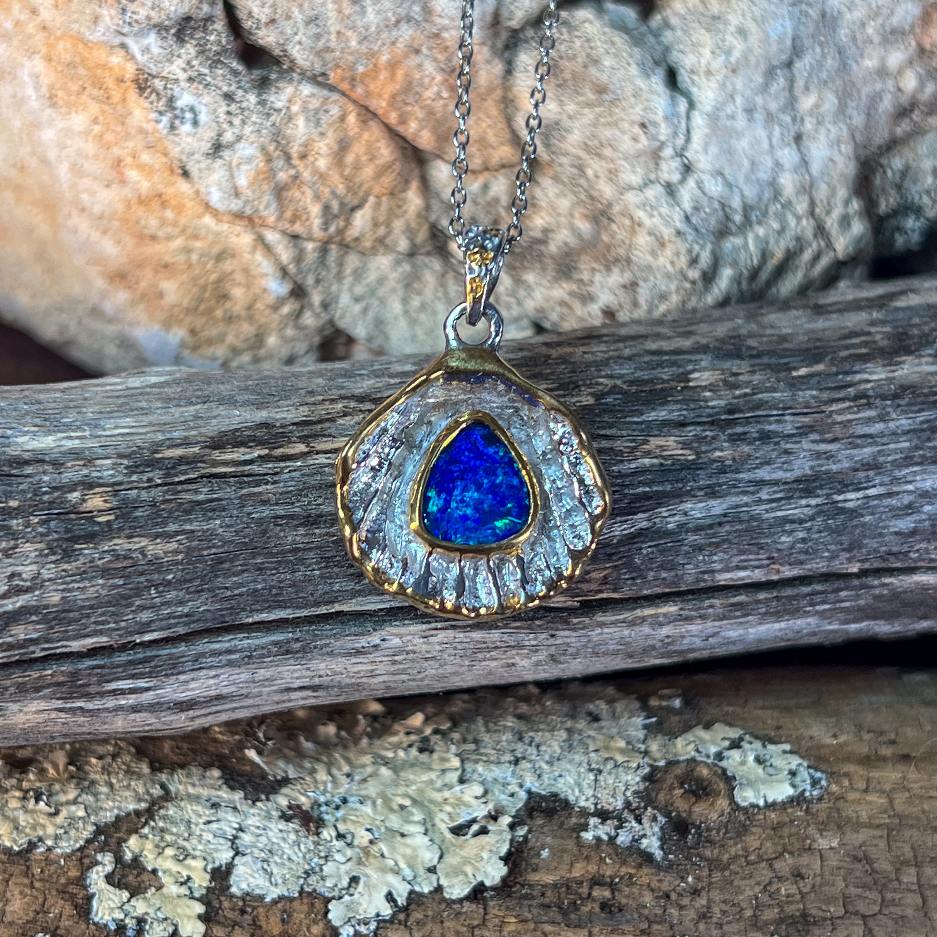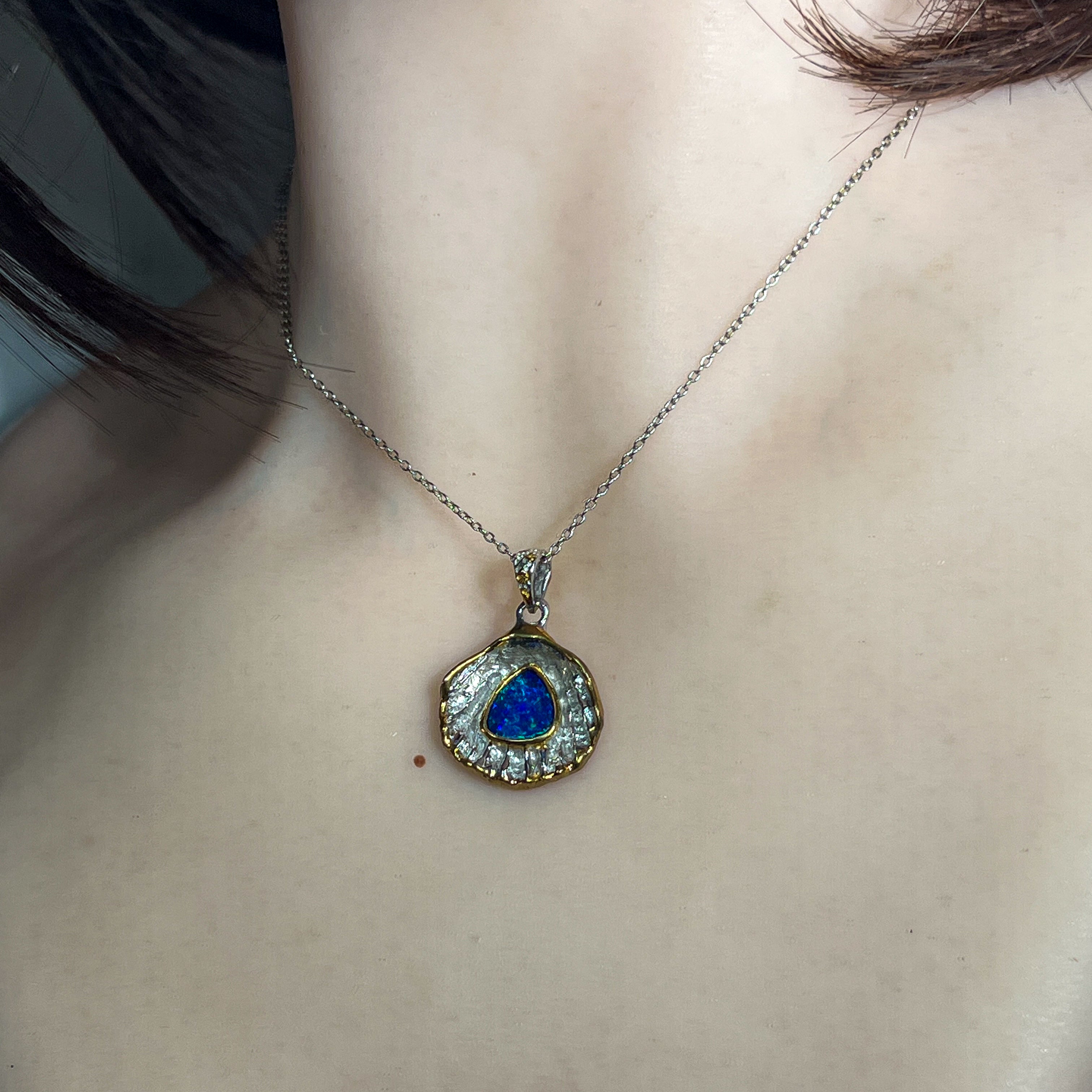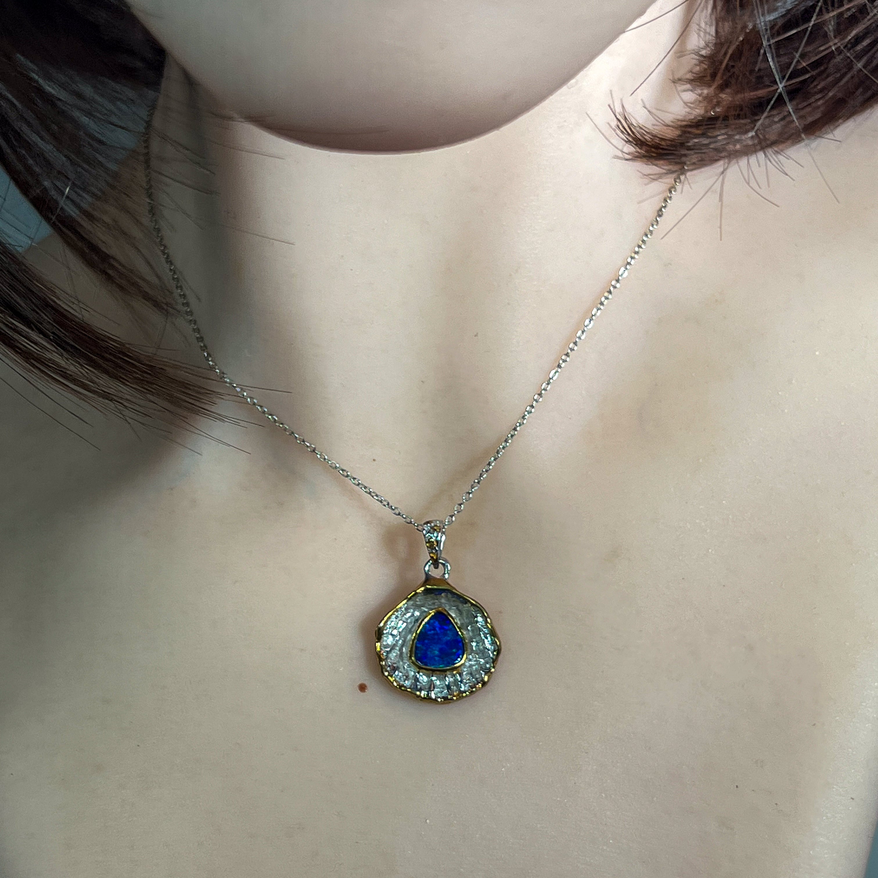 Sterling Silver two tone gold plated Shell design Opal doublet pendant