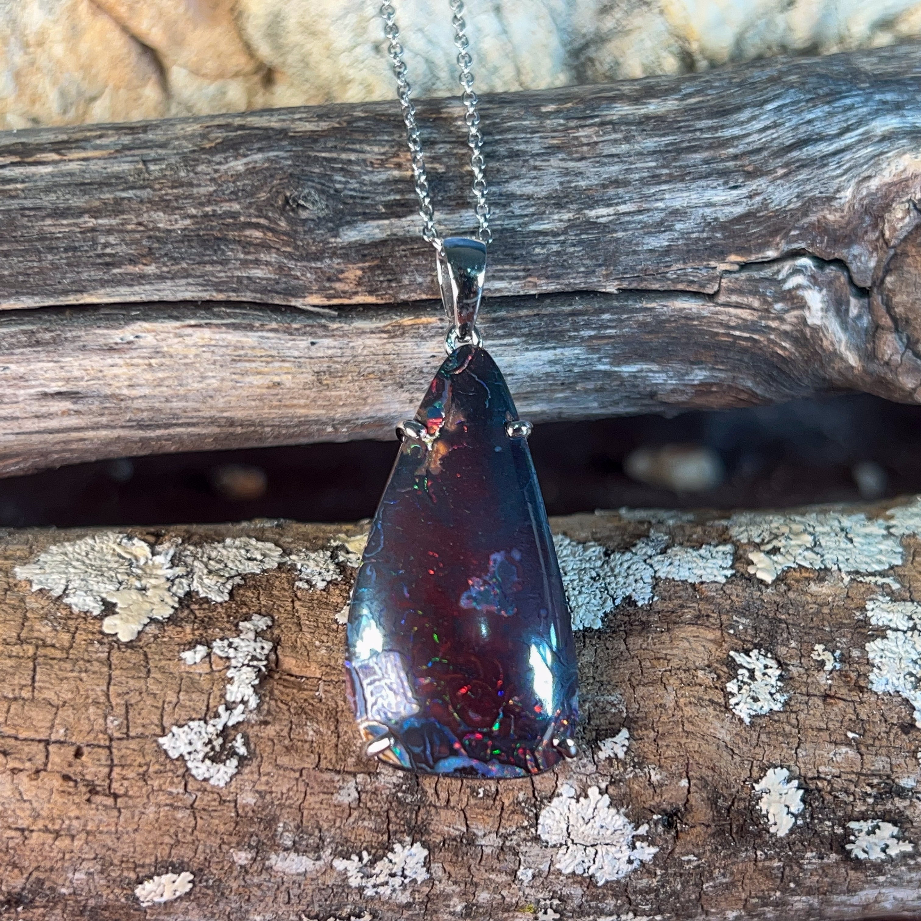 One of the best black opal necklaces to buy is Masterpiece Jewellery’s Sterling Silver Black Opal Pendant. It is unique and genuine. Compared to other black opal necklaces, this one is available at a reasonable price.