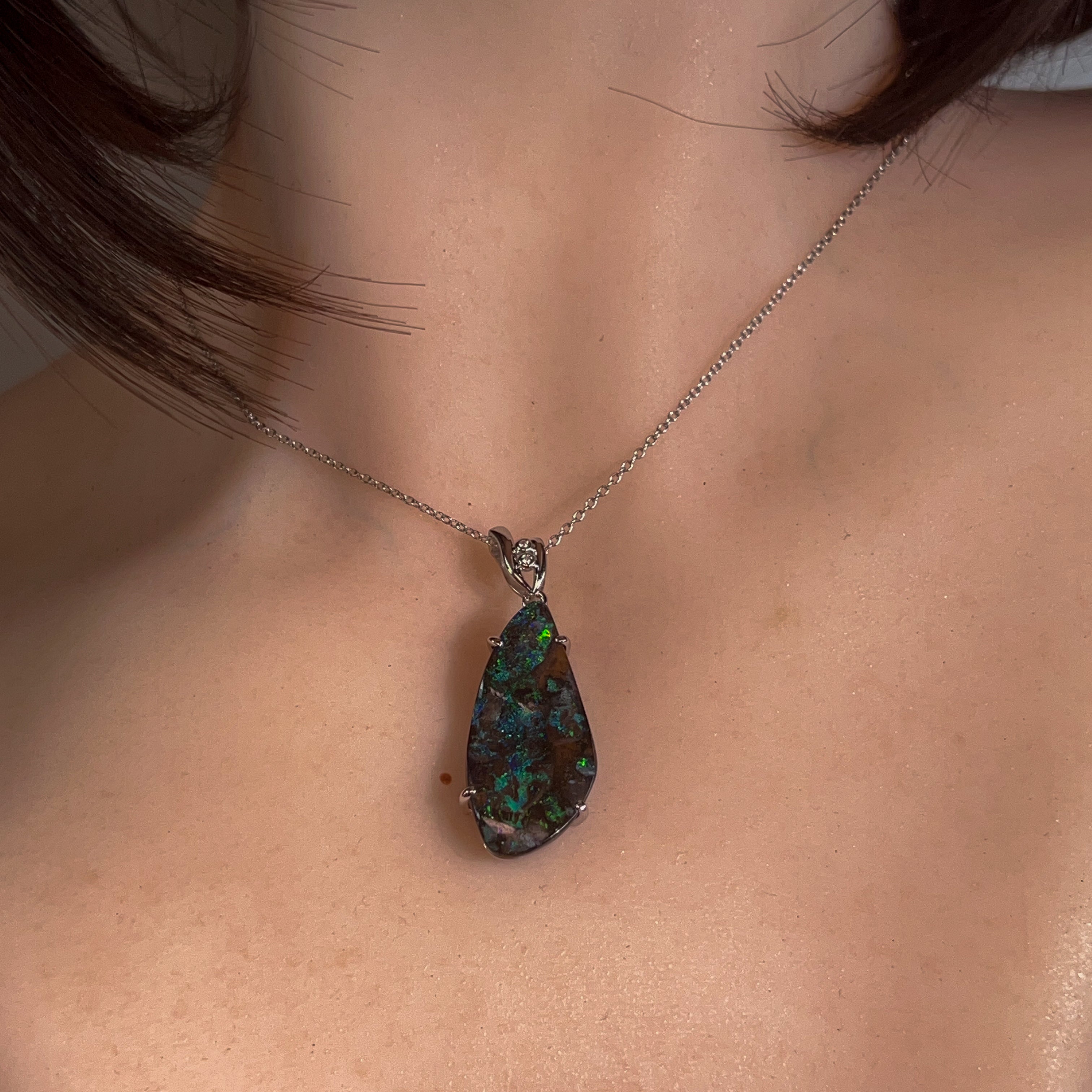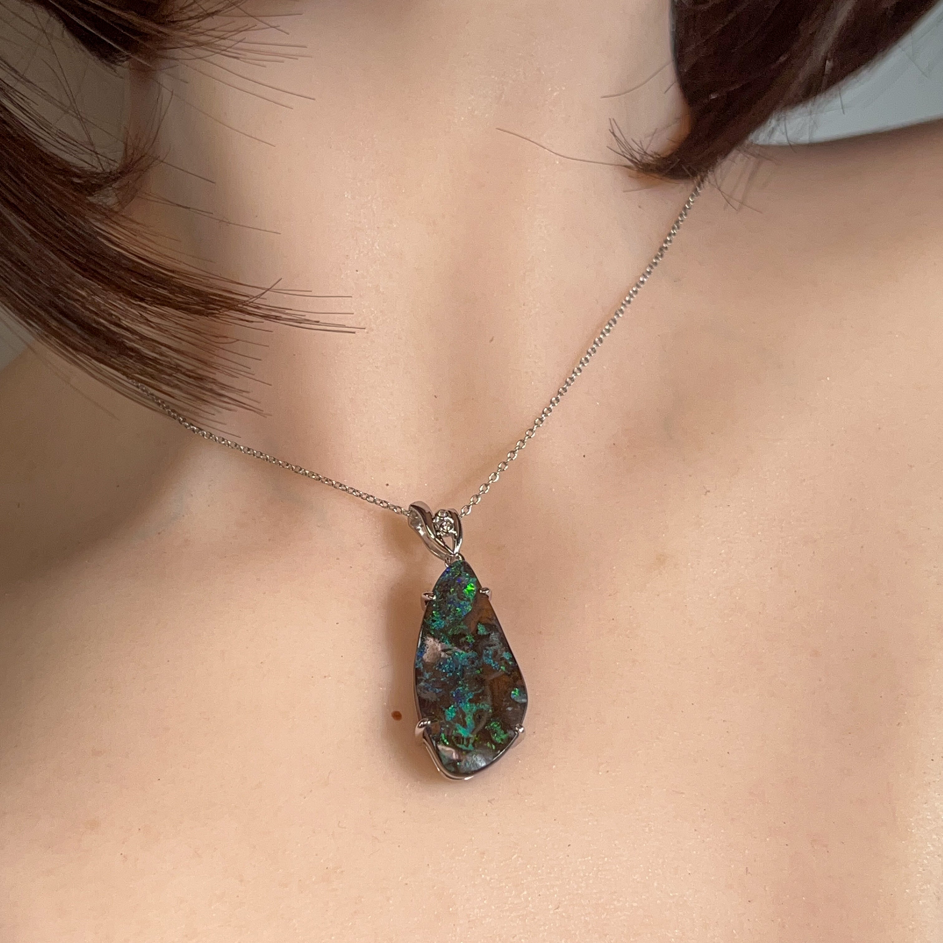 For example, an opal gold necklace is an excellent choice to highlight your neckline. If you have a high neckline, choose an opal gold necklace with a long pendant, such as Masterpiece Jewellery's 18-KT White Gold Pendant with Boulder Opal and Diamonds.