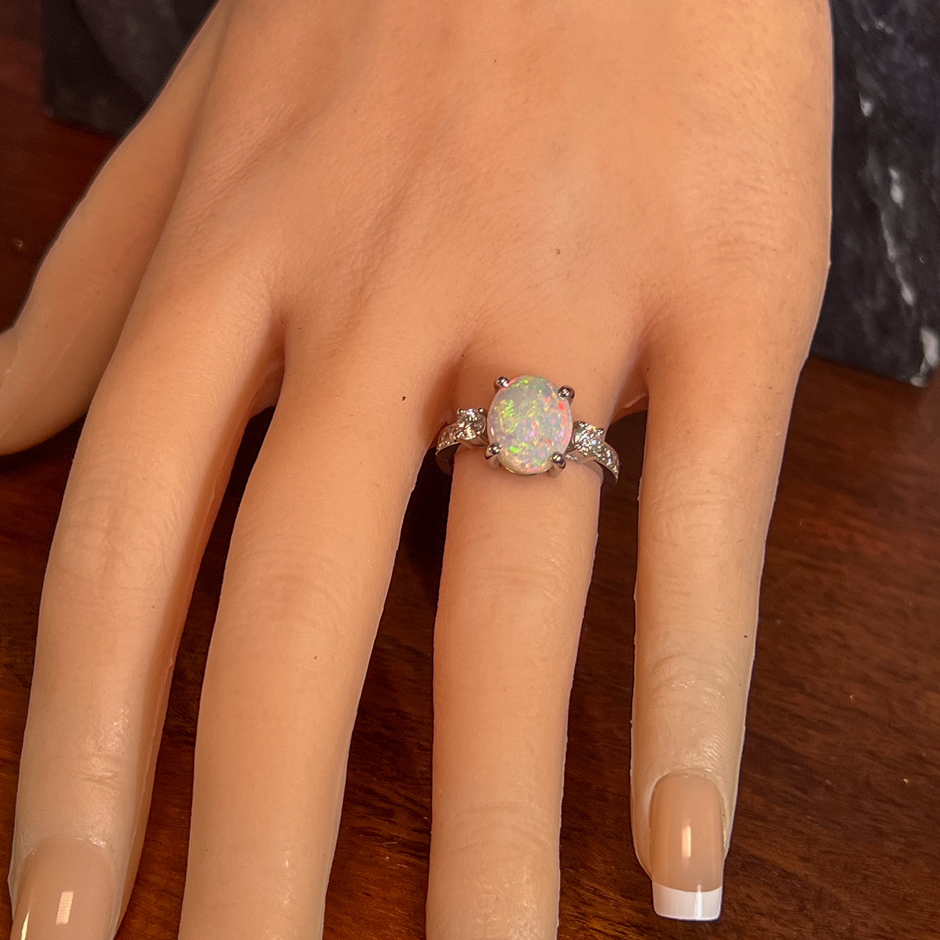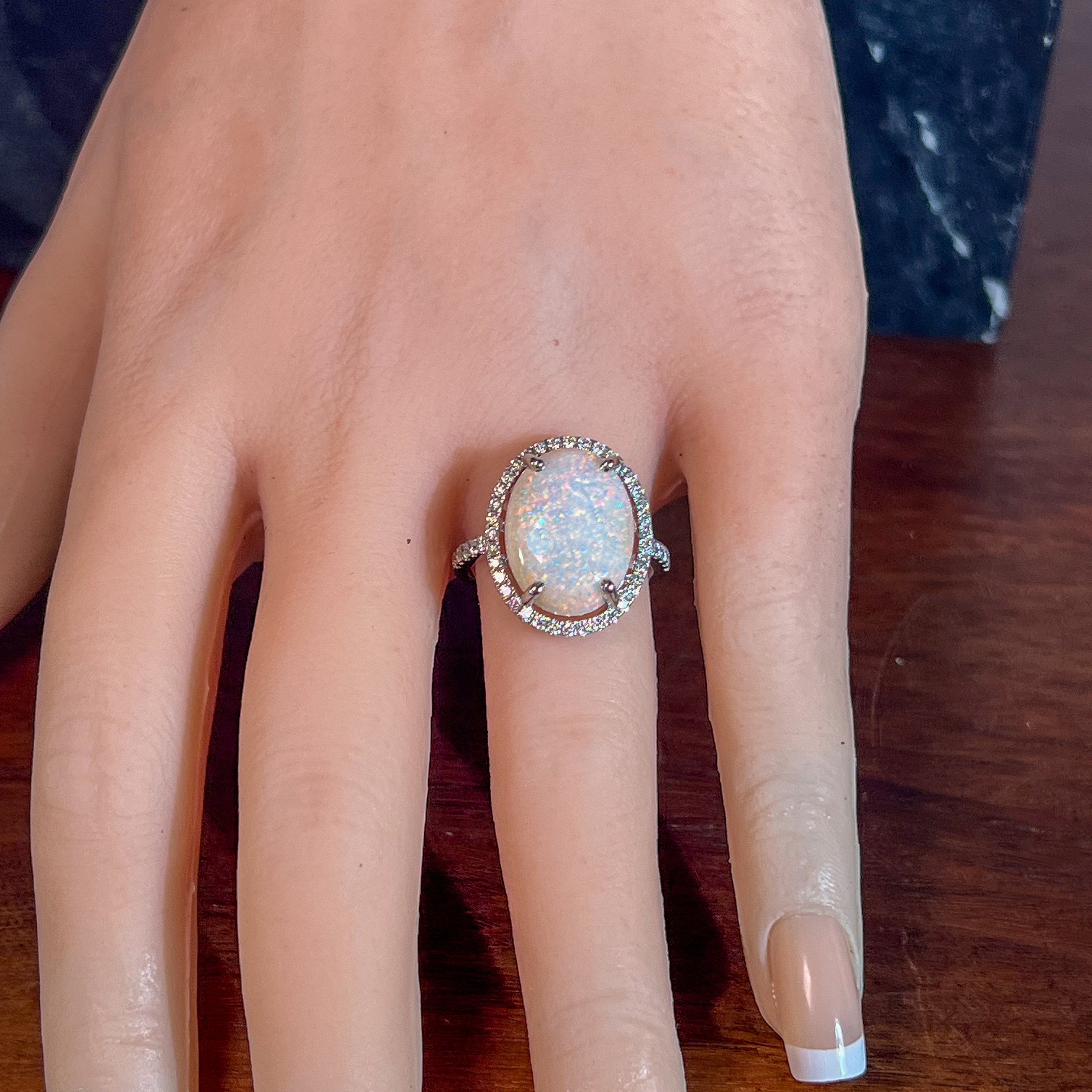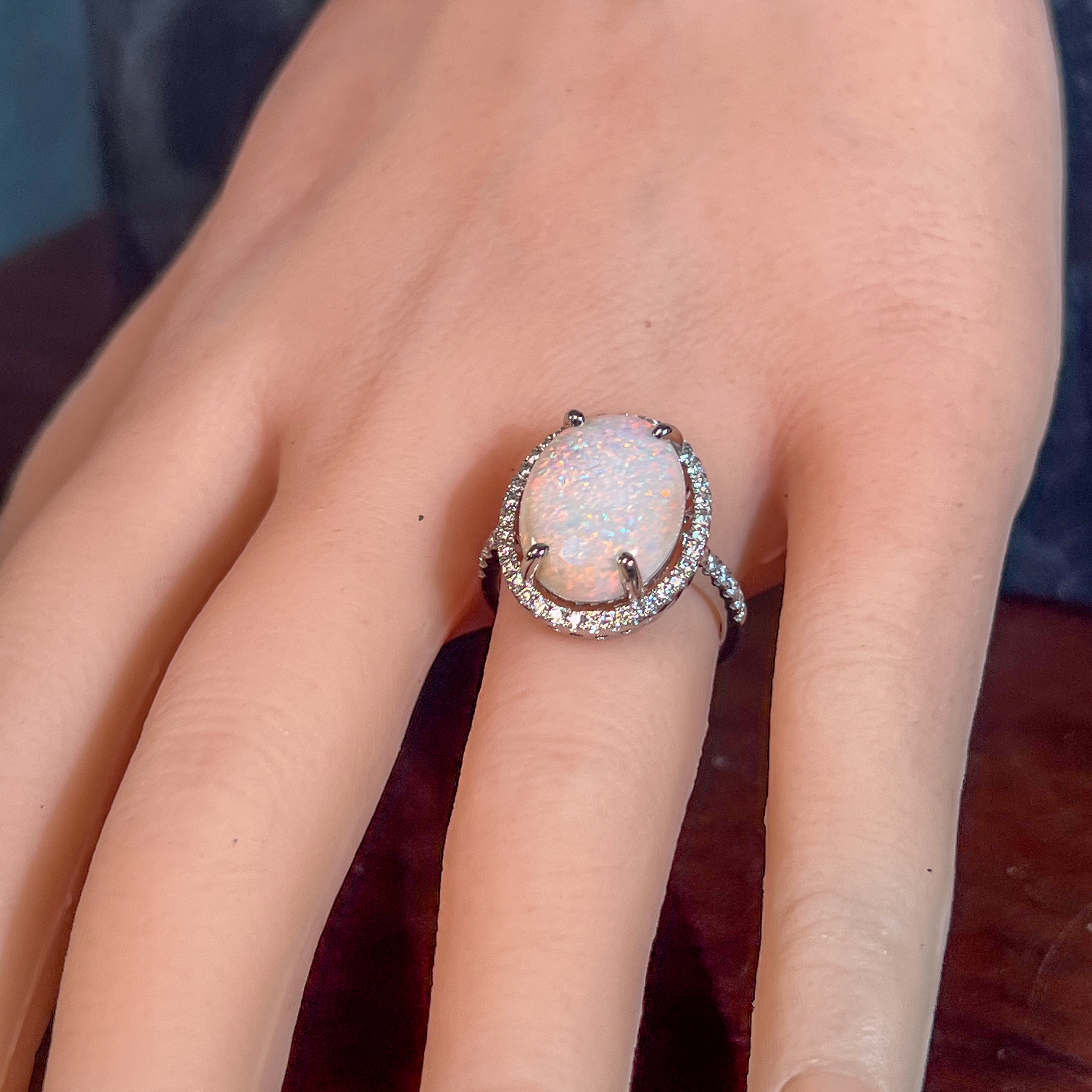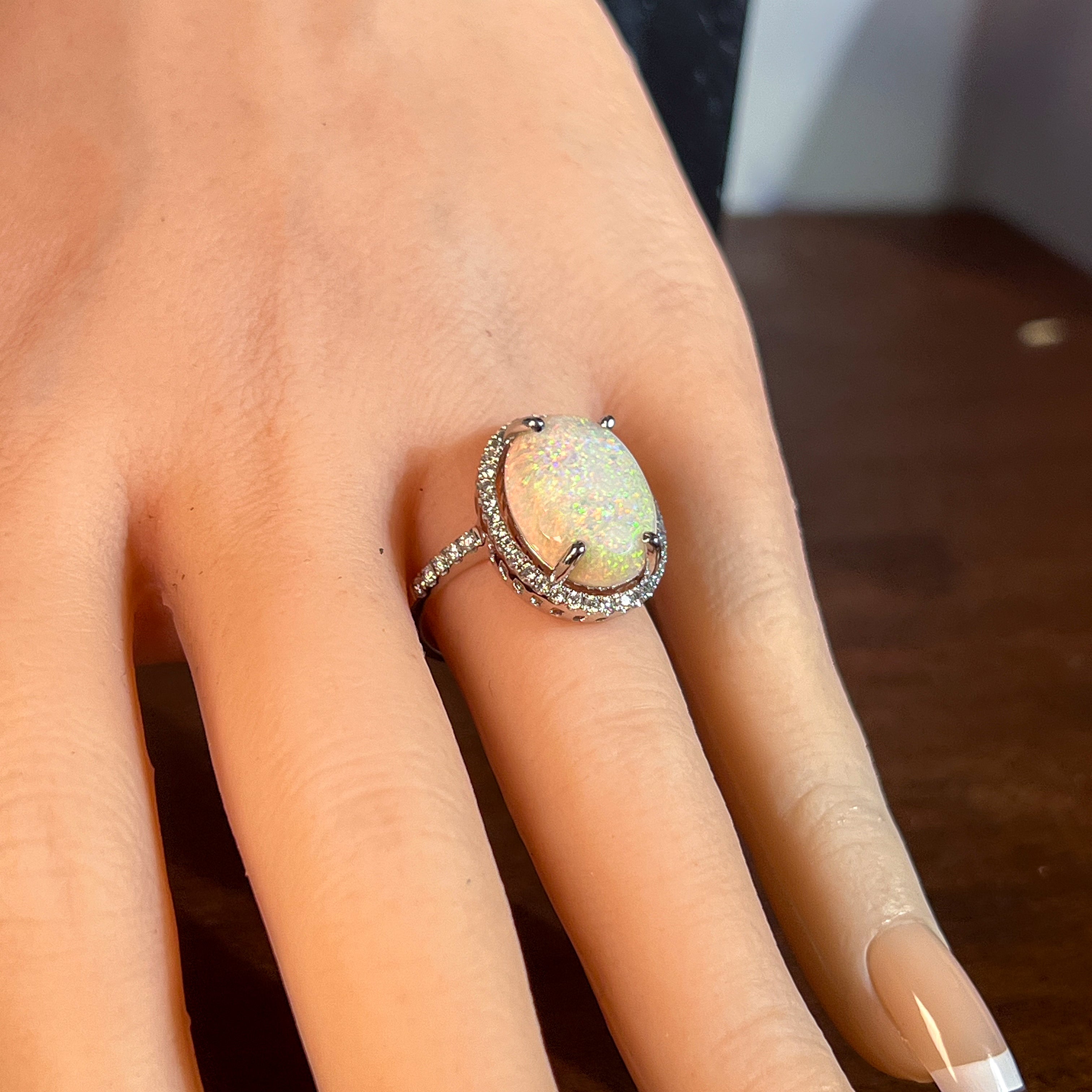 Diamond and opal rings often go well together, not only because they look good but also because diamond balances the opal stones' softness.