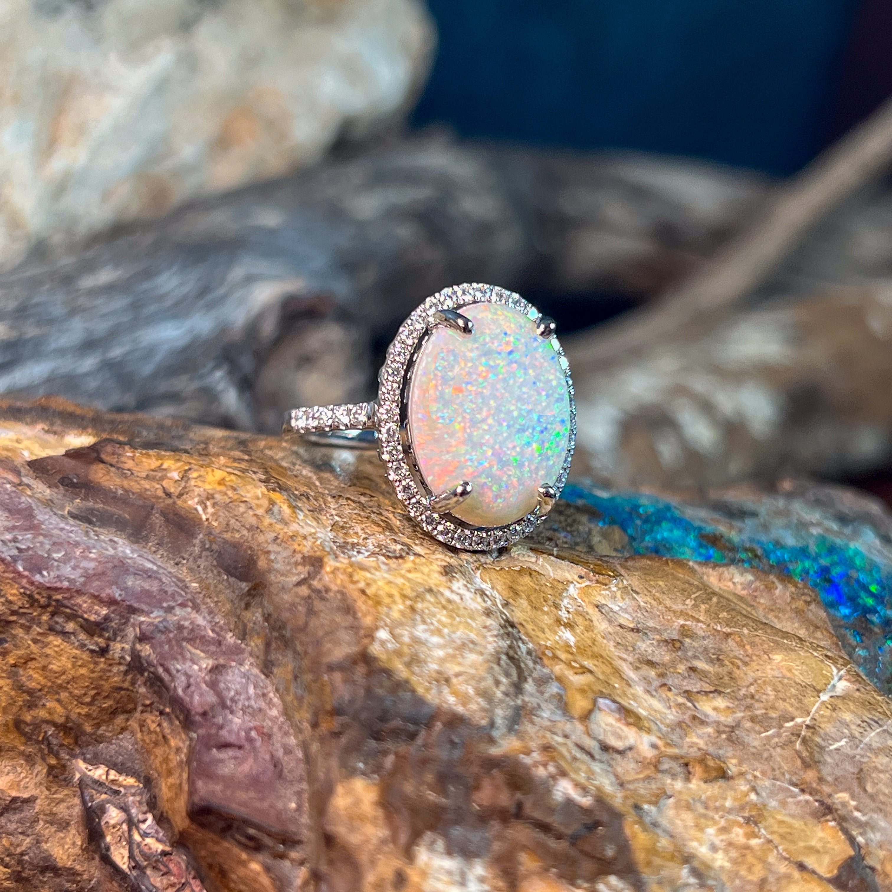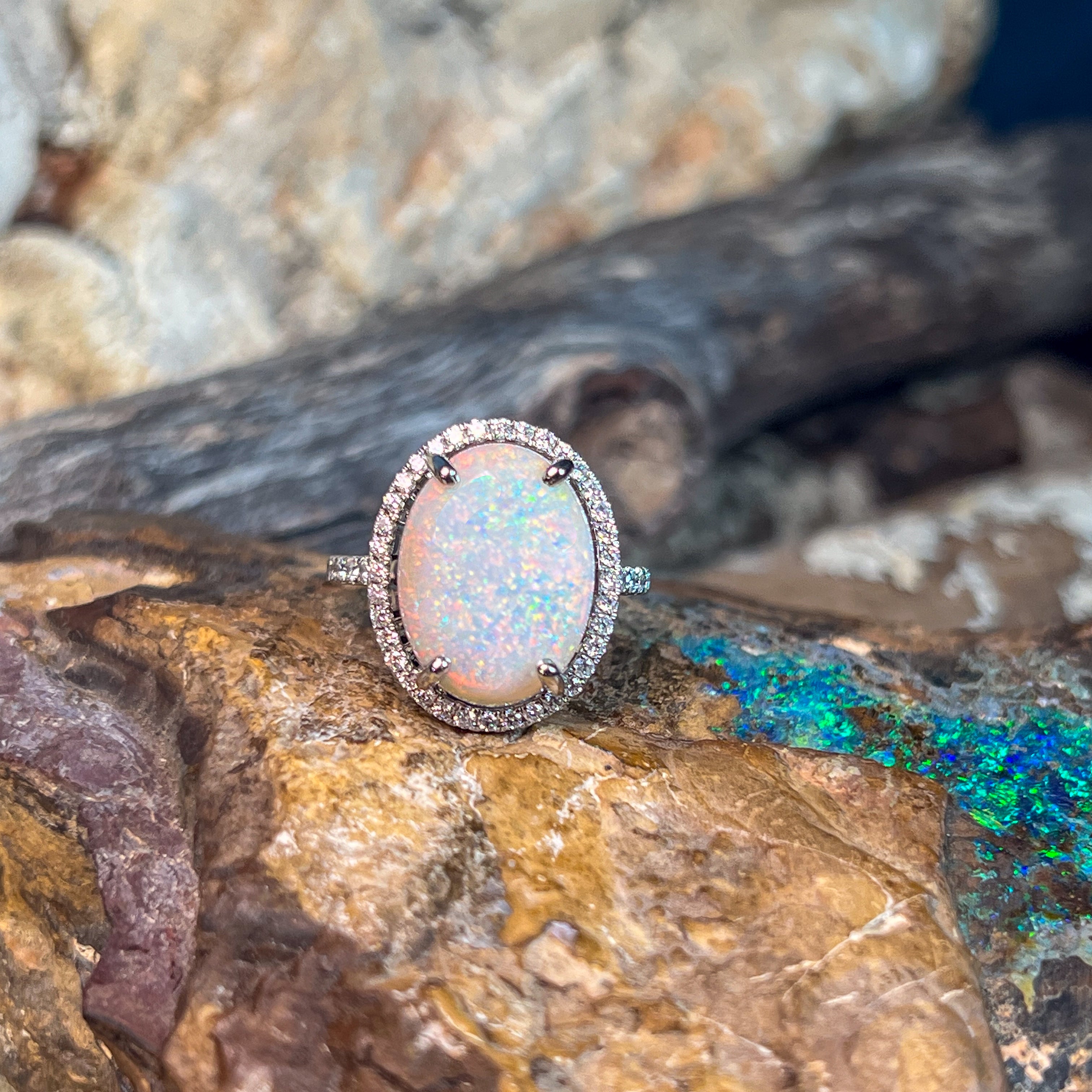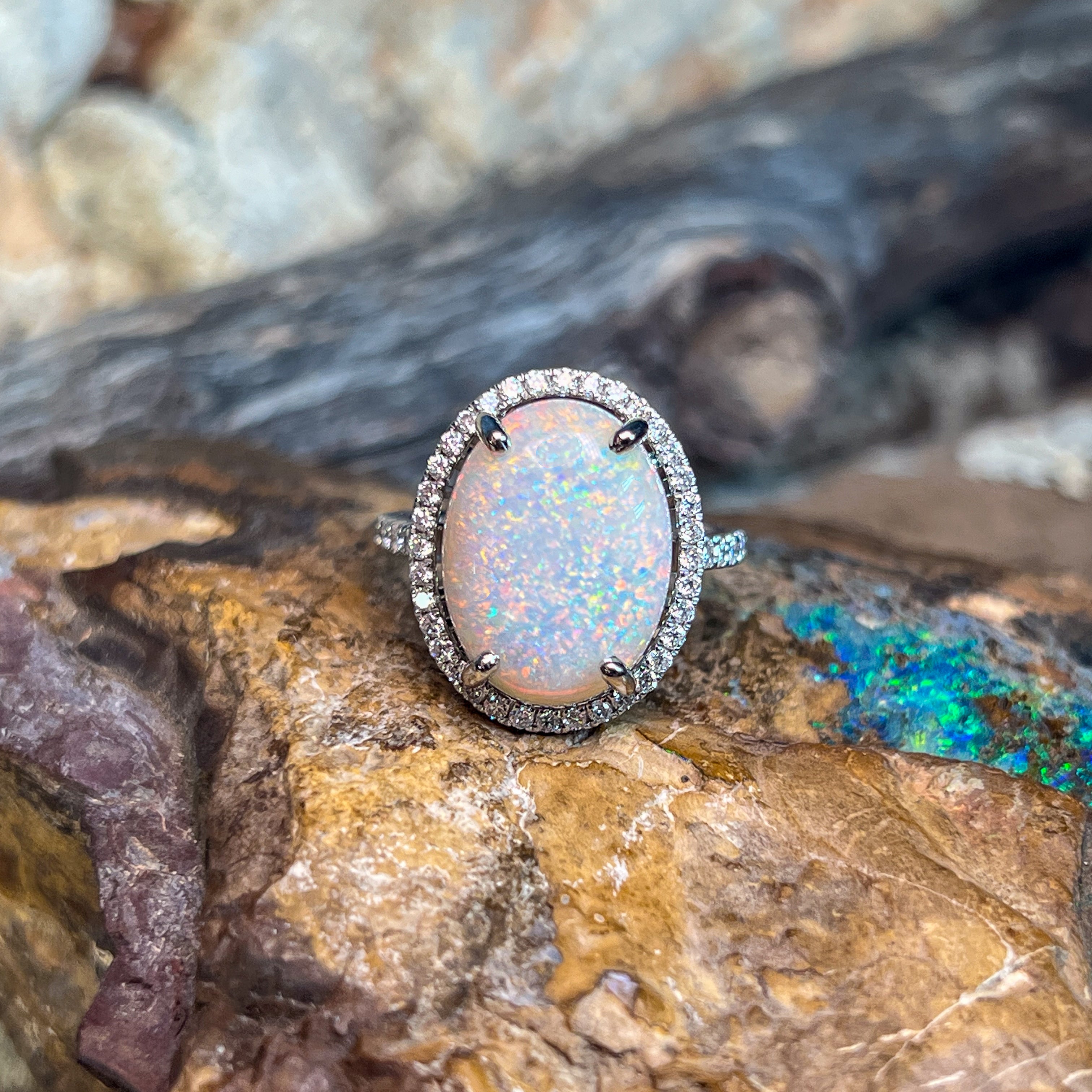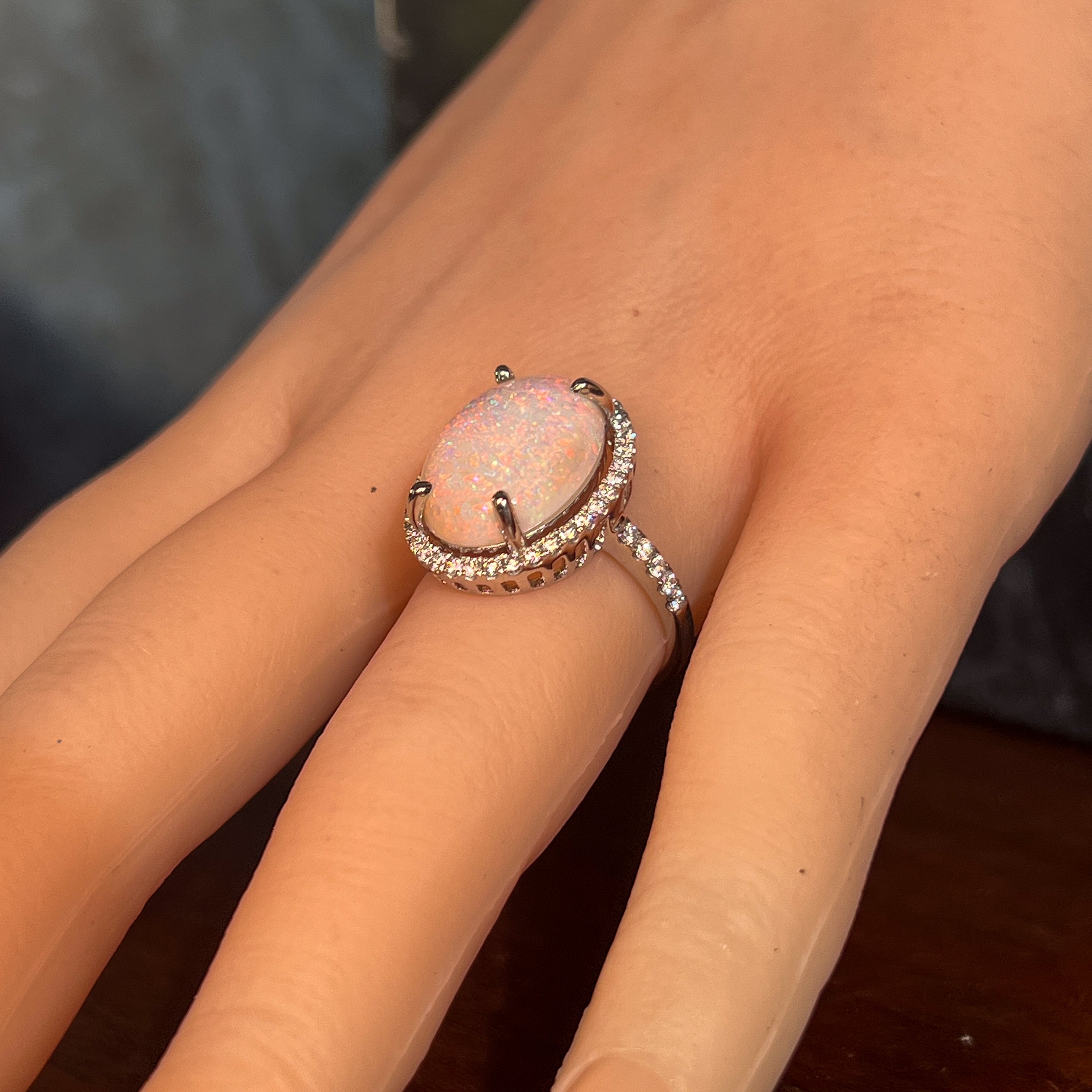 Diamond and opal rings often go well together, not only because they look good but also because diamond balances the opal stones' softness.