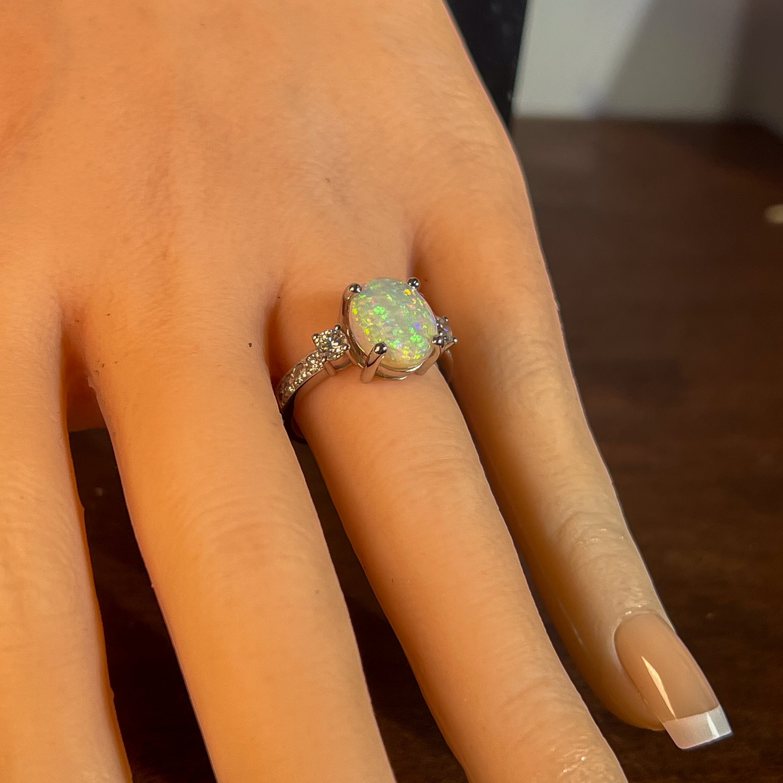 You may opt for gold opal rings, and if you don't like yellow gold, we also have white gold opal rings available. A white gold opal ring is also as beautiful as the others. Take a look at our 18-KT White Gold Light Opal Fire And Diamond Ring.