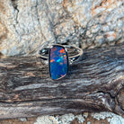 Dive into colour with this stunning 14kt white gold ring featuring a mesmerising red-blue opal doublet framed by sparkling diamonds. The play of light across the opal creates an ever-changing display of fiery reds and cool blues, while the diamond accents add timeless elegance and brilliance. Perfect for those who dare to stand out and celebrate the extraordinary. A modern masterpiece that turns heads and sparks conversations.