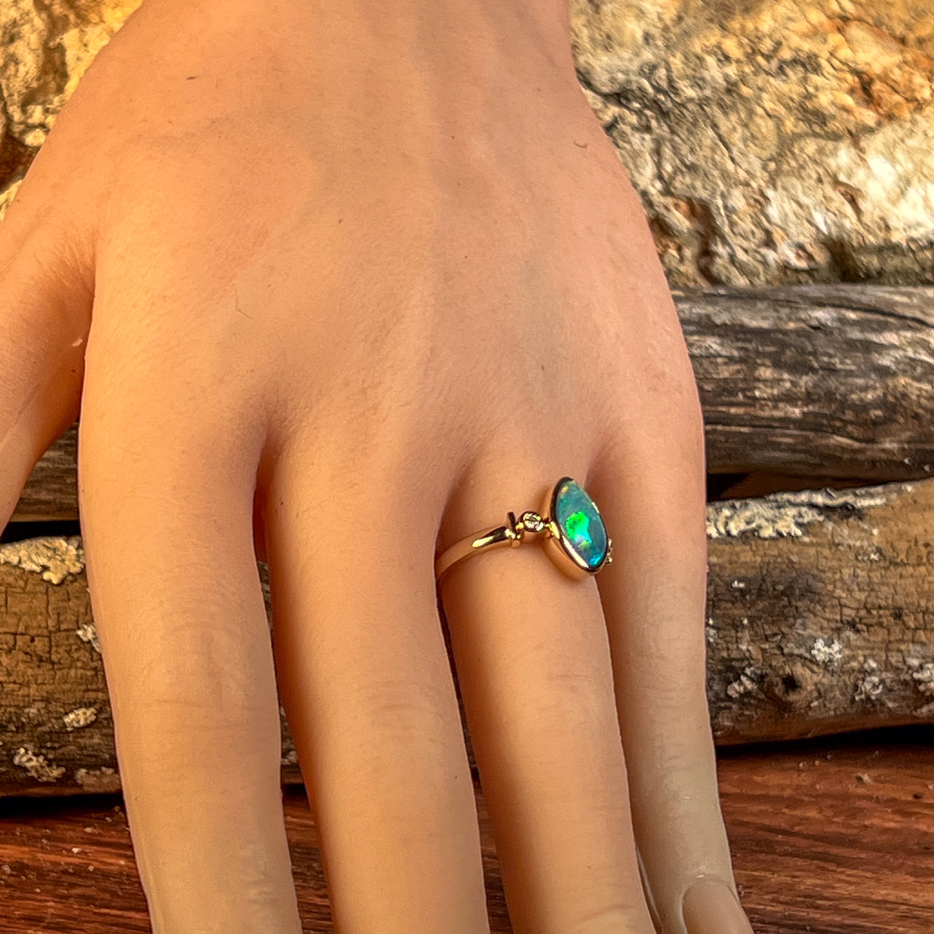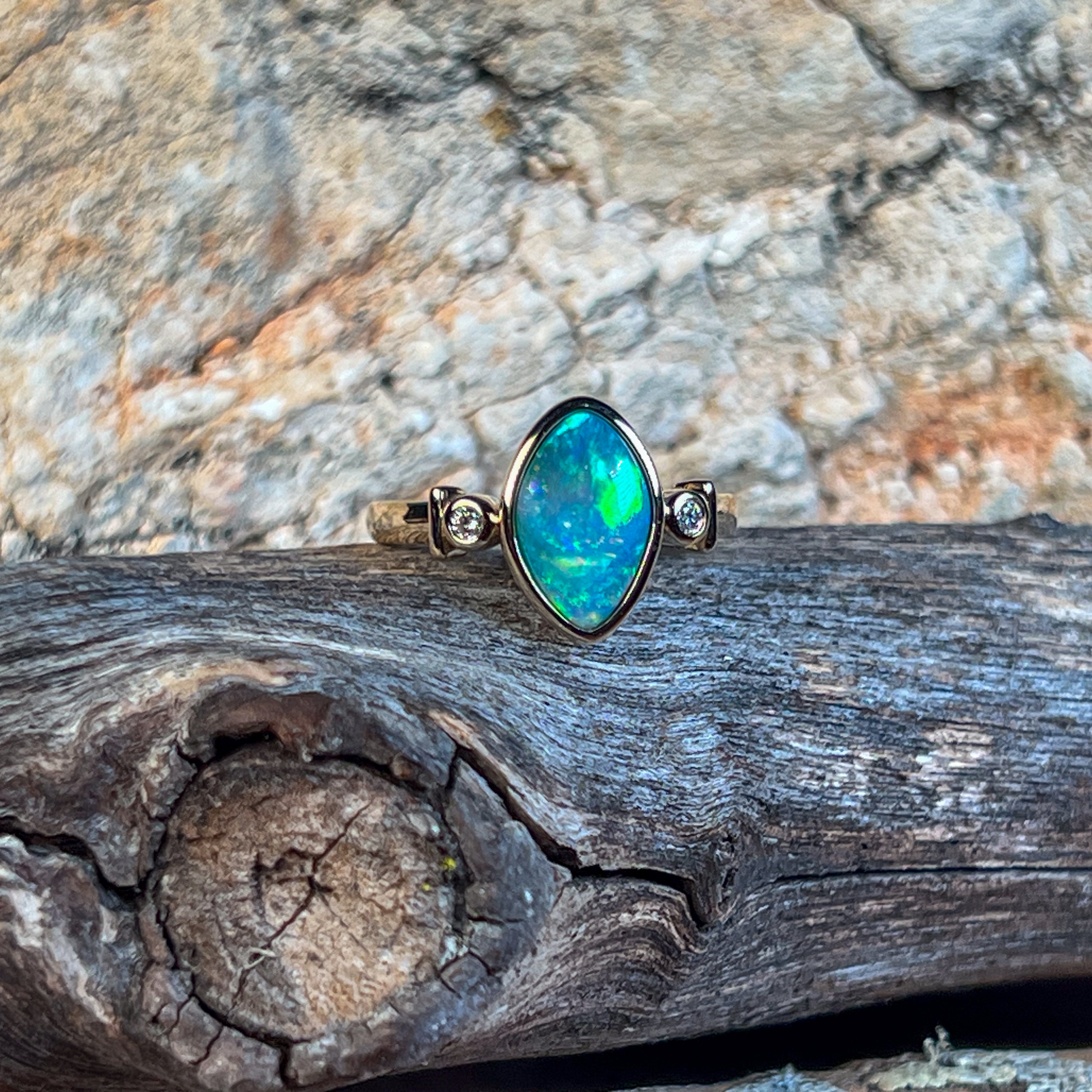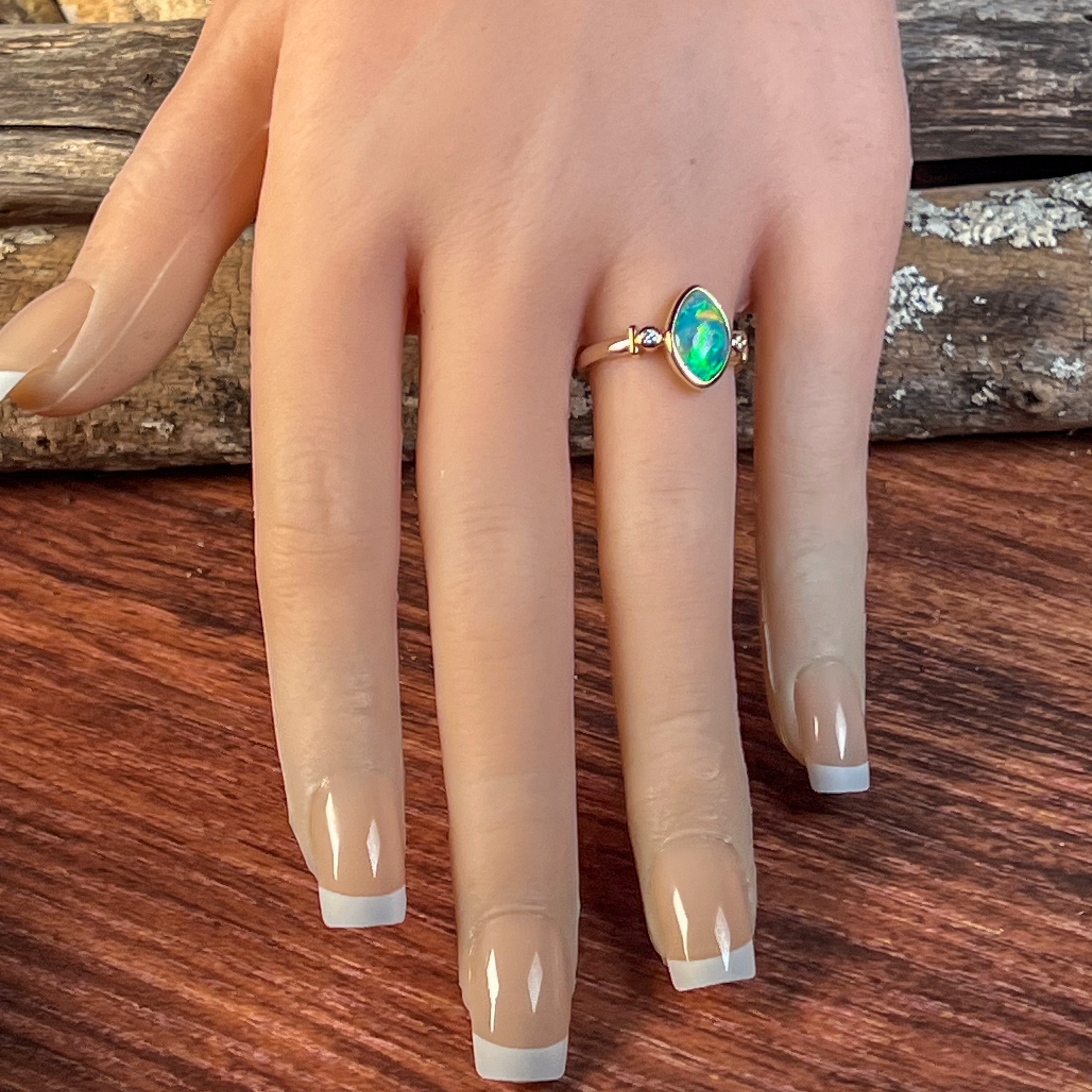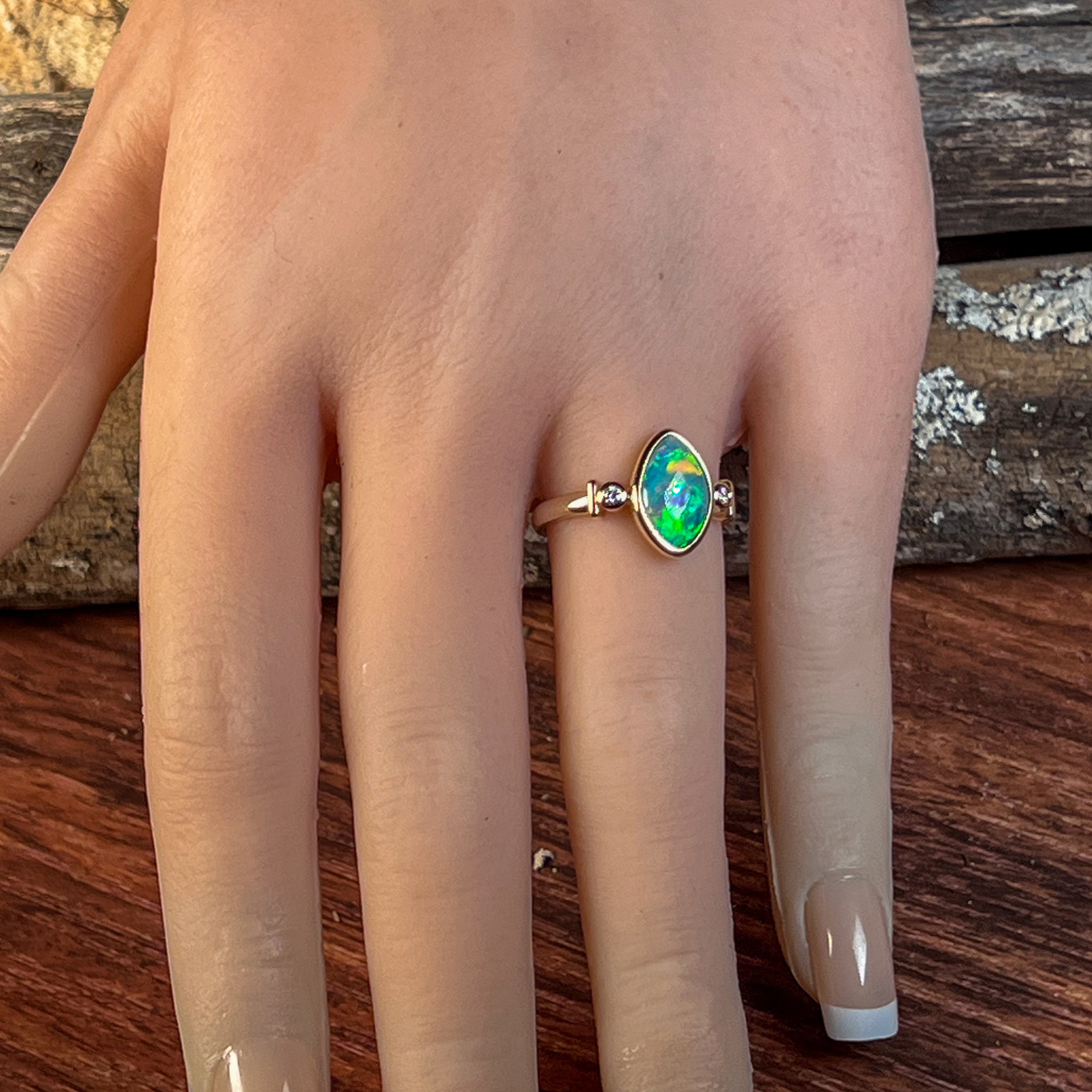 14kt Yellow Gold 1.48ct Opal doublet and diamond ring