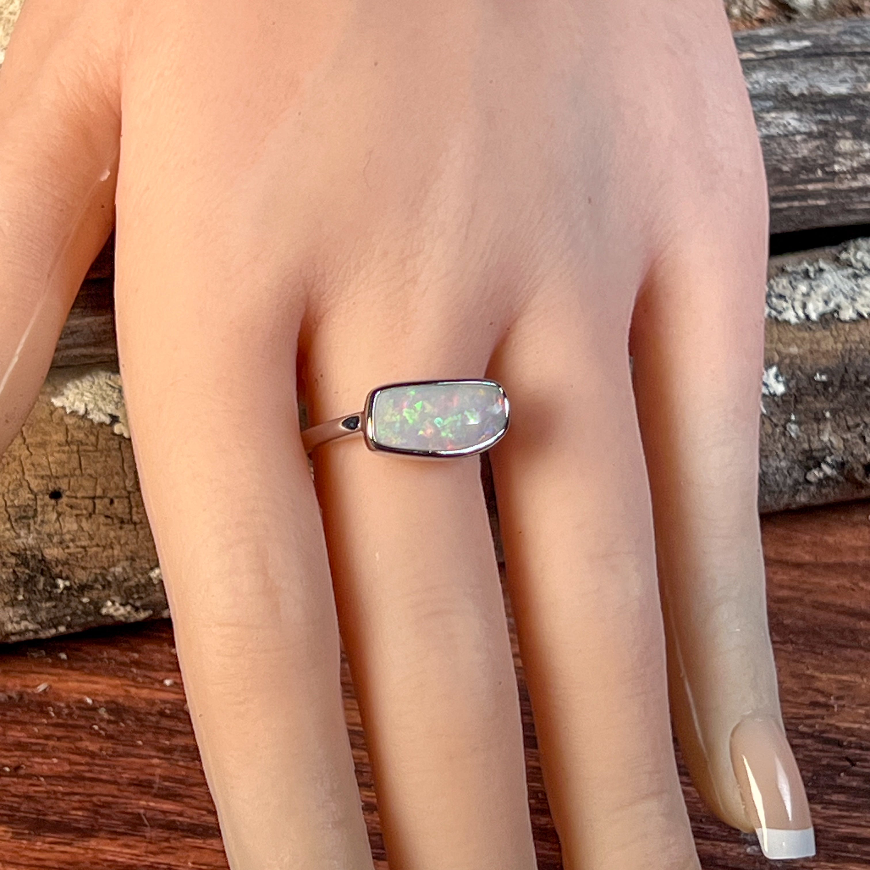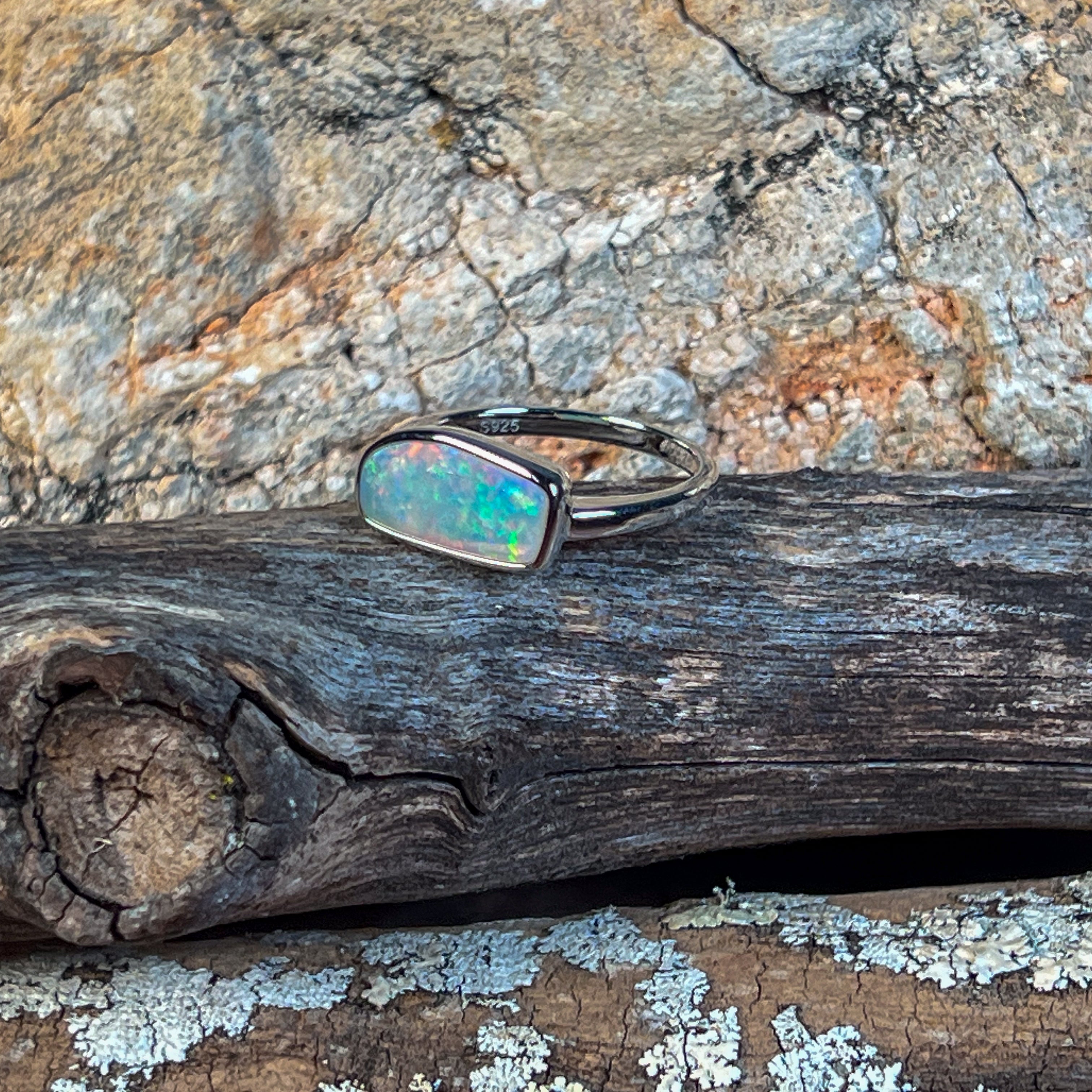 Sterling Silver Crystal Opal 1.59ct bezel set ring