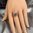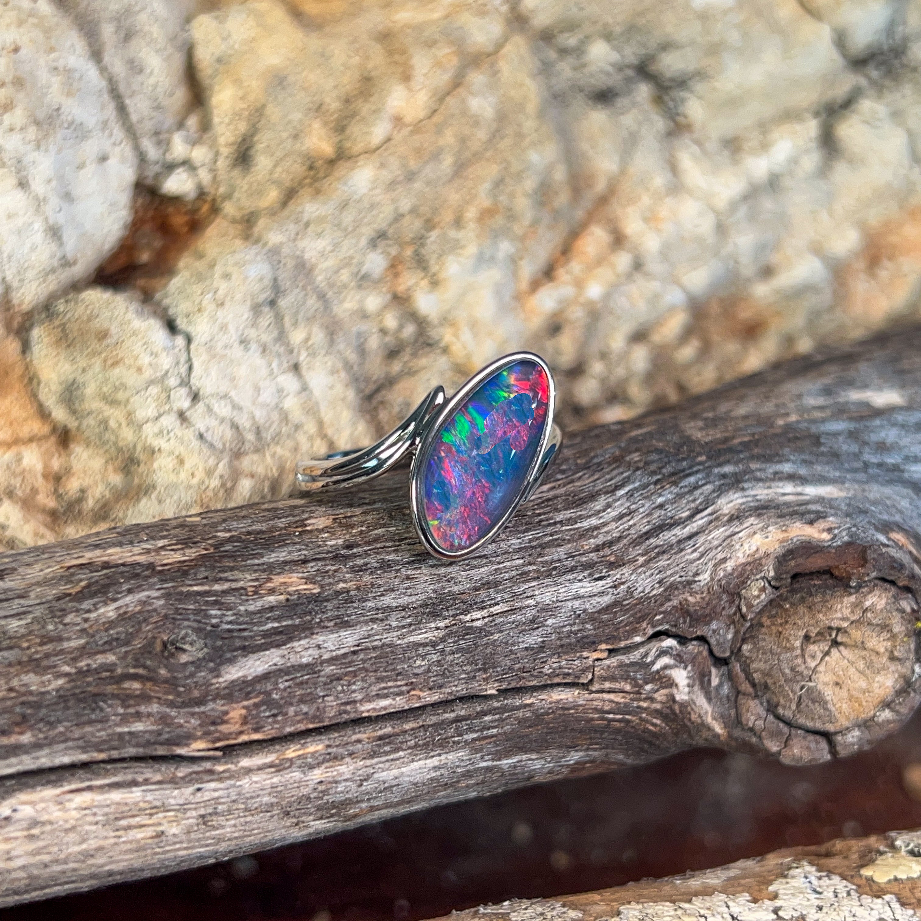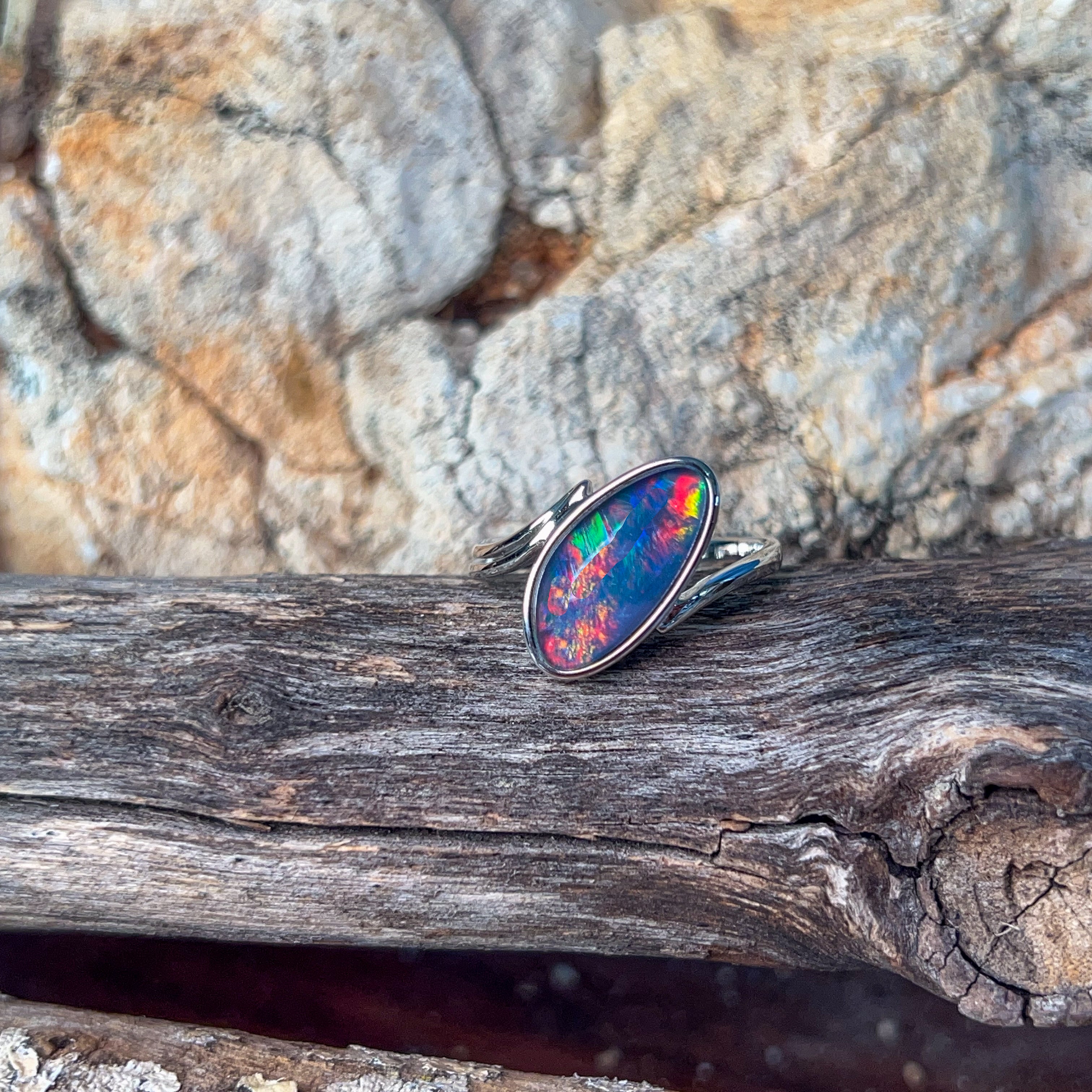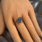 Elevate your everyday elegance with this stunning Sterling Silver triplet Opal ring. Featuring a captivating 17x9mm opal stone, this piece showcases the mesmerizing play of colour that makes opals truly unforgettable. The triplet construction ensures durability and brilliance, while the sleek sterling silver setting provides a timeless foundation that complements any style. Perfect for those who appreciate natural beauty with a contemporary edge, this ring is an investment in distinctive jewellery that turns heads and sparks conversation wherever you go.