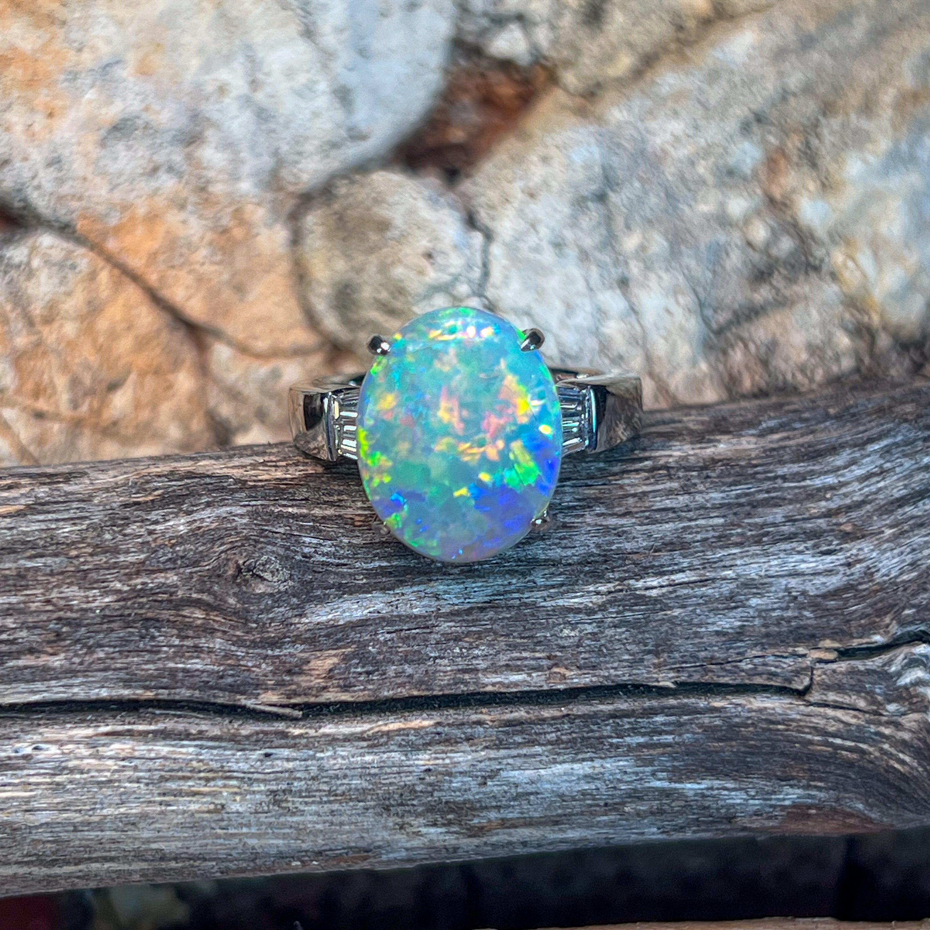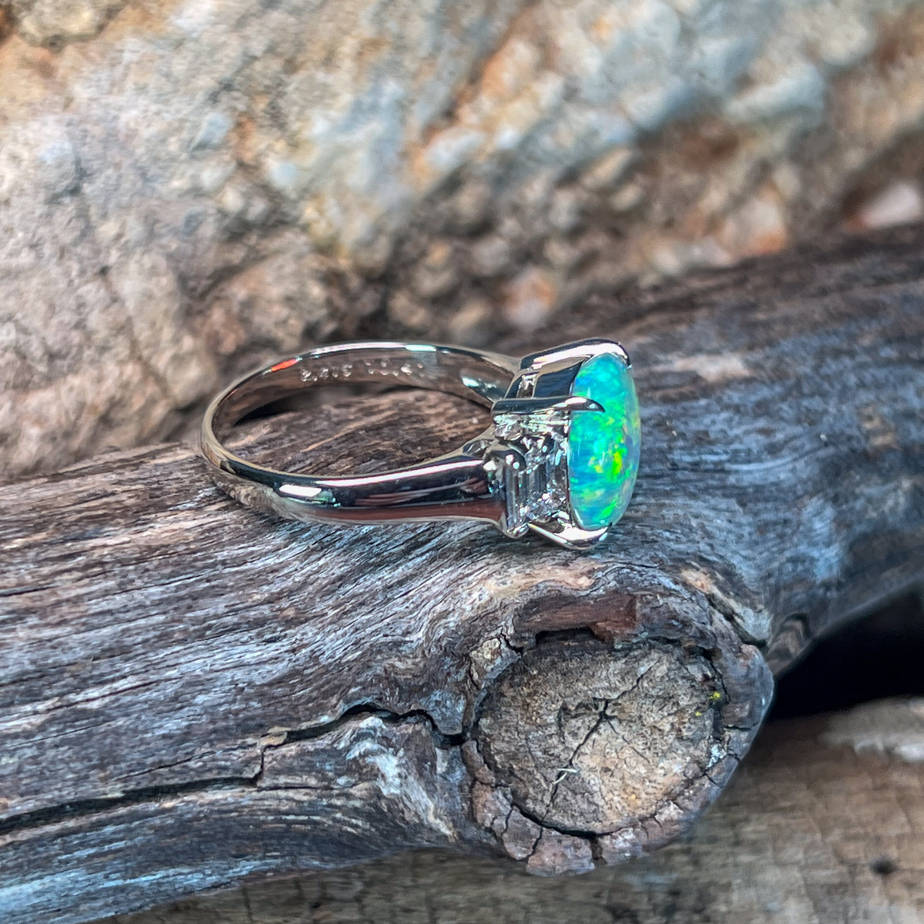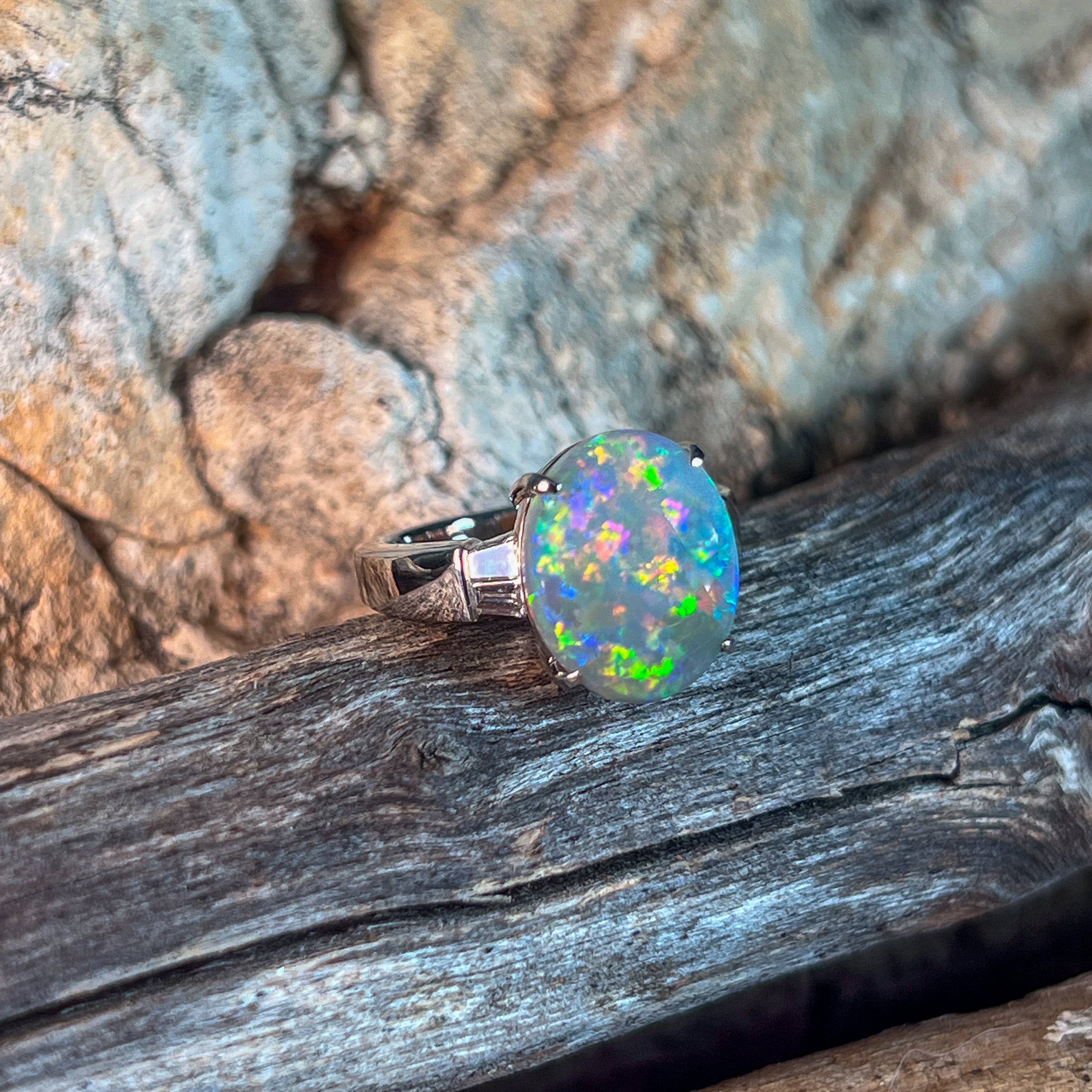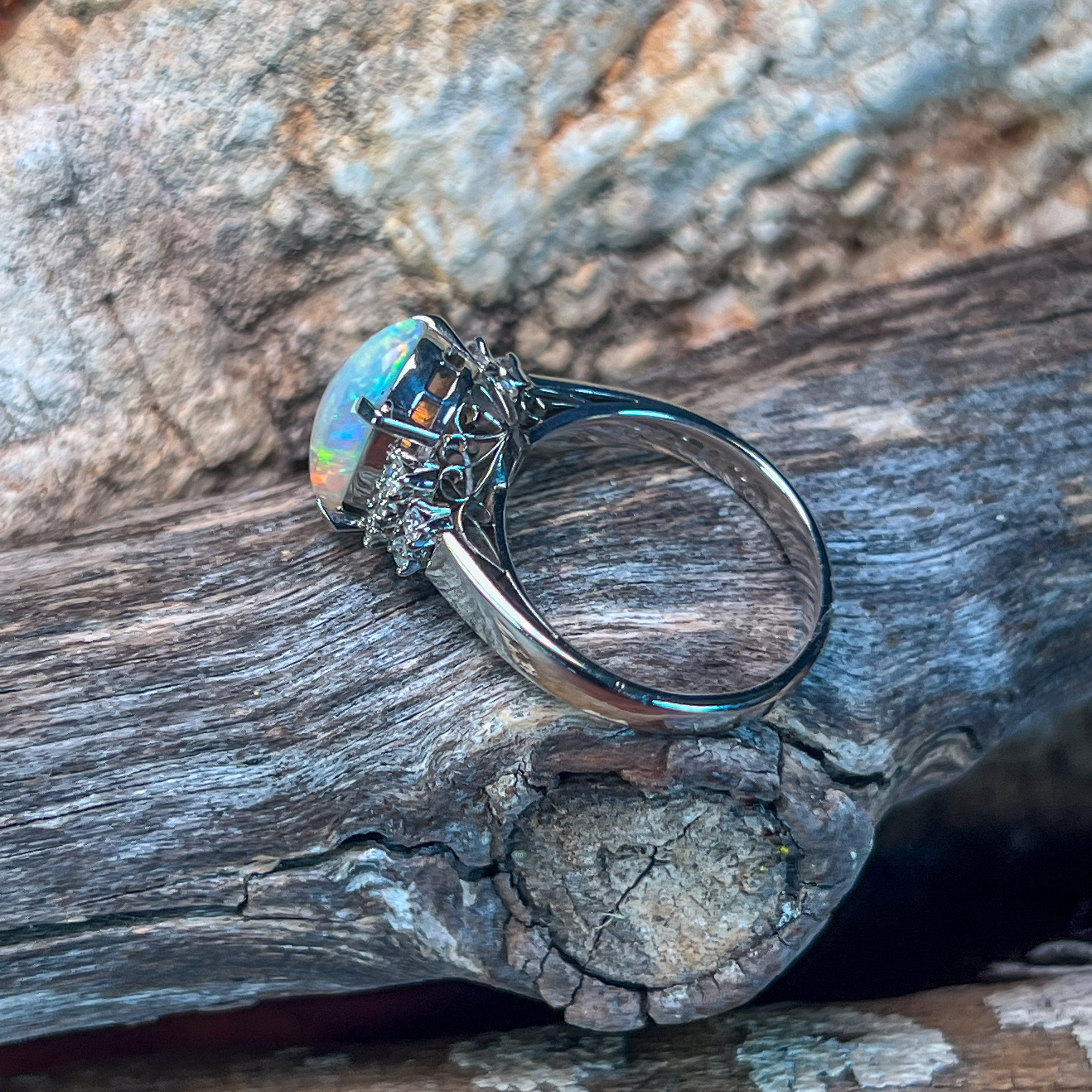 One Platinum Black Opal and Diamond Ring is an excellent example of a black opal ring. It can make a perfect family heirloom, or an engagement ring.