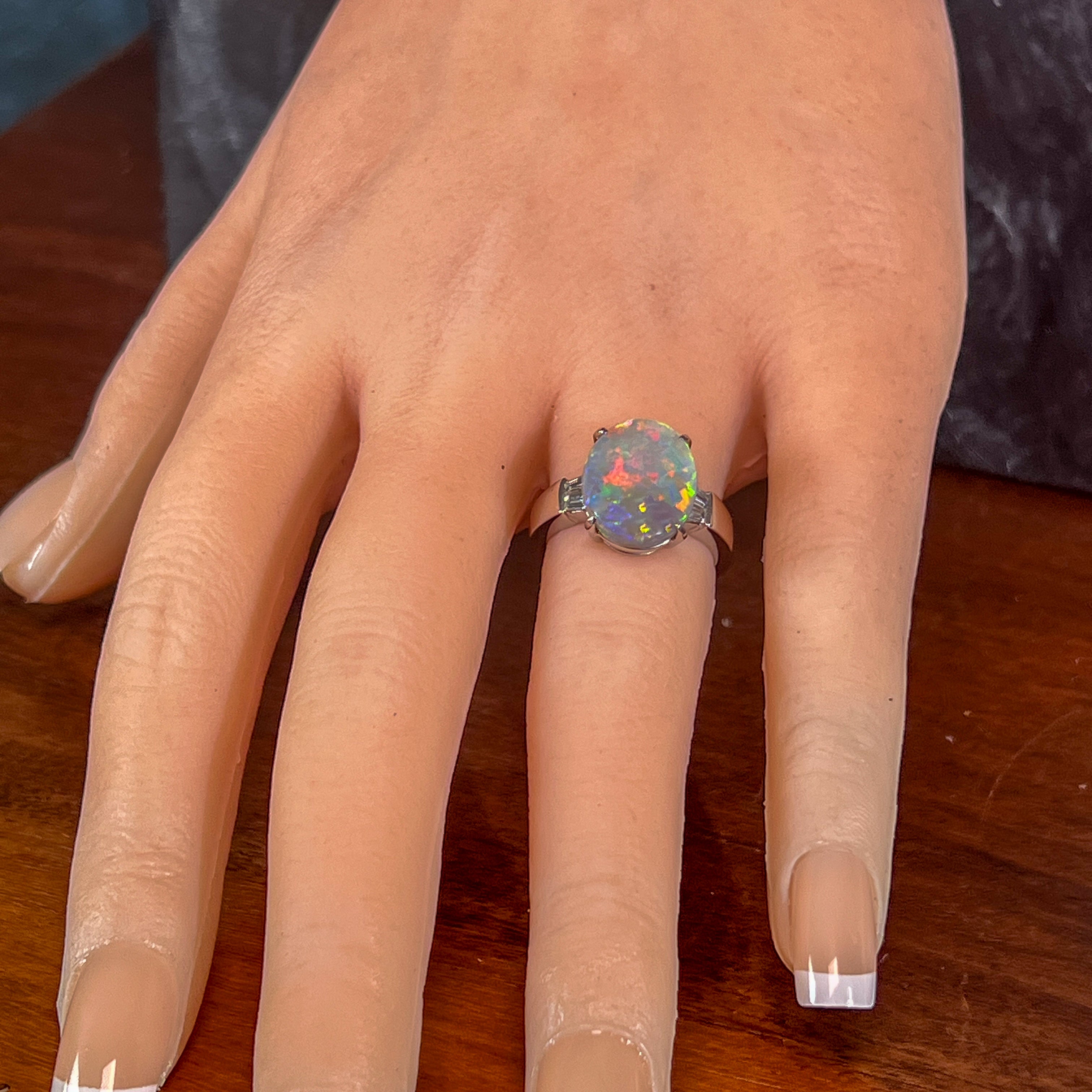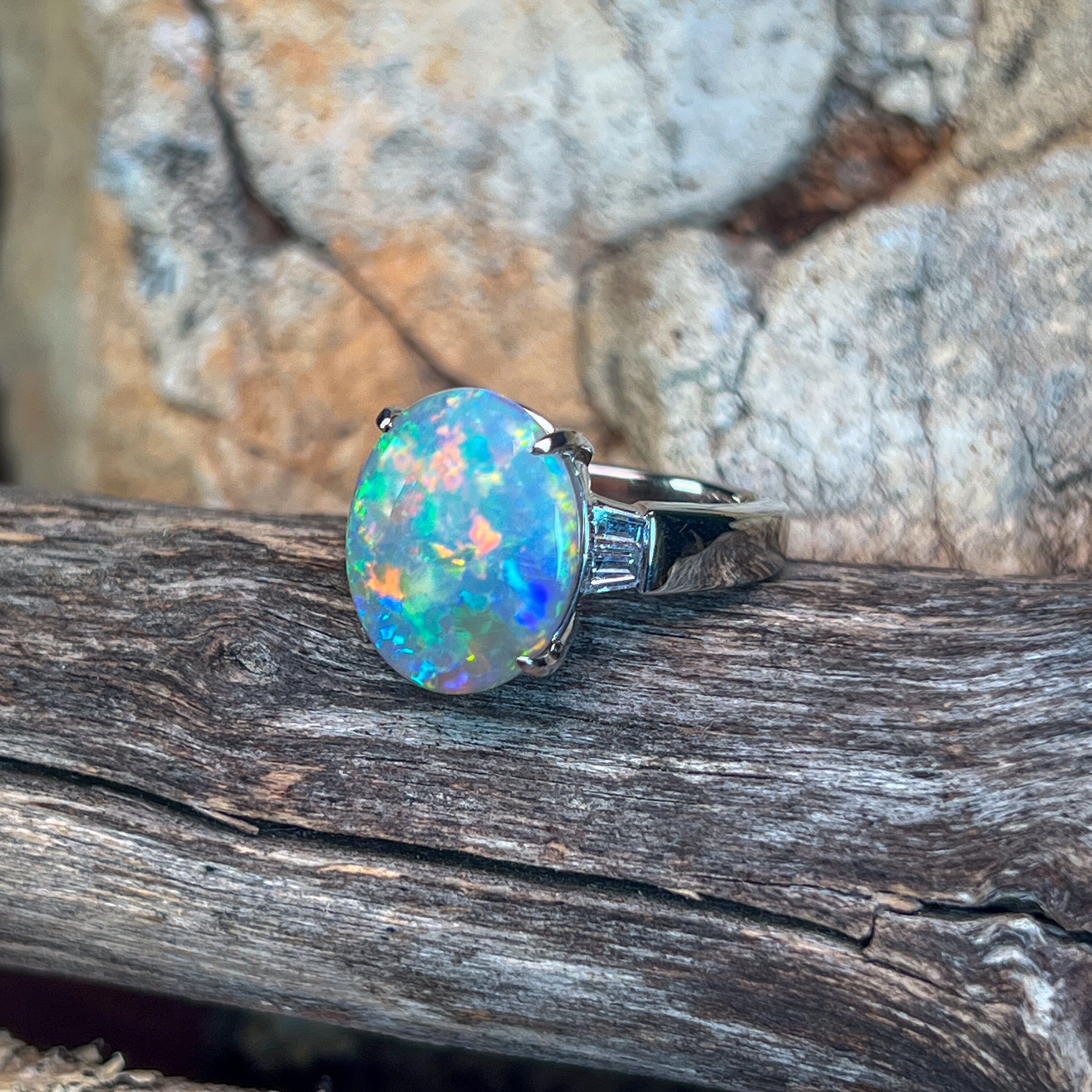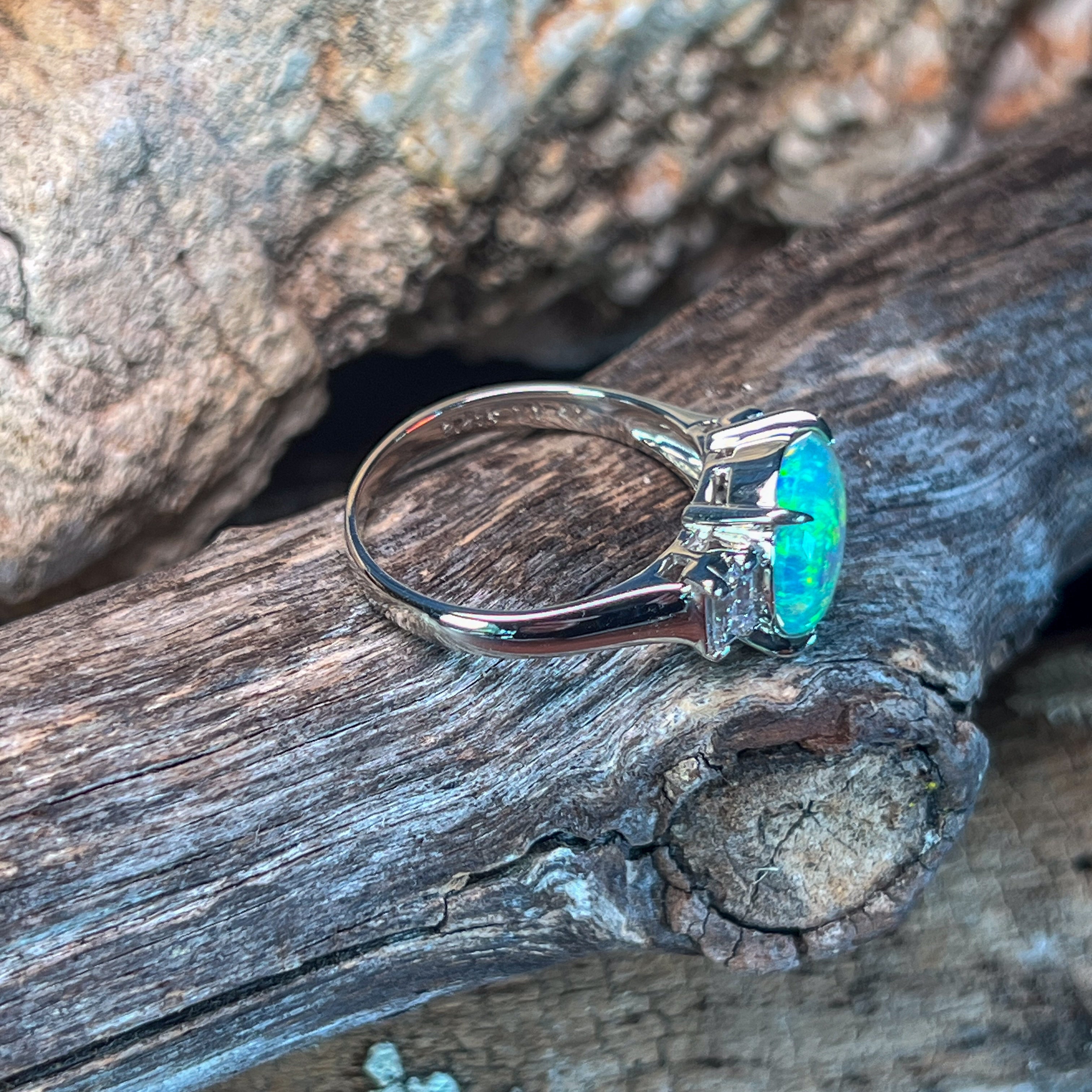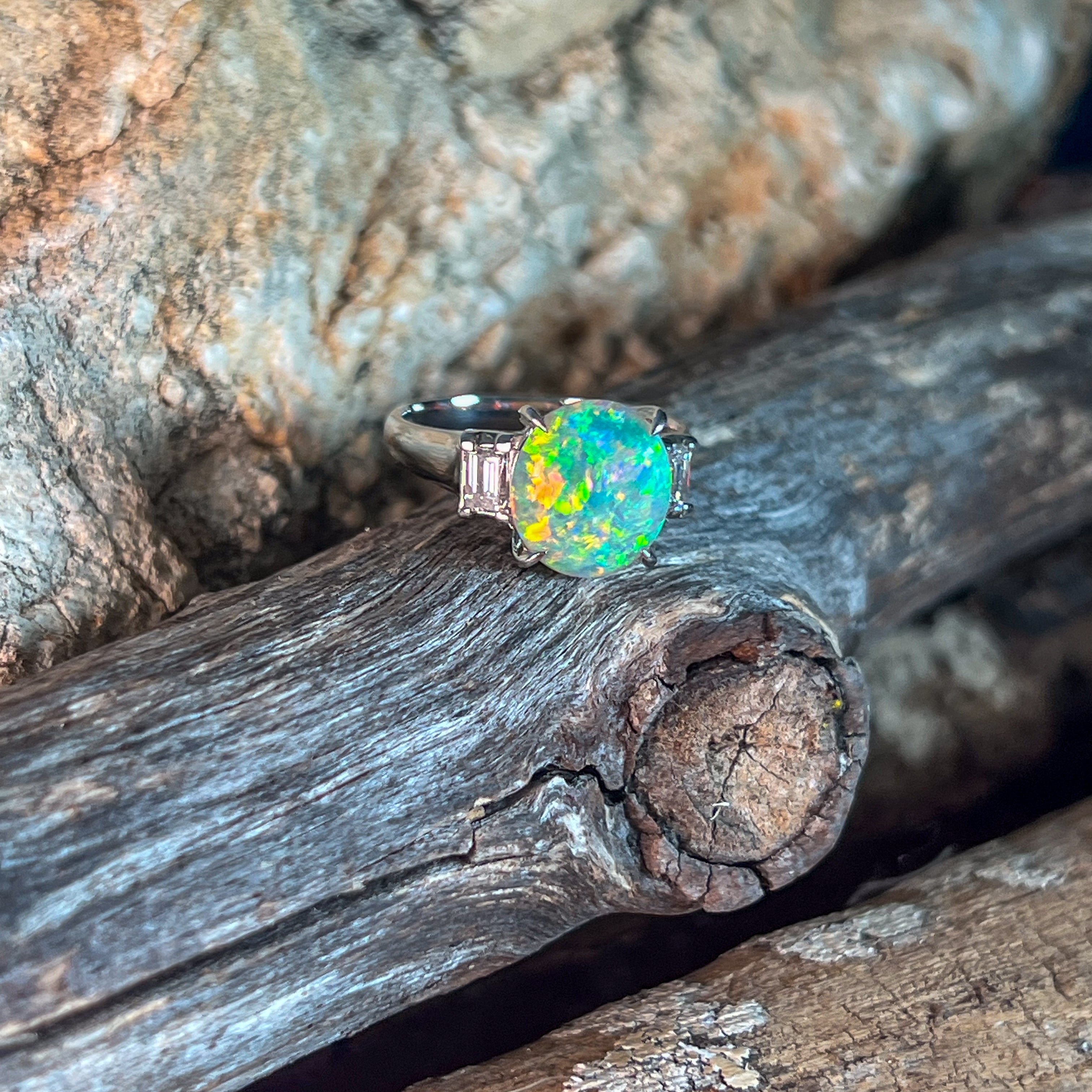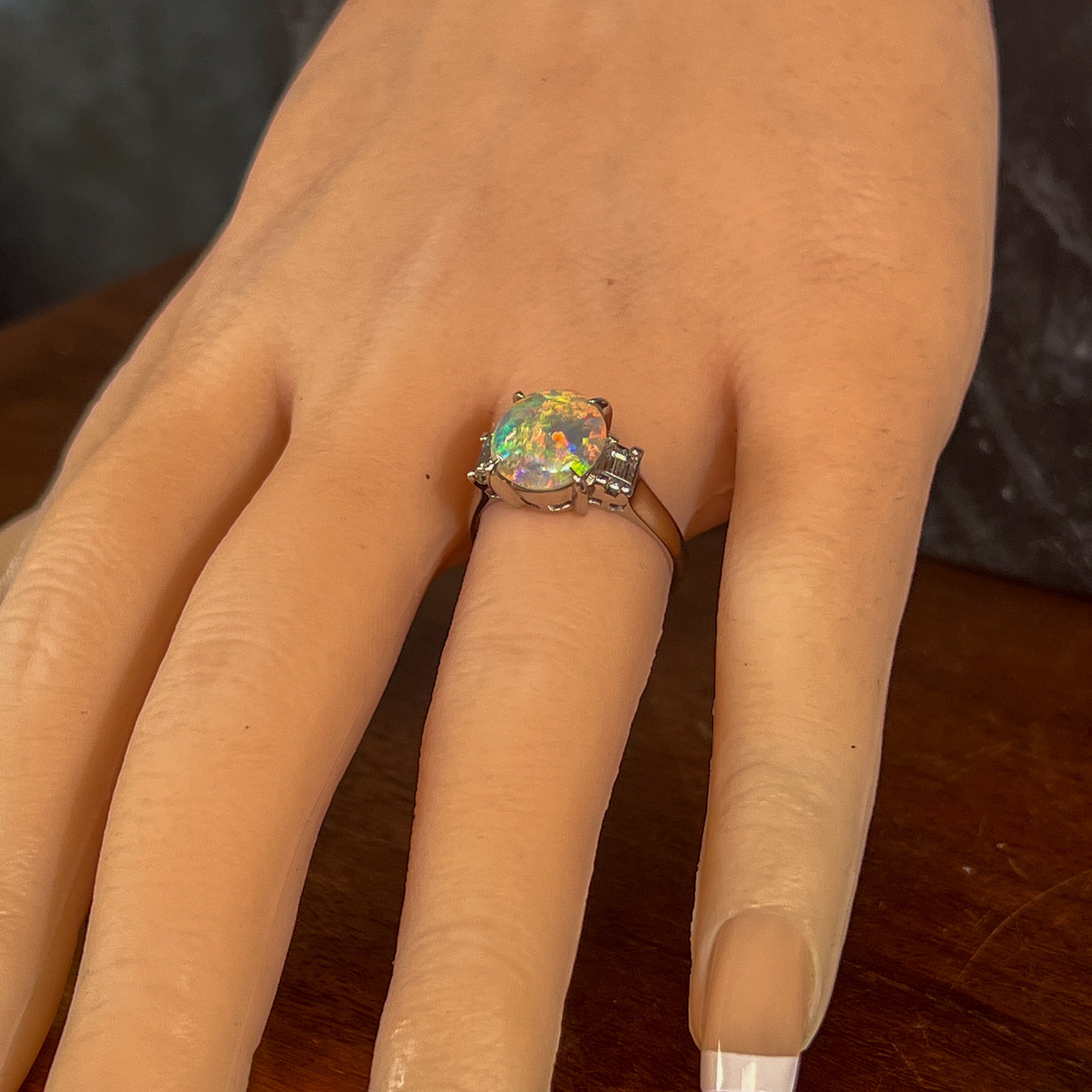 One Platinum Black Opal and Diamond Ring is an excellent example of a black opal ring. It can make a perfect family heirloom, or an engagement ring.