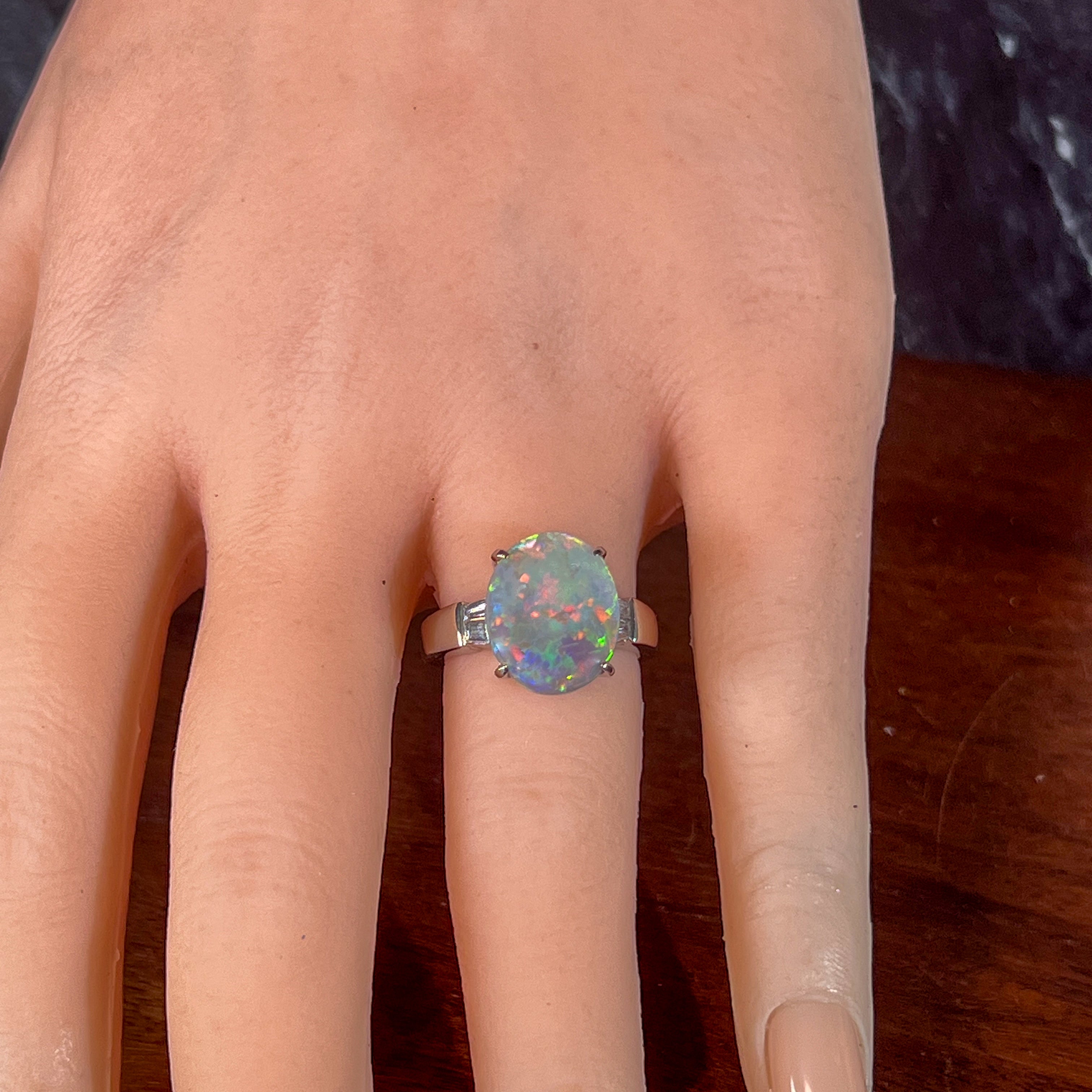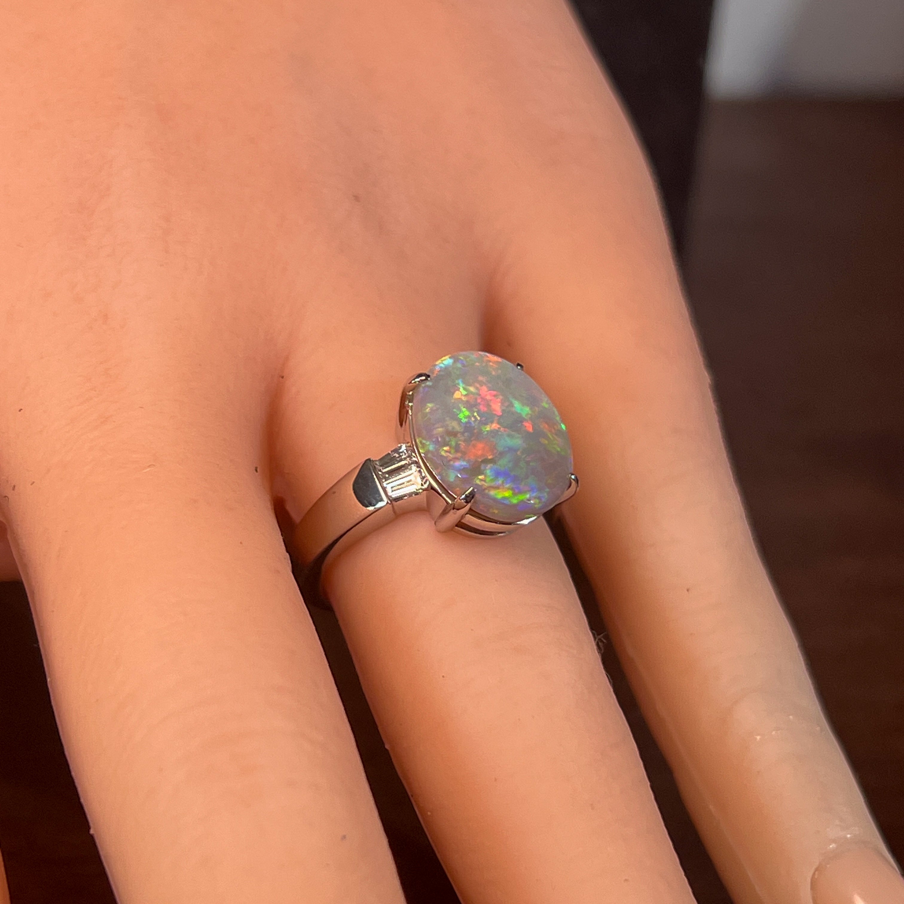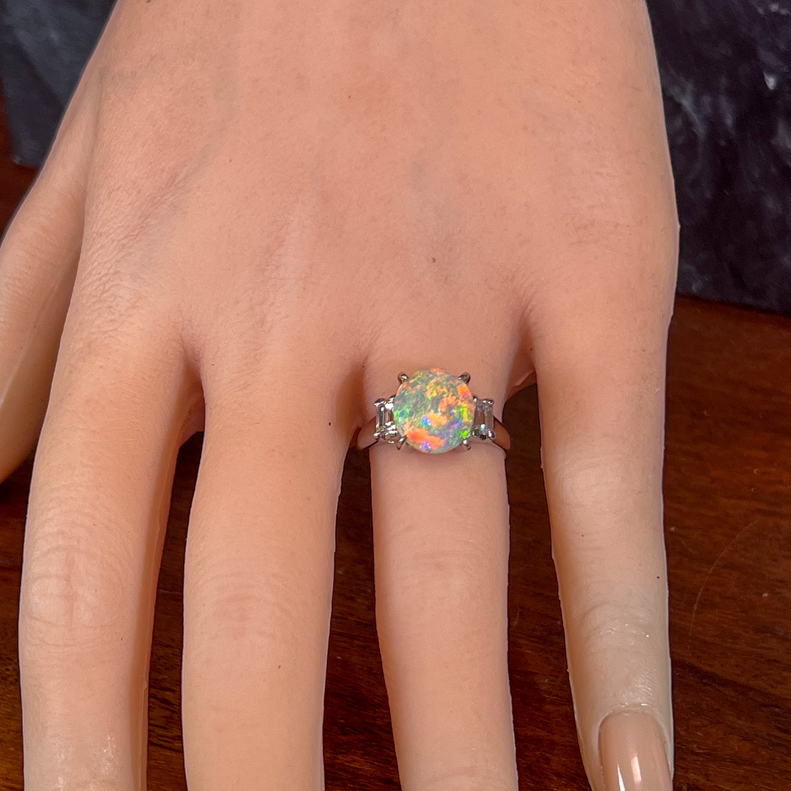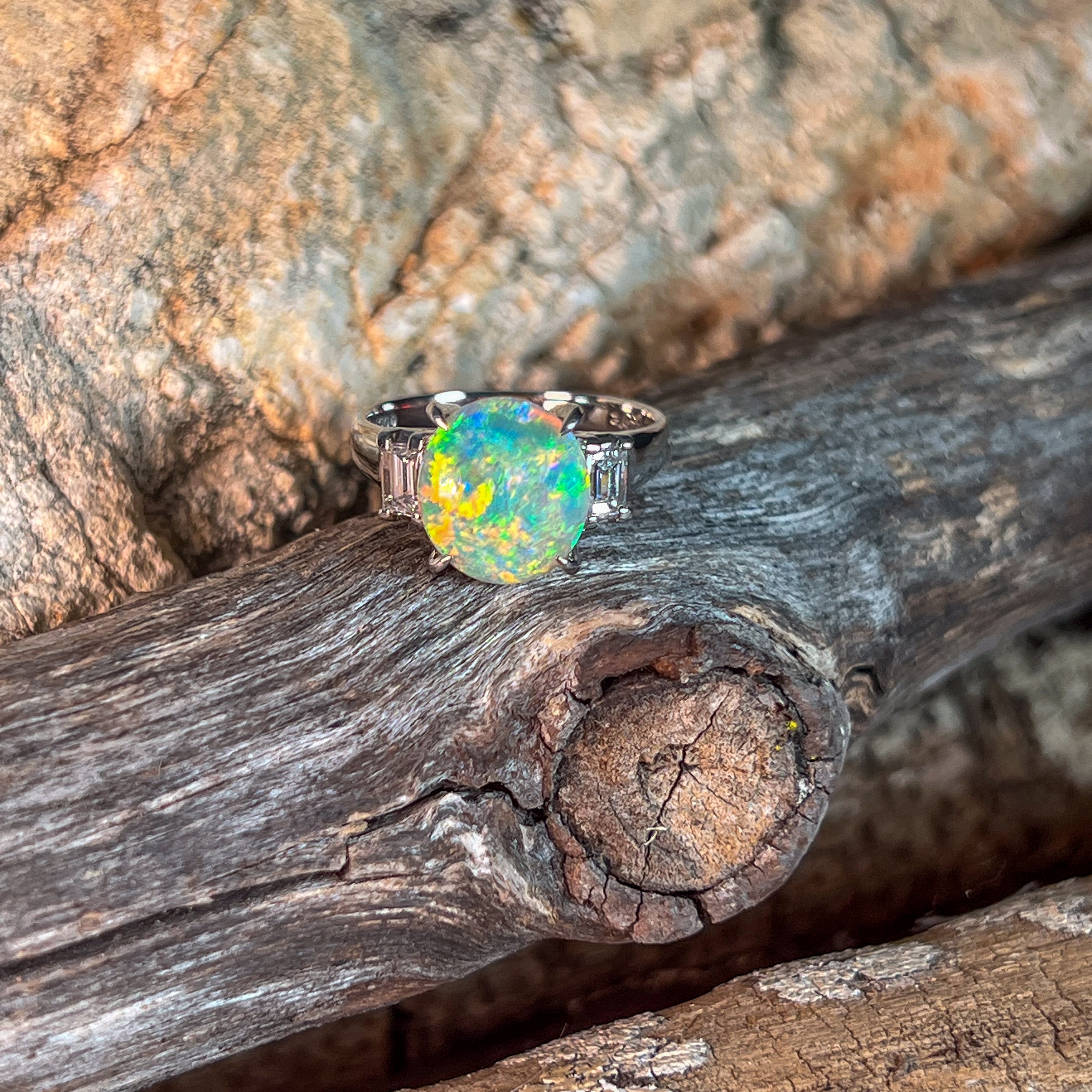 One Platinum Black Opal and Diamond Ring is an excellent example of a black opal ring. It can make a perfect family heirloom, or an engagement ring.