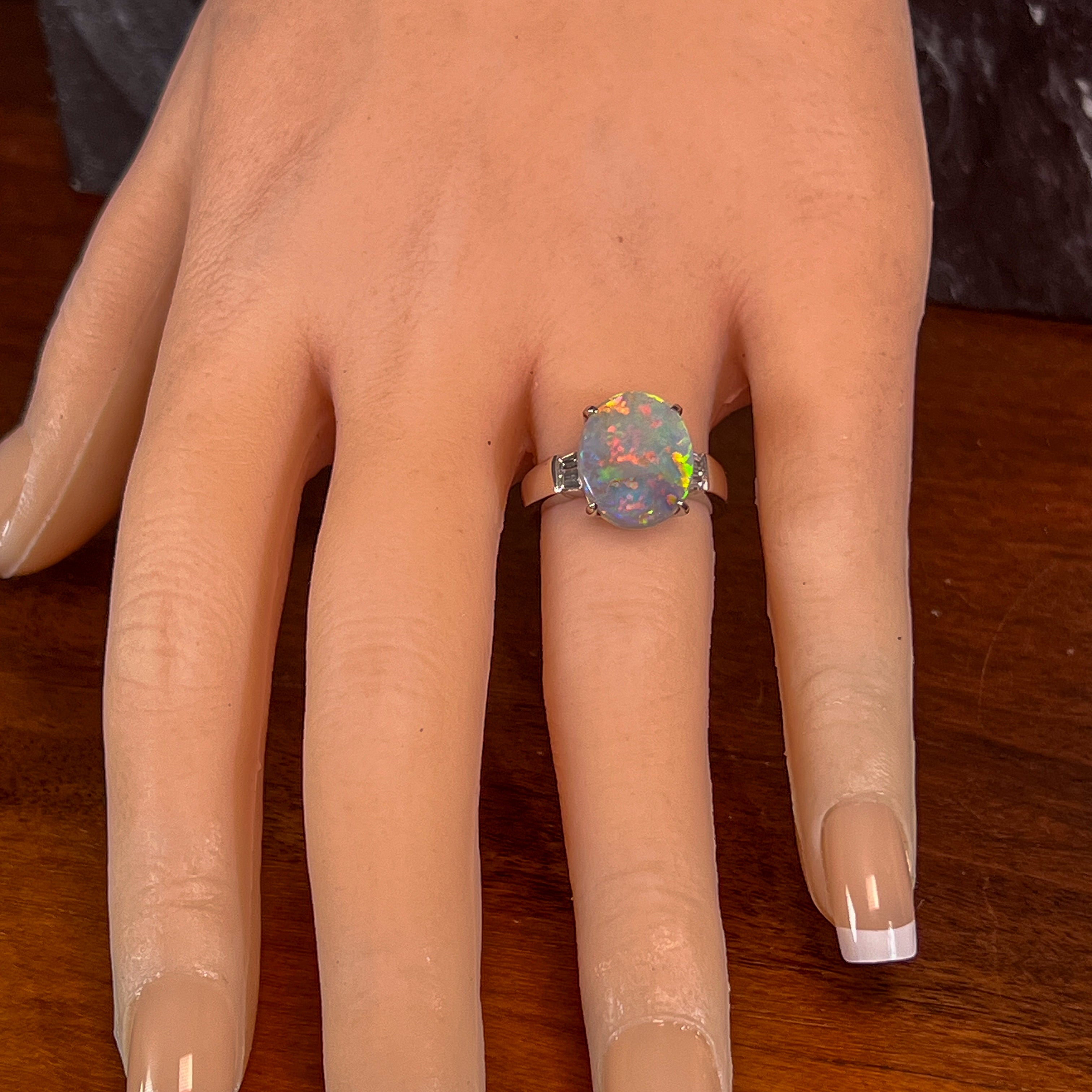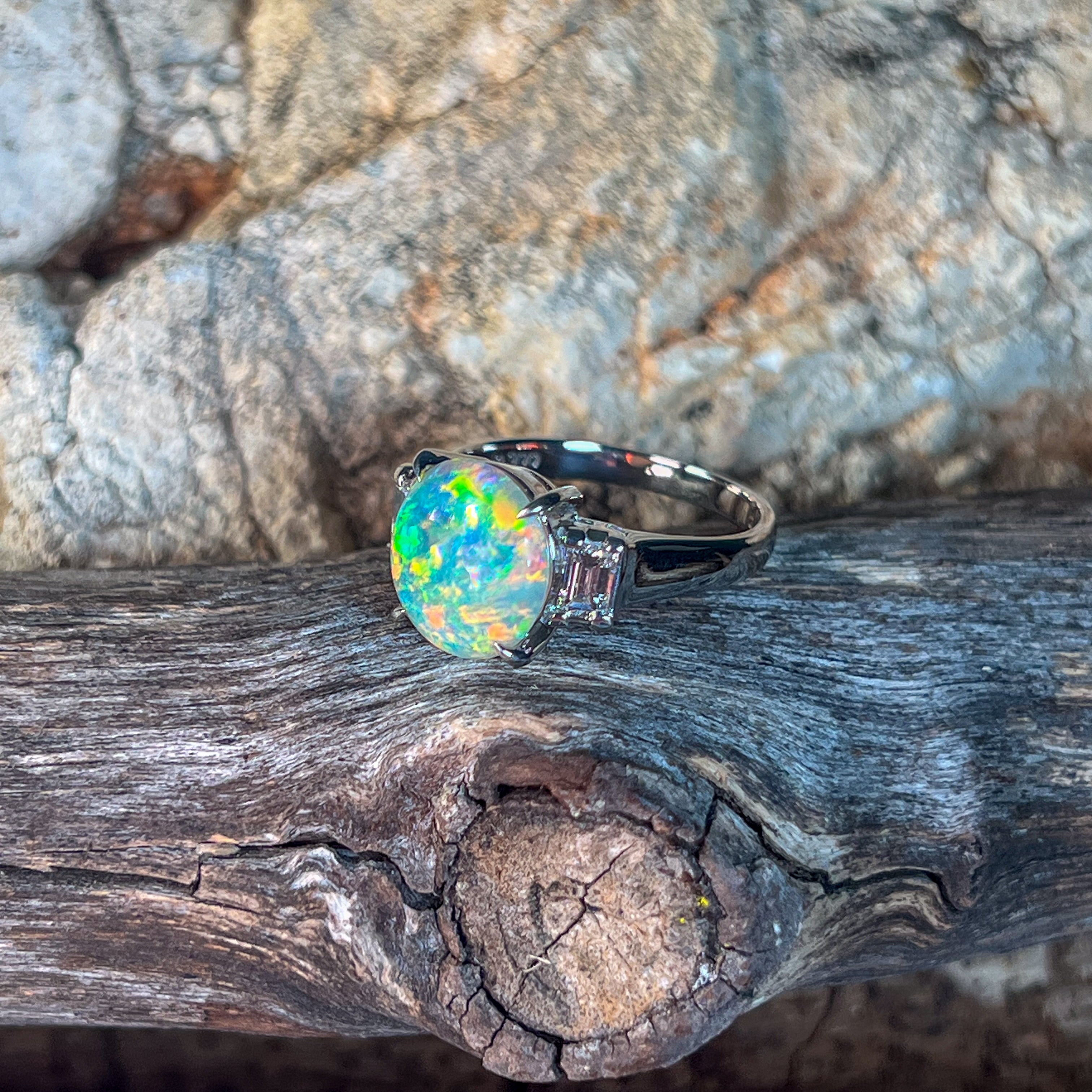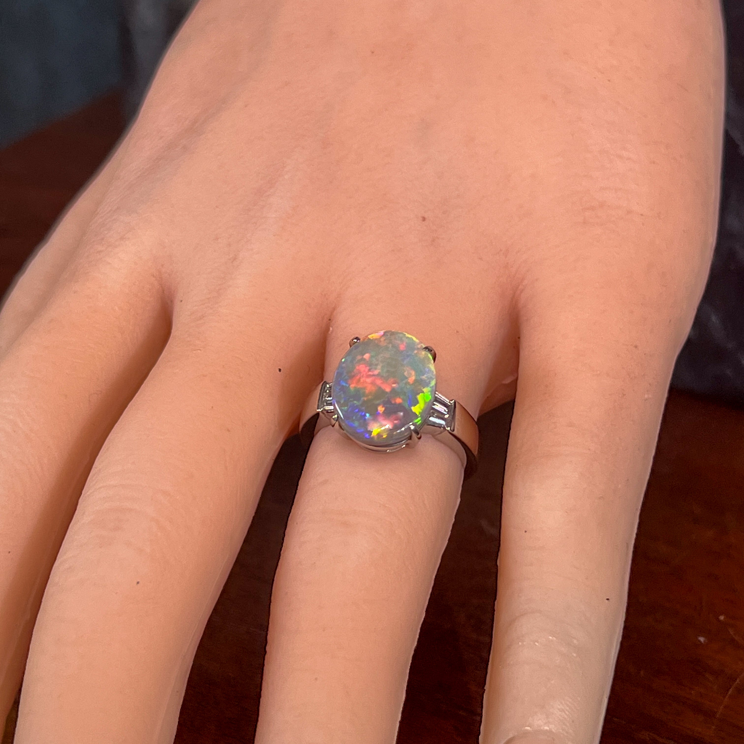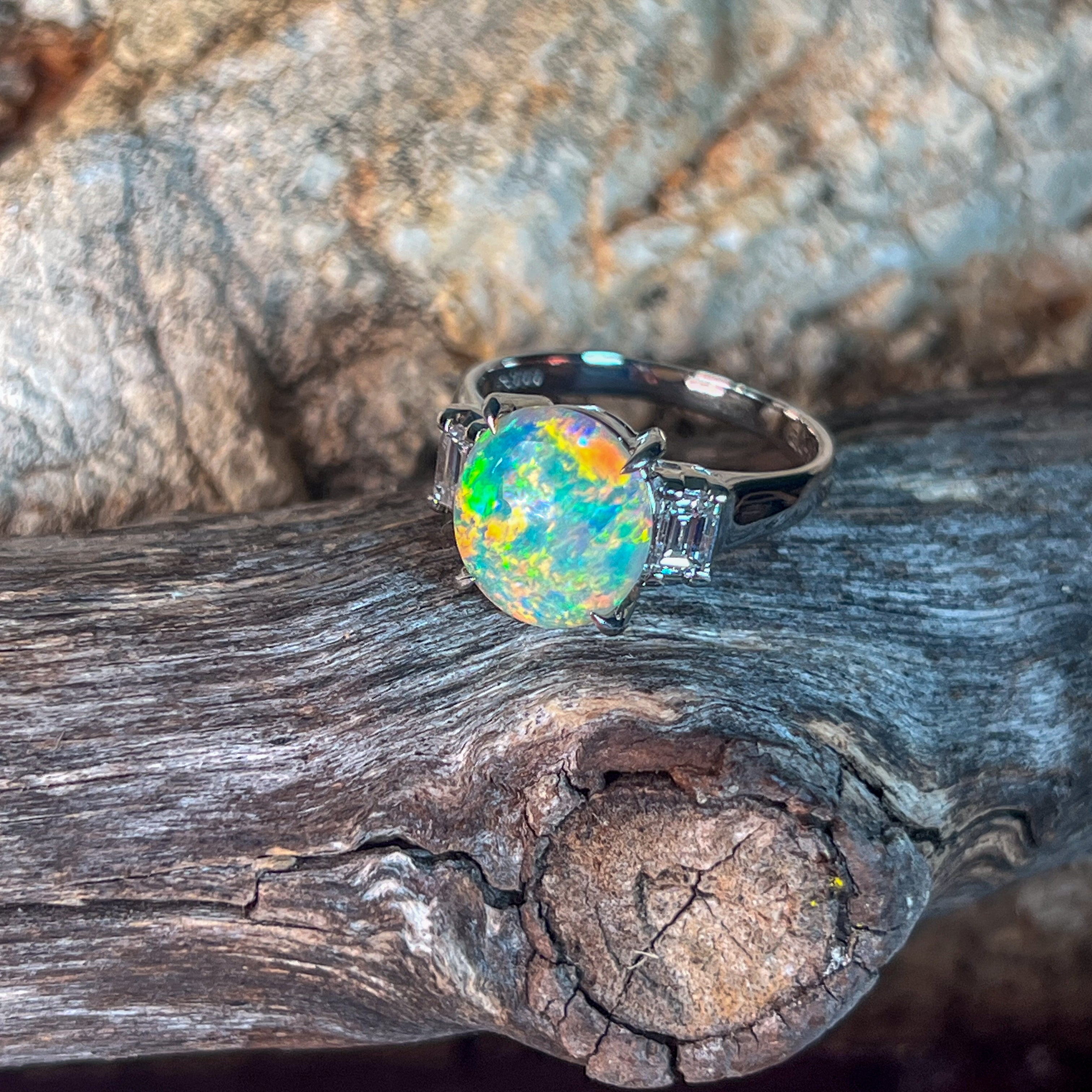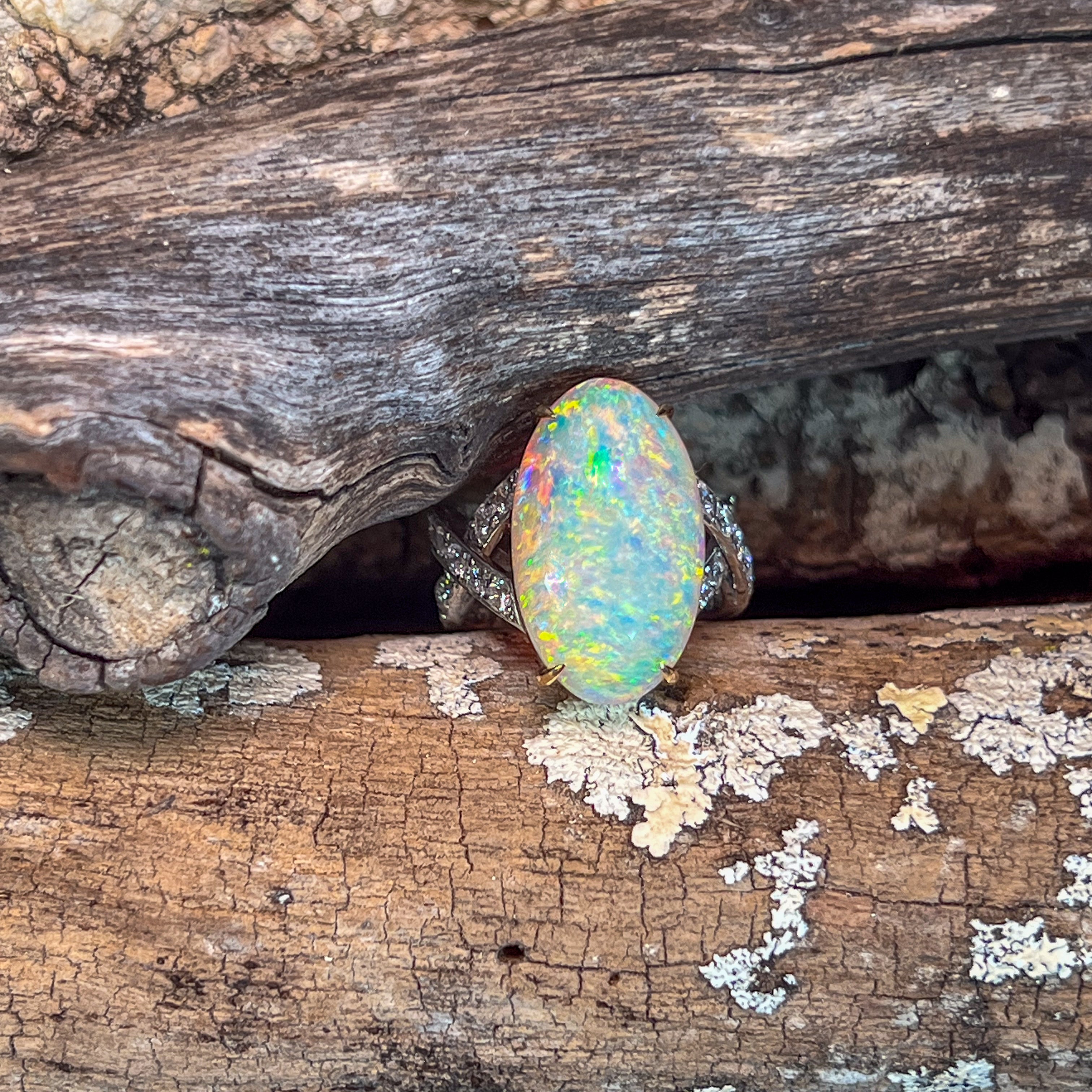One Platinum Black Opal and Diamond Ring is an excellent example of a black opal ring. It can make a perfect family heirloom, or an engagement ring.