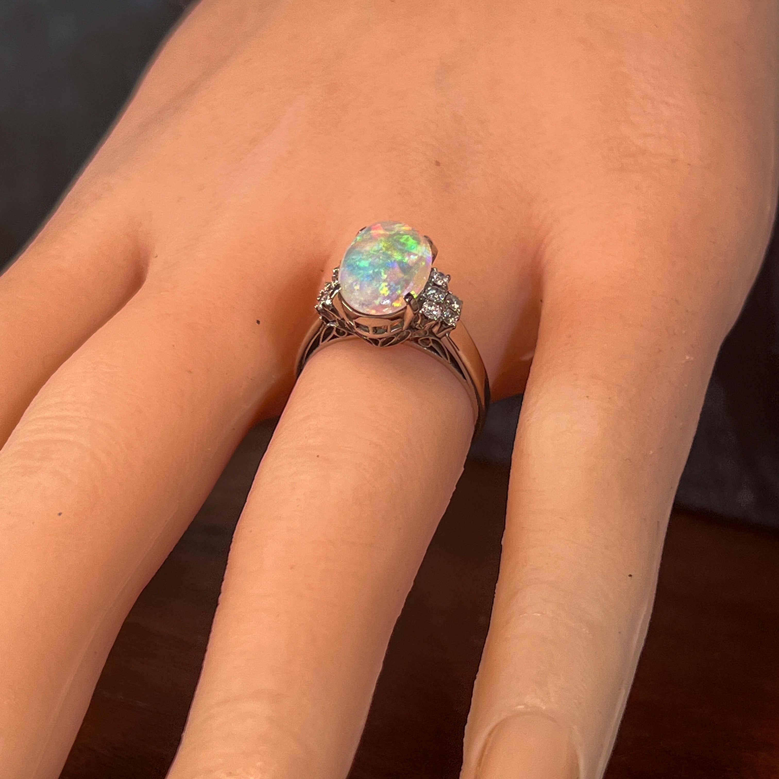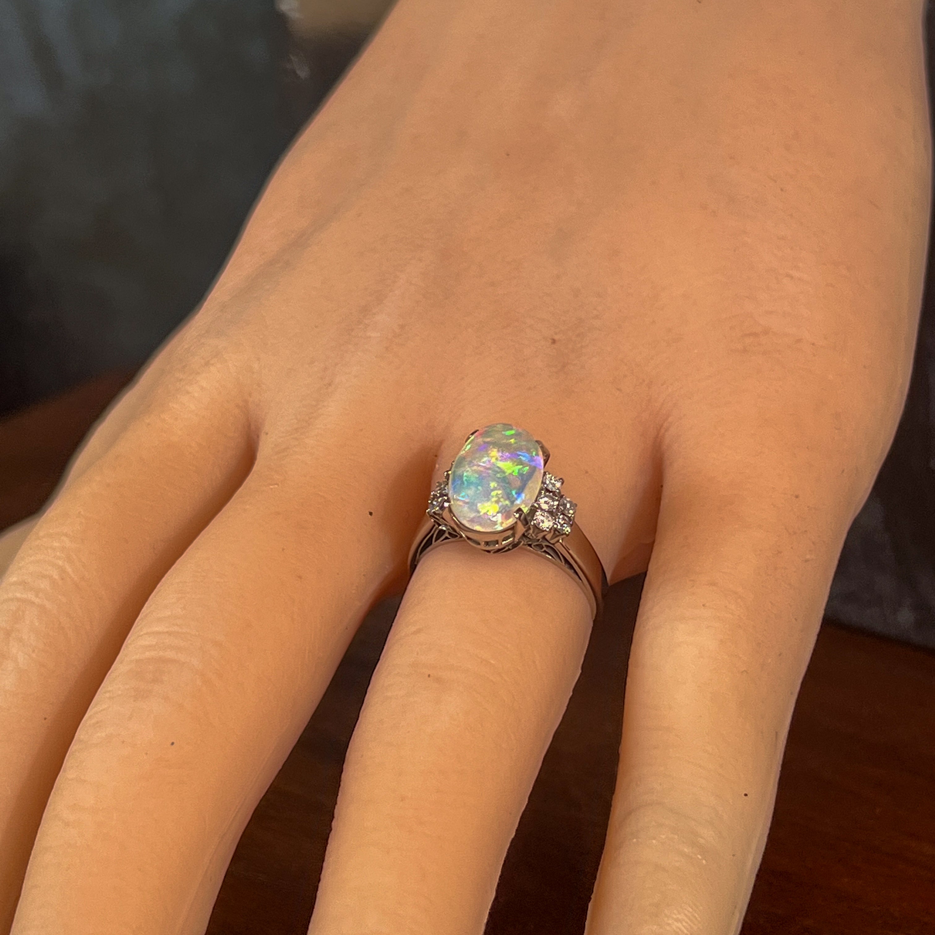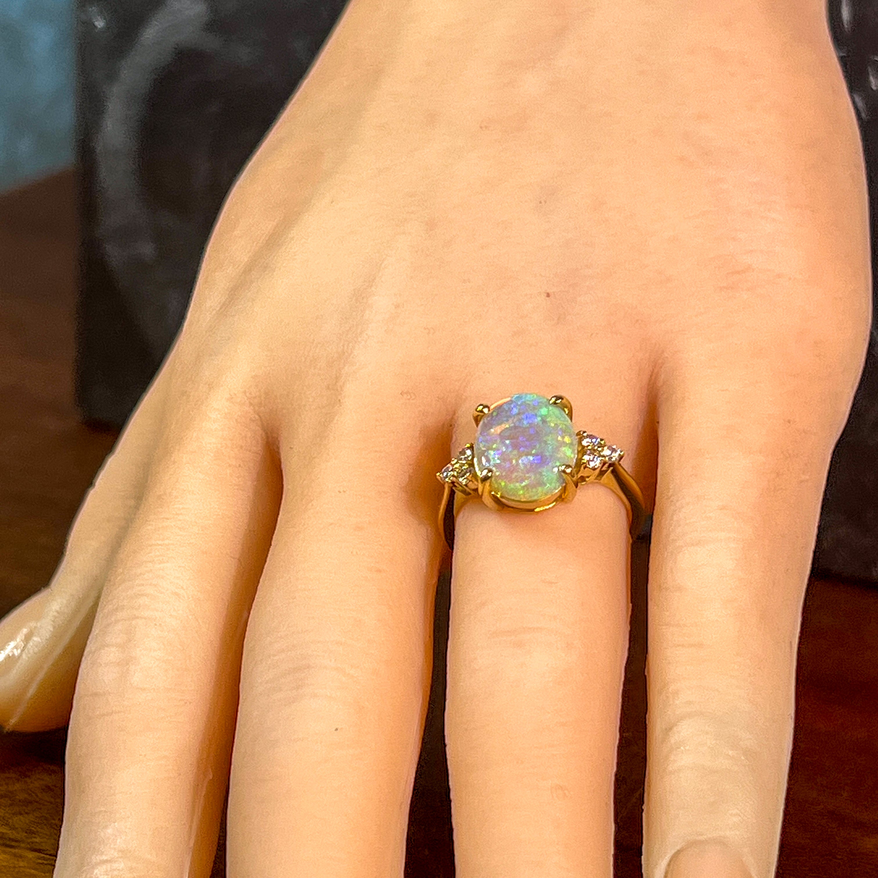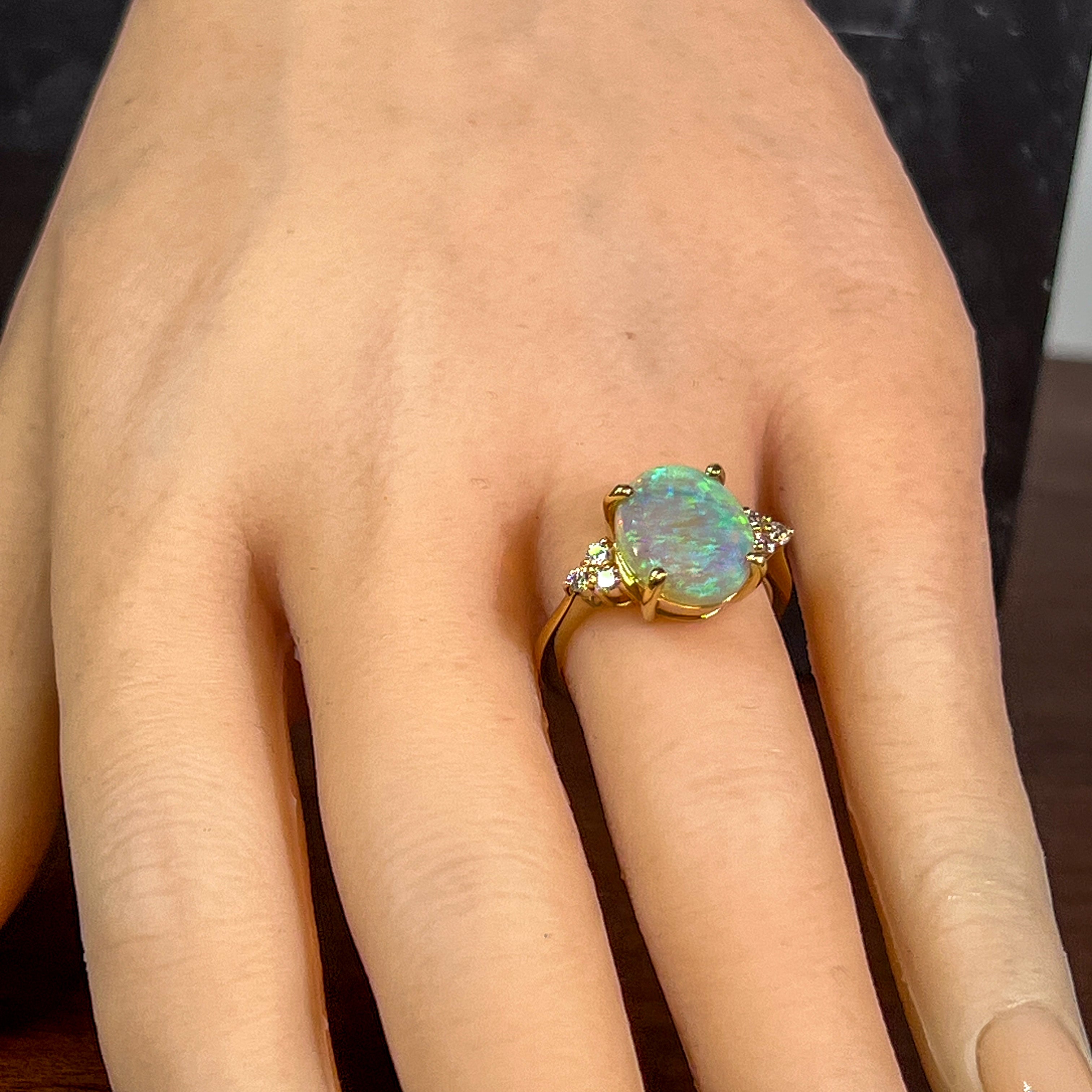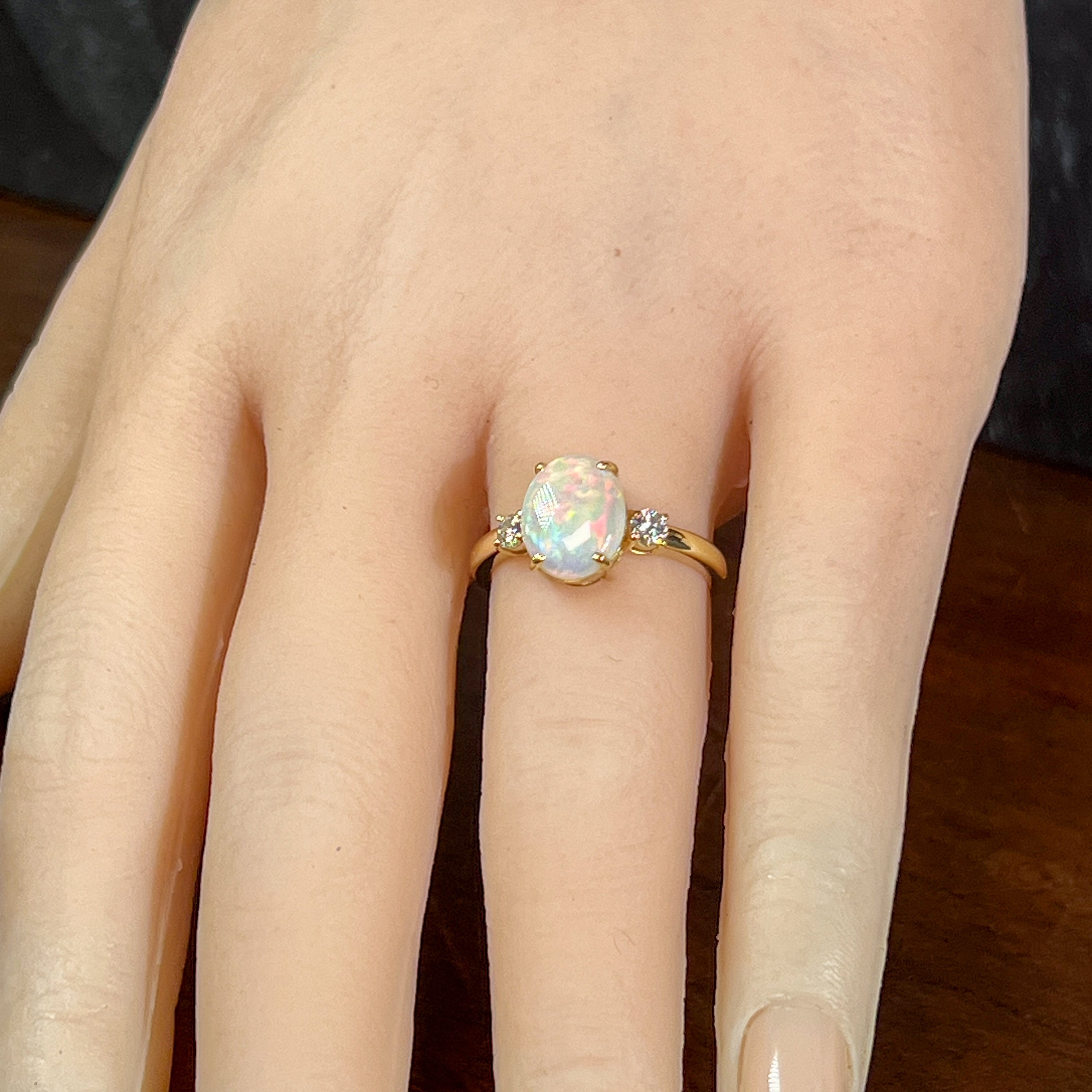 Diamond and opal rings often go well together, not only because they look good but also because diamond balances the opal stones' softness.