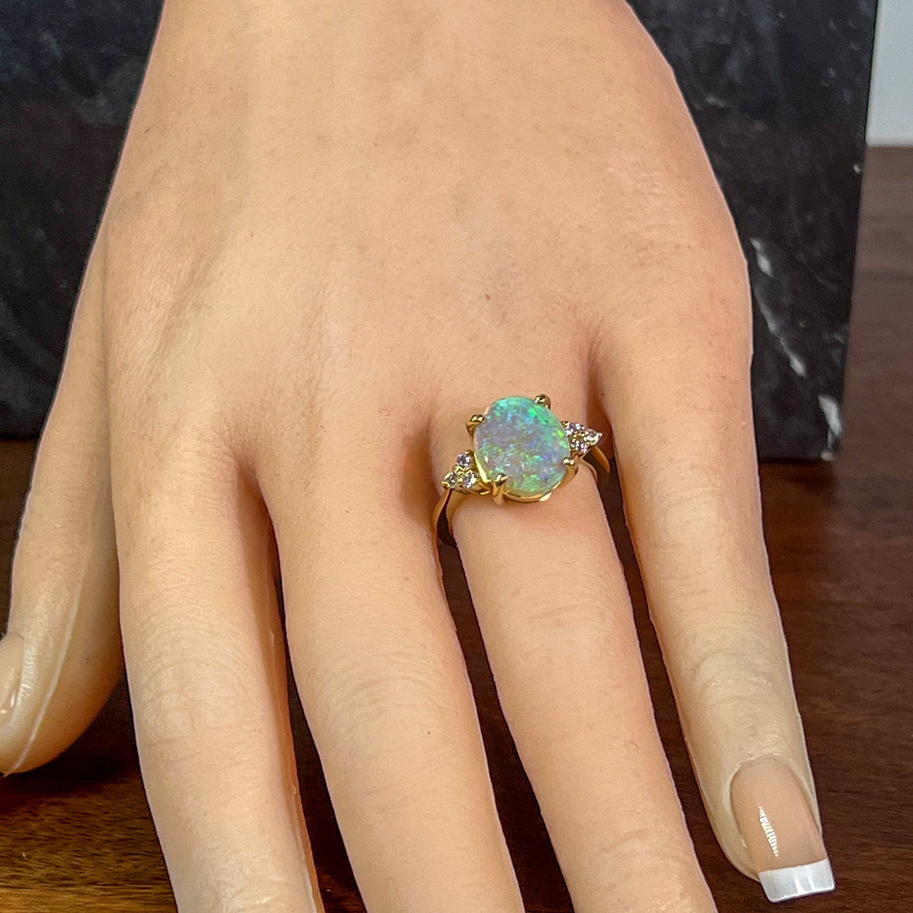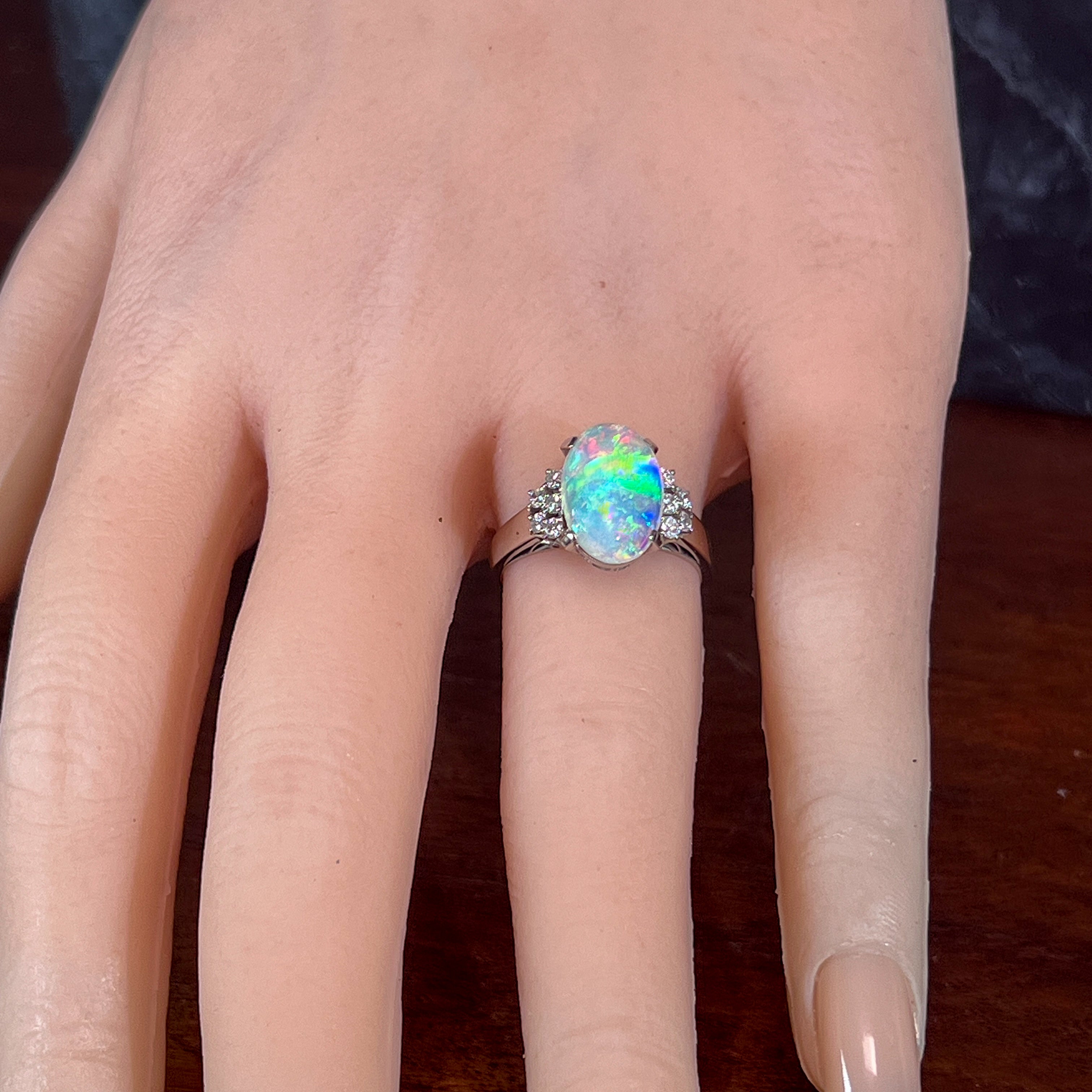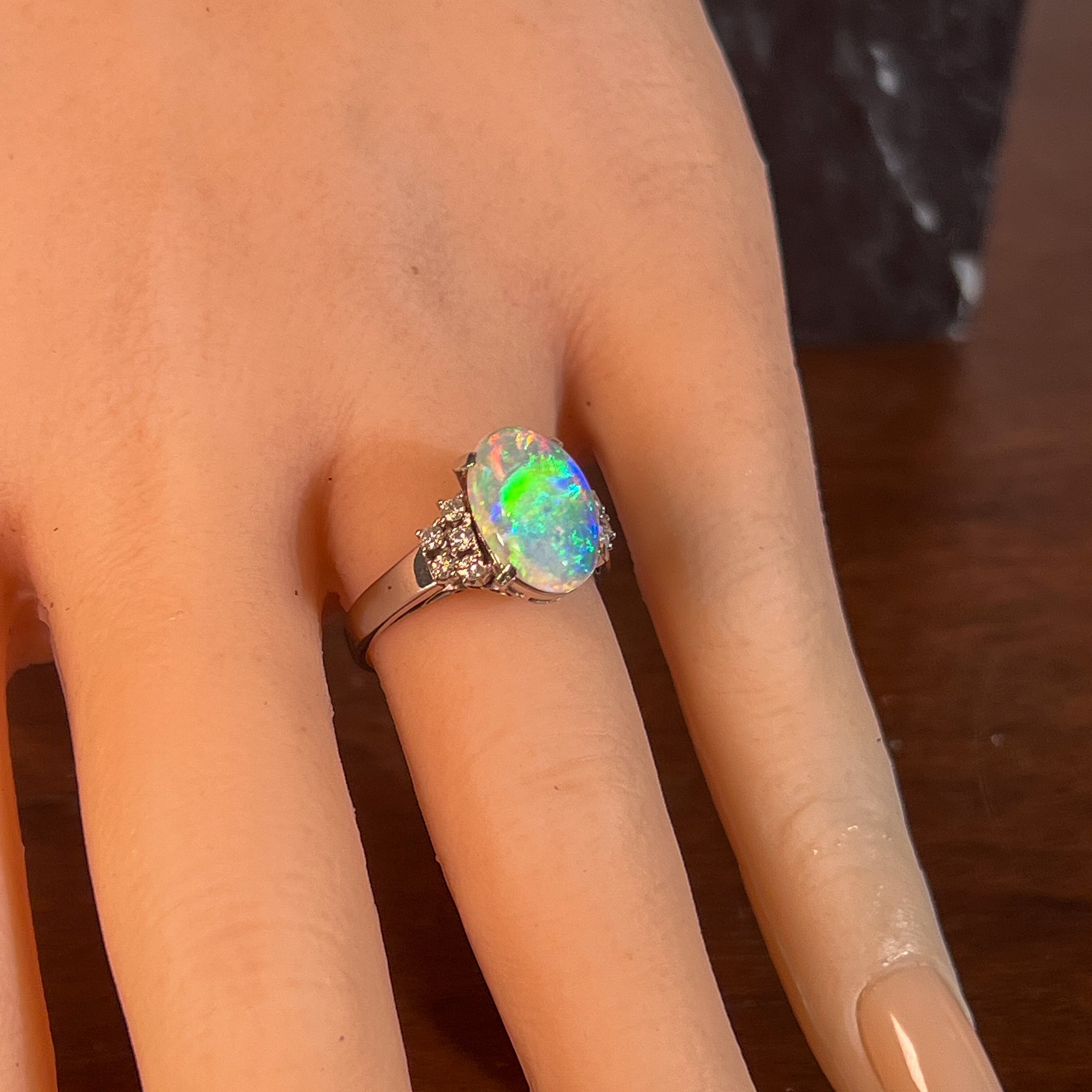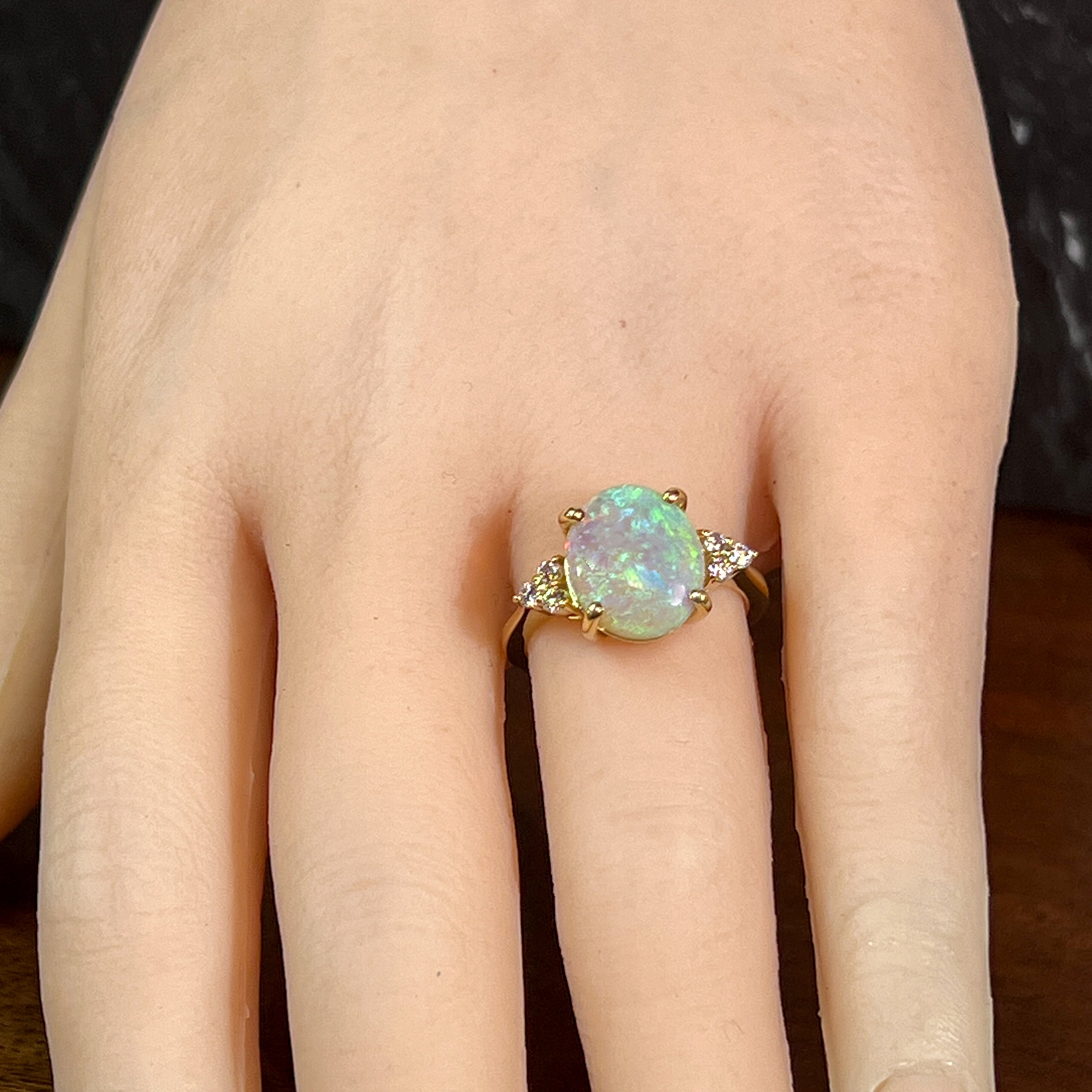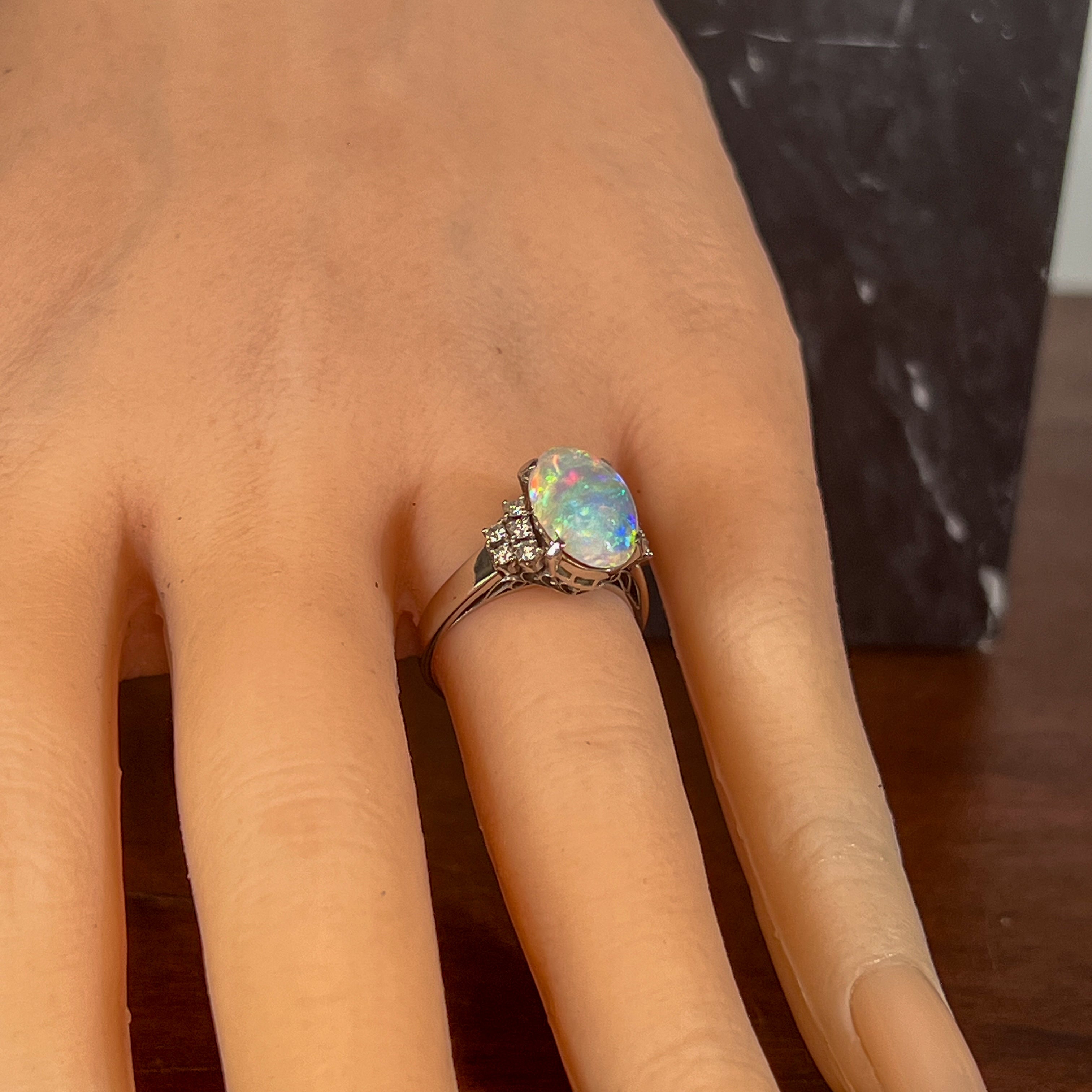 Diamond and opal rings often go well together, not only because they look good but also because diamond balances the opal stones' softness.