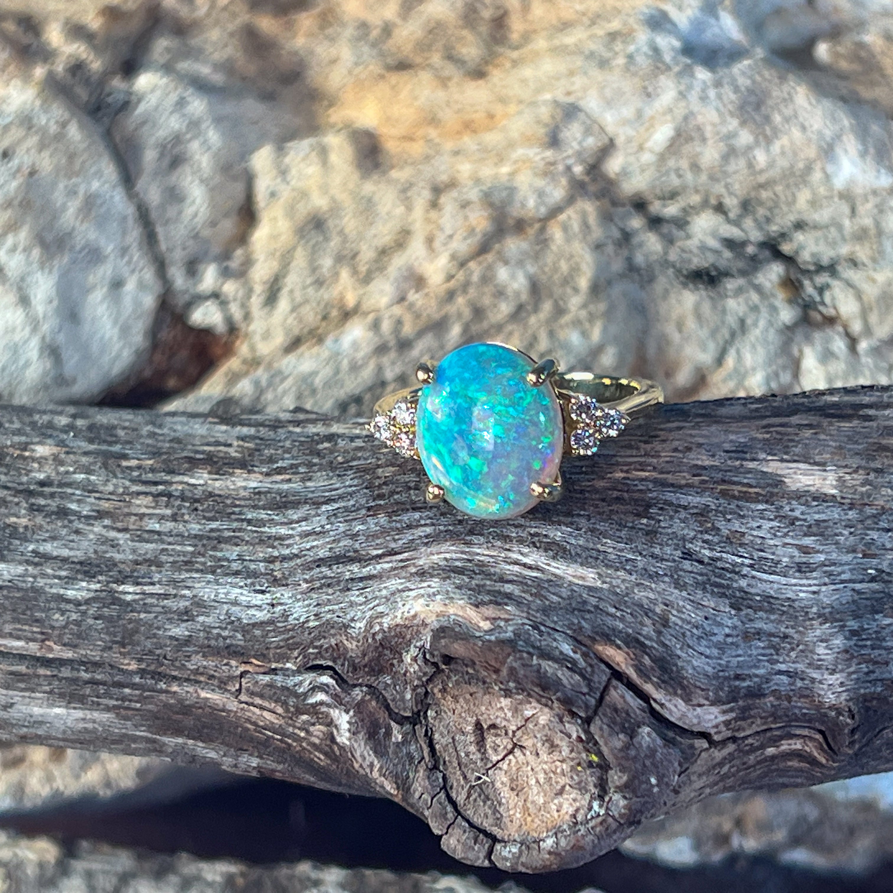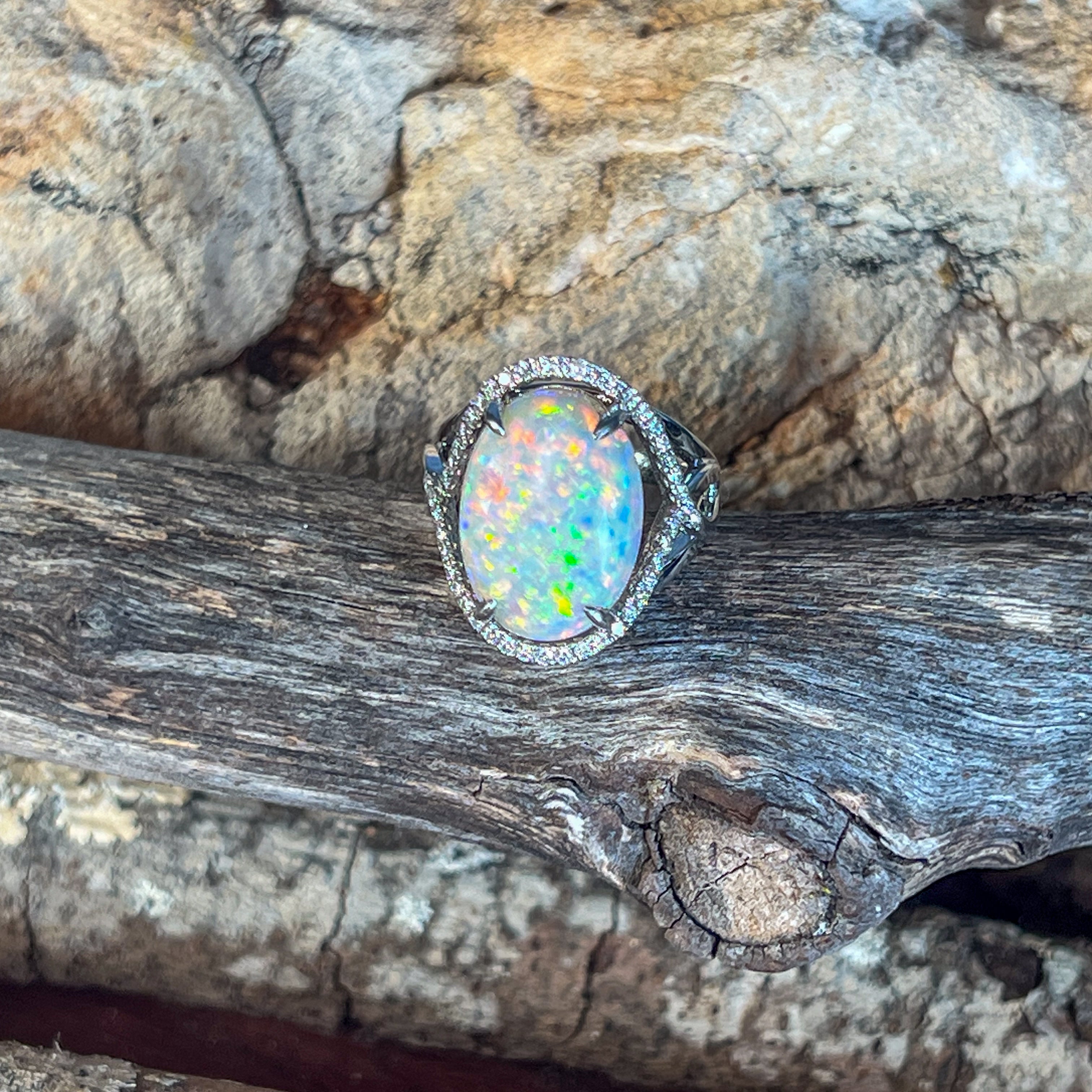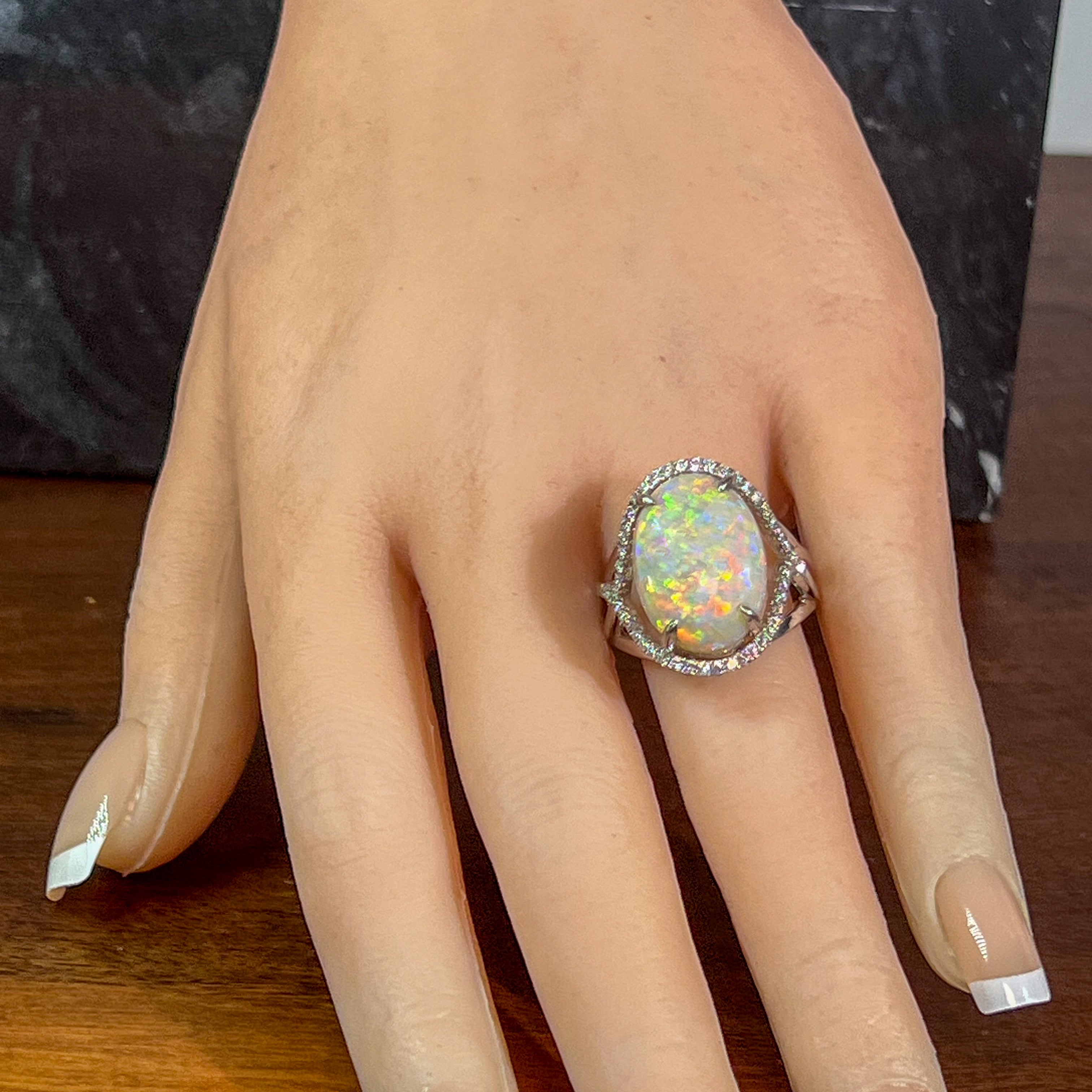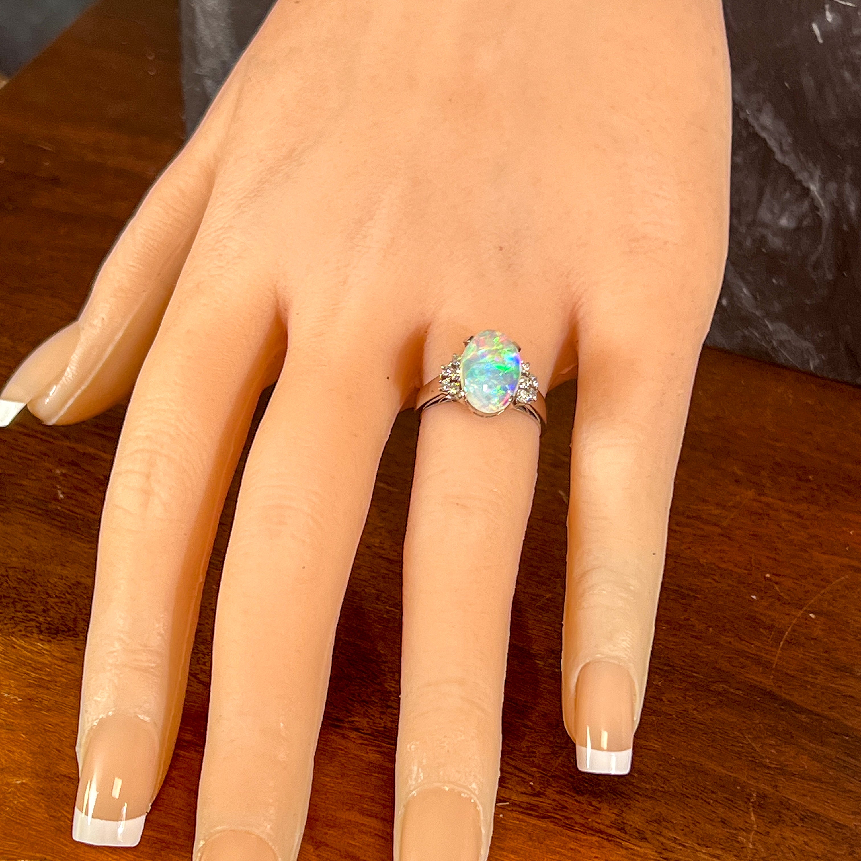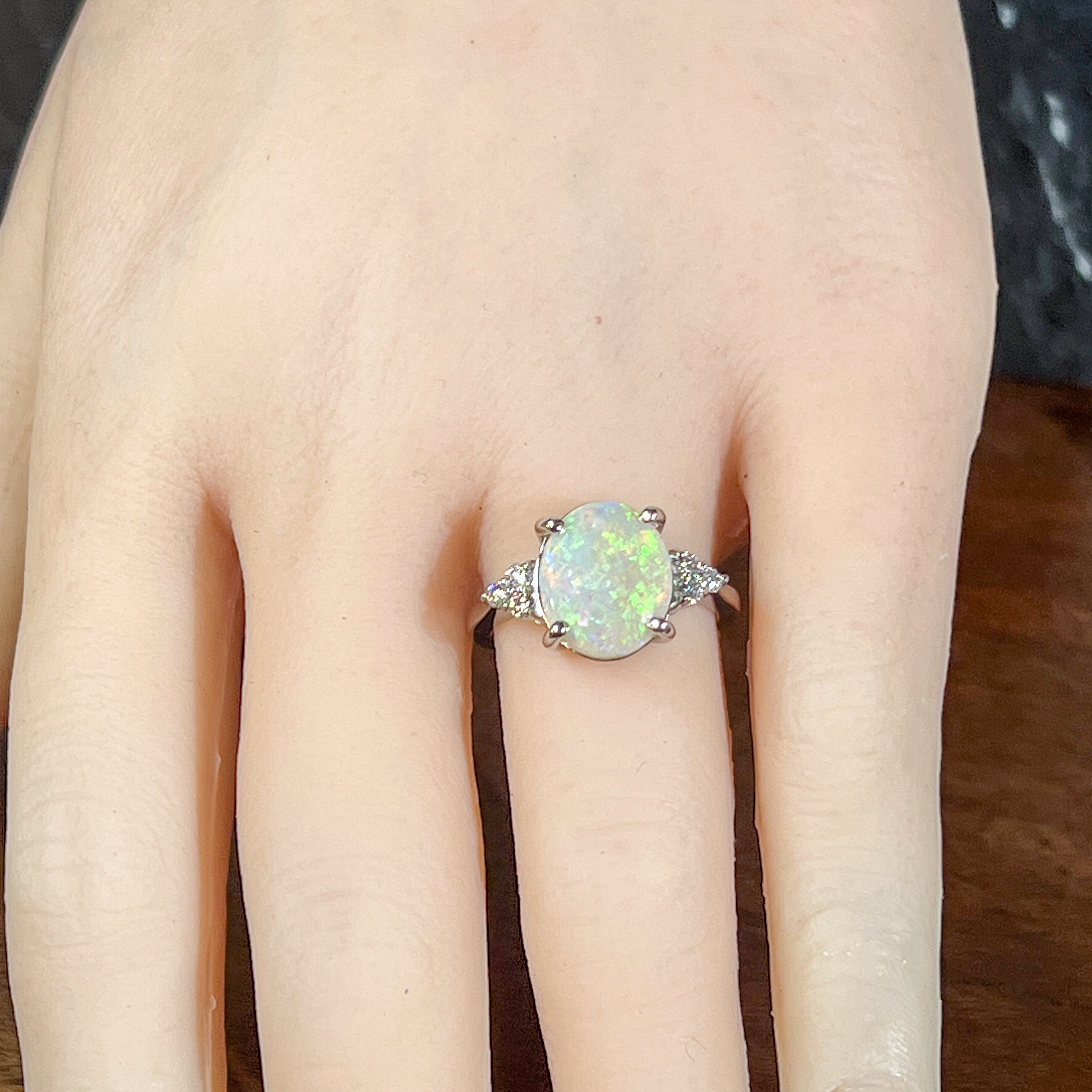 Diamond and opal rings often go well together, not only because they look good but also because diamond balances the opal stones' softness.
