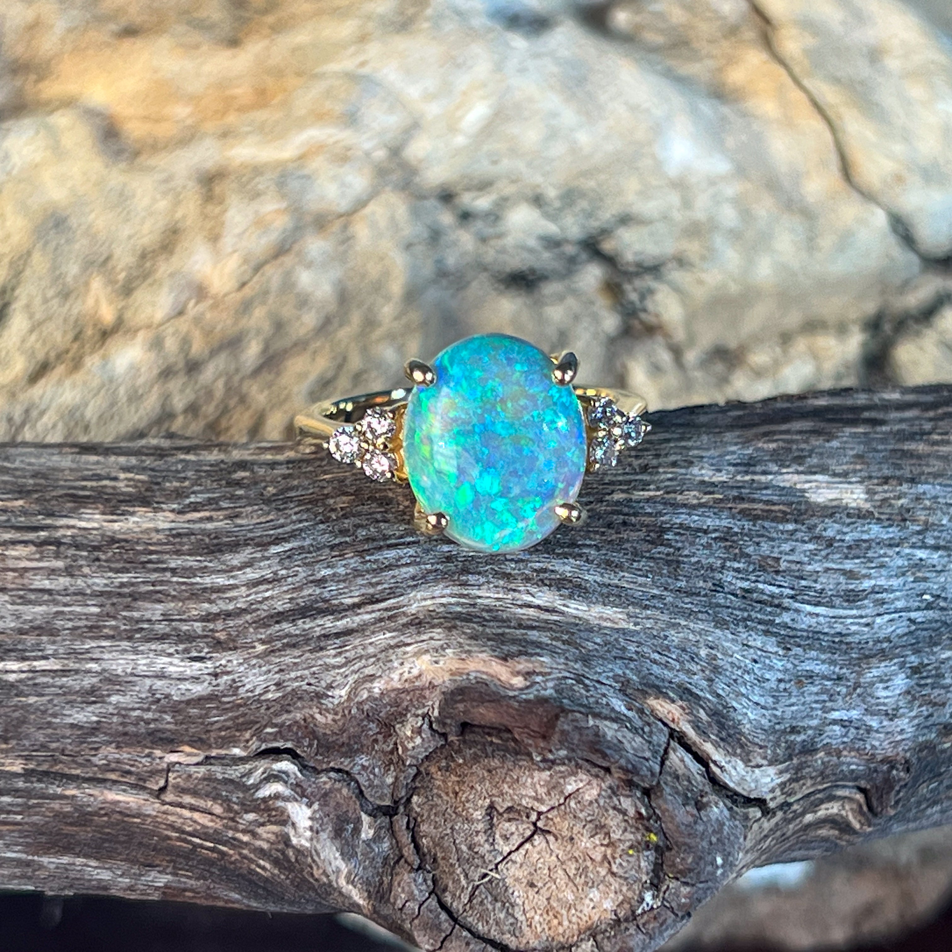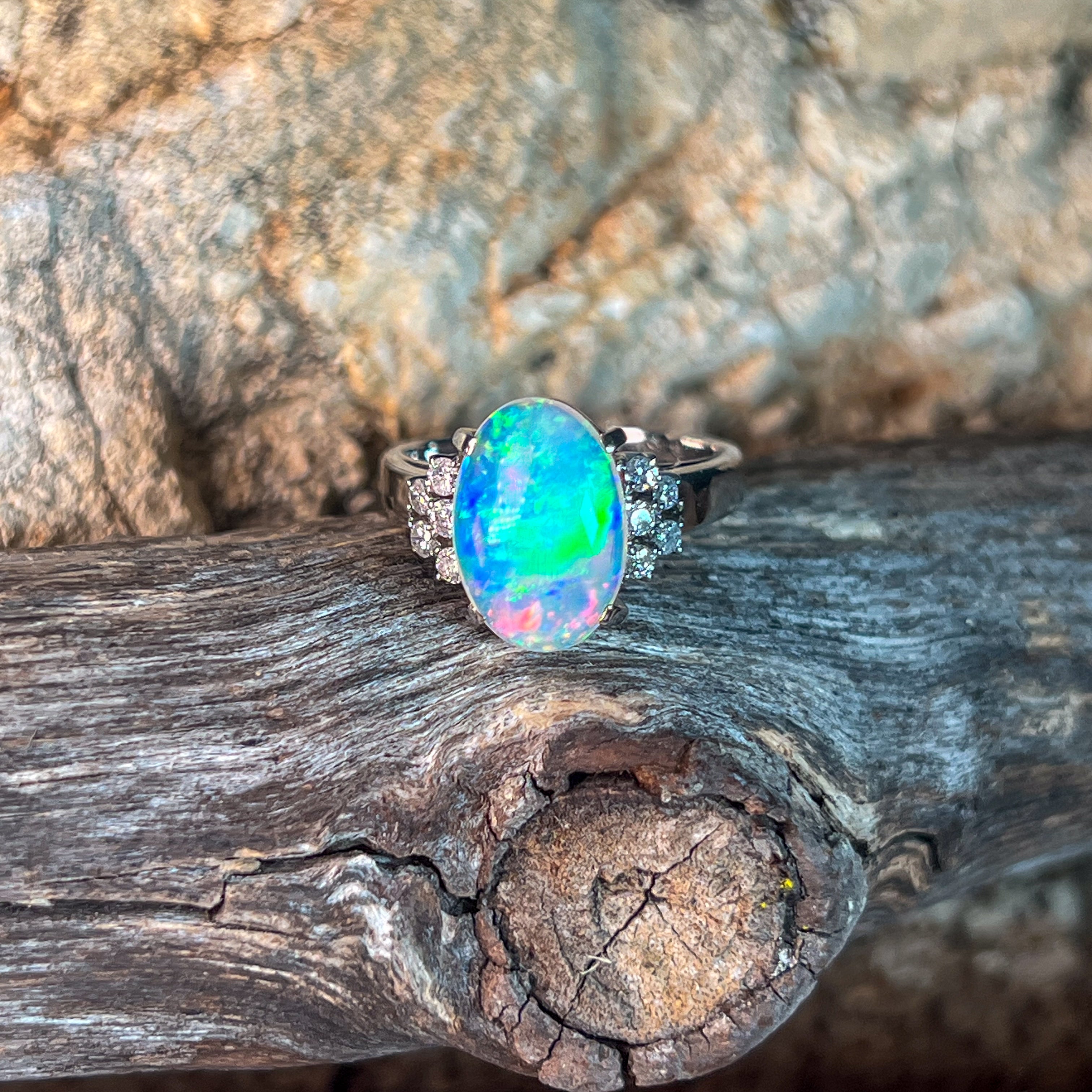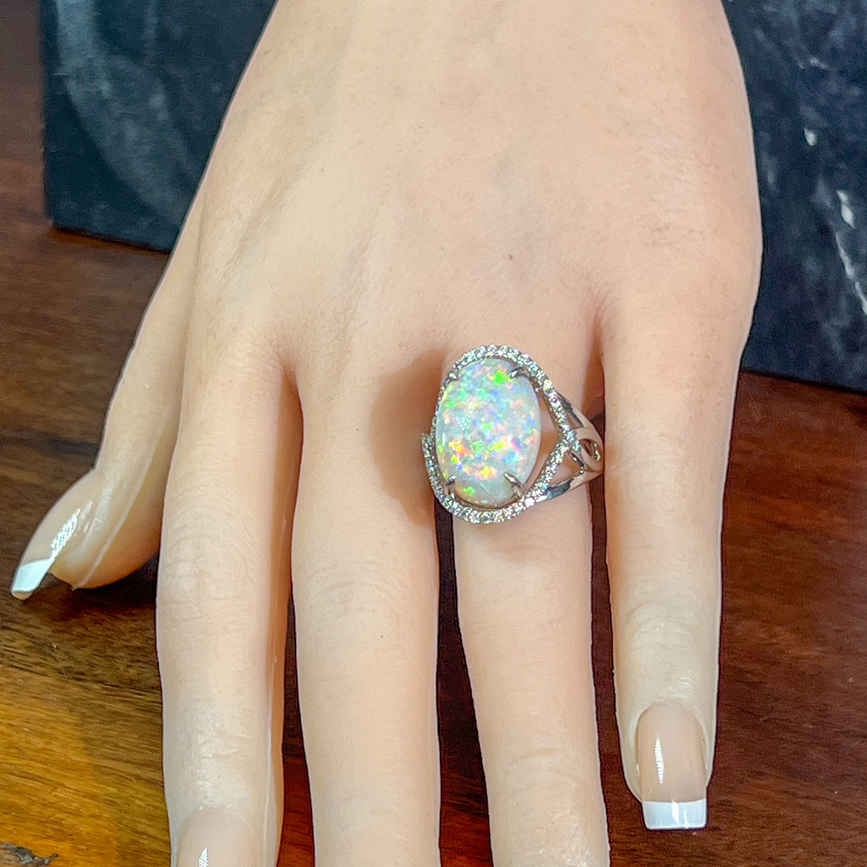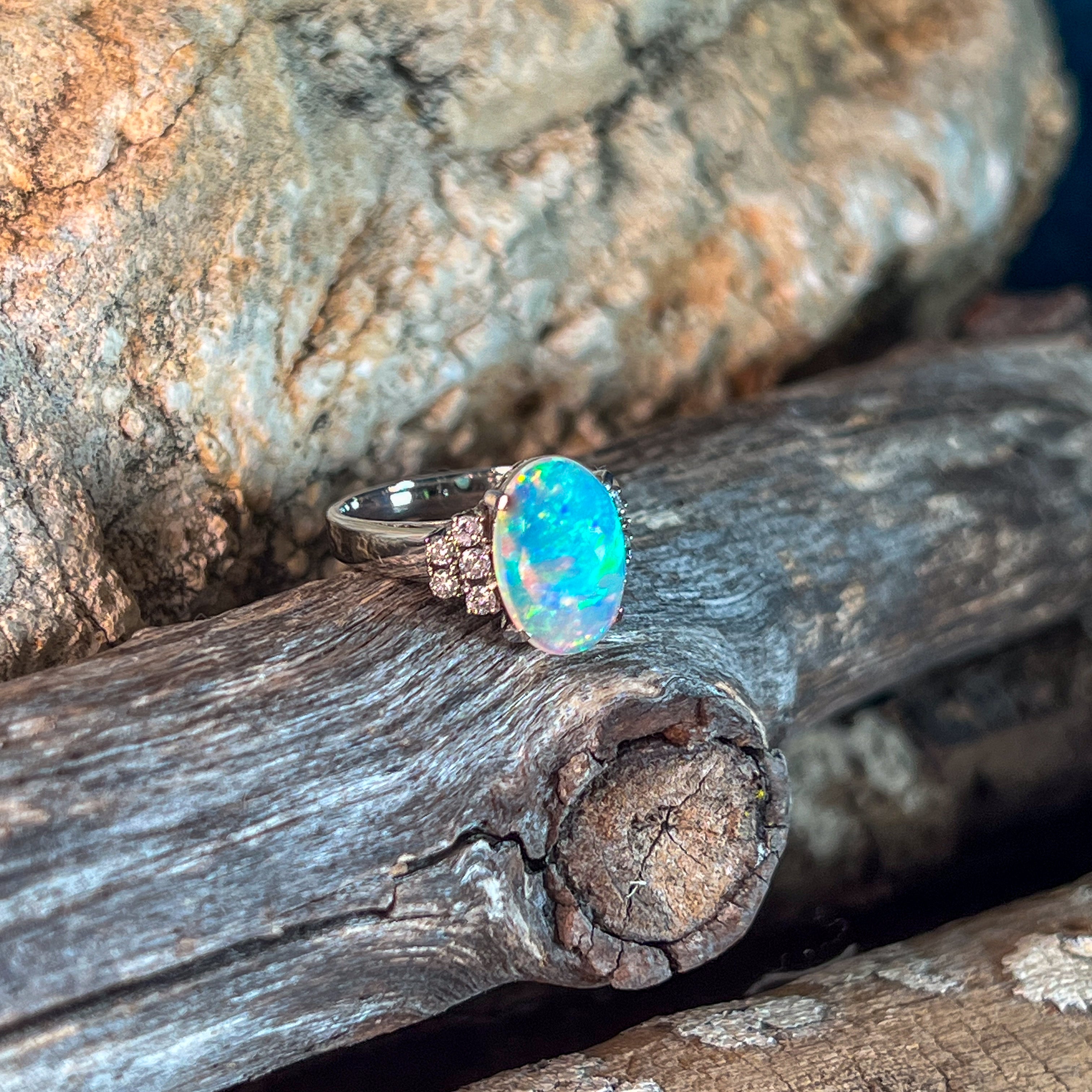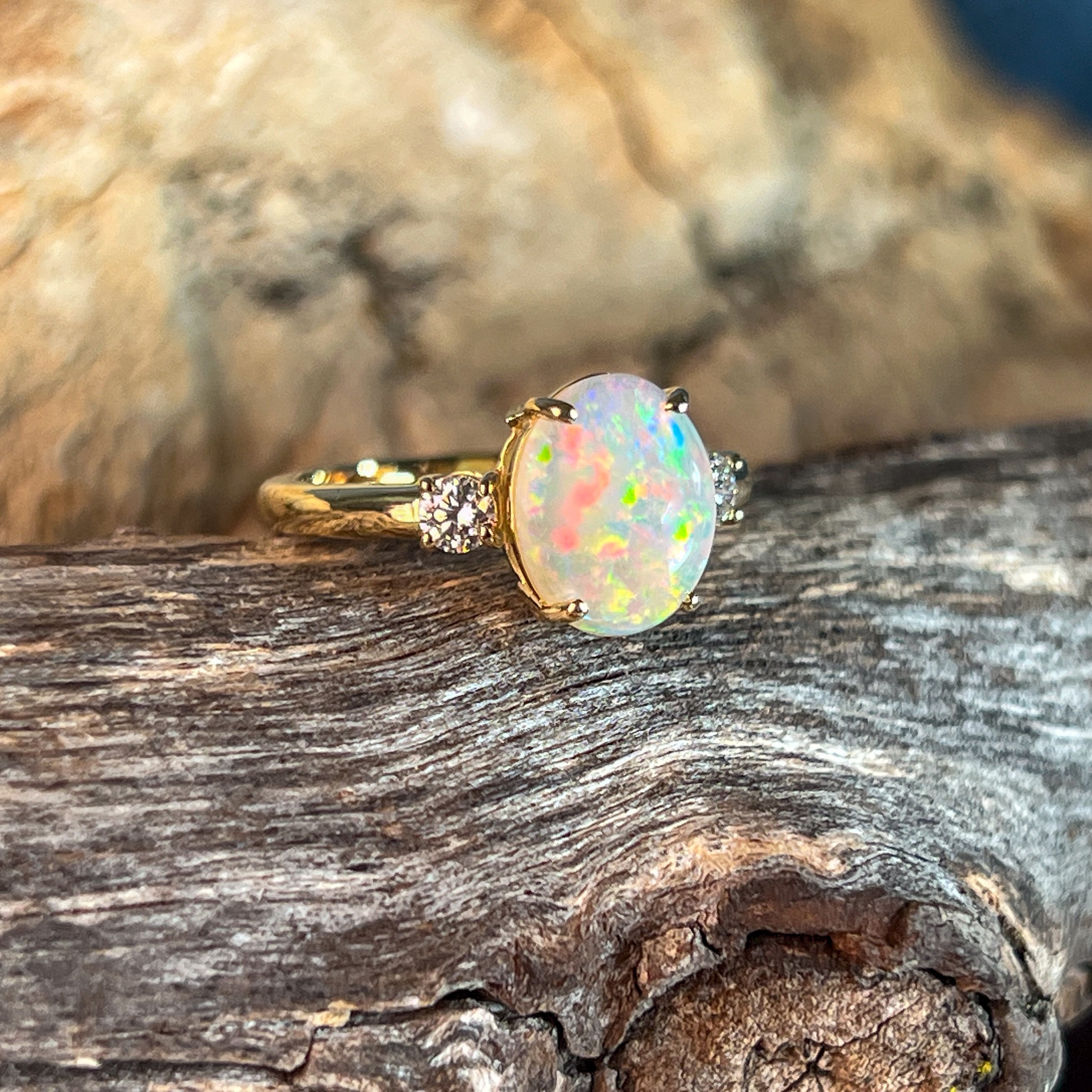 Diamond and opal rings often go well together, not only because they look good but also because diamond balances the opal stones' softness.