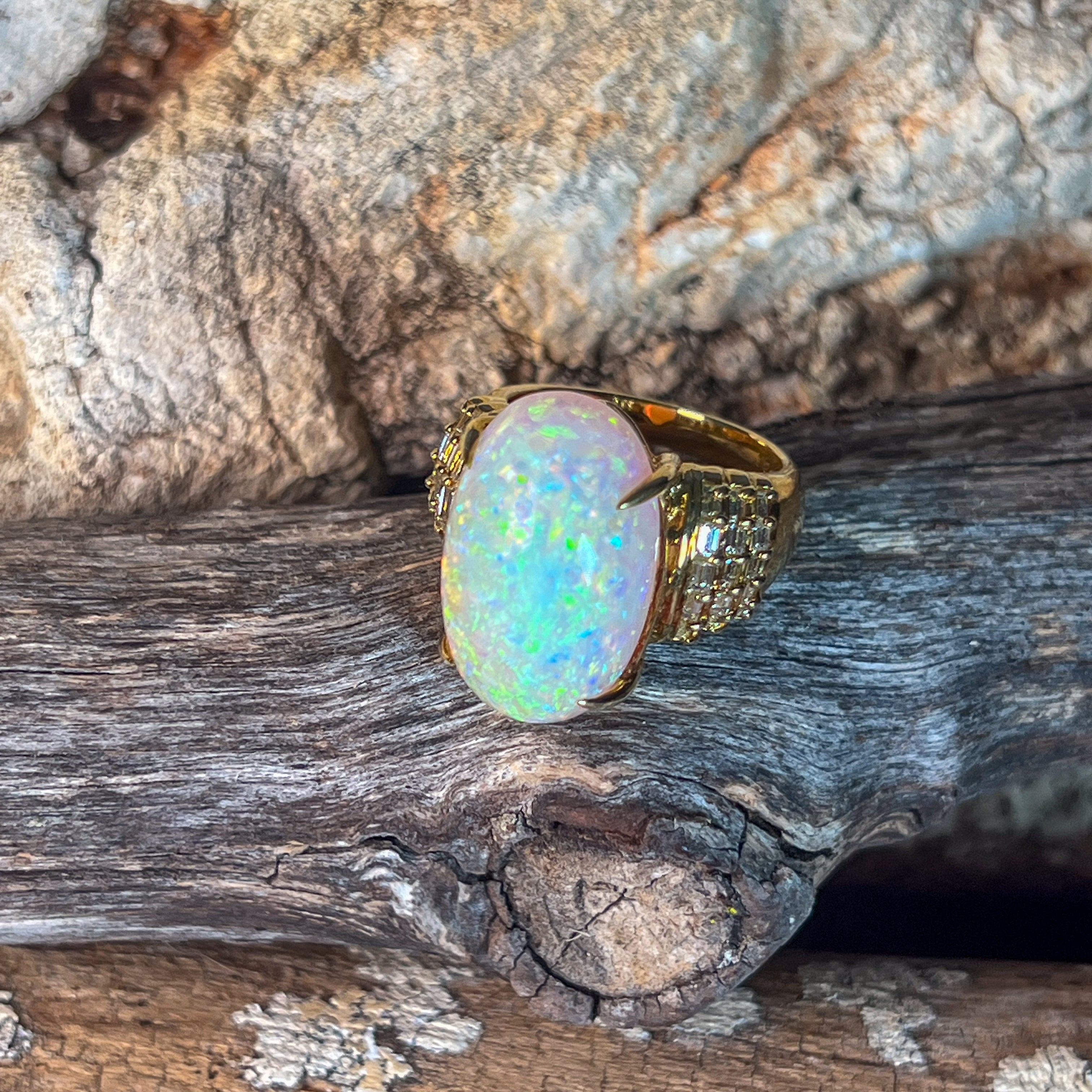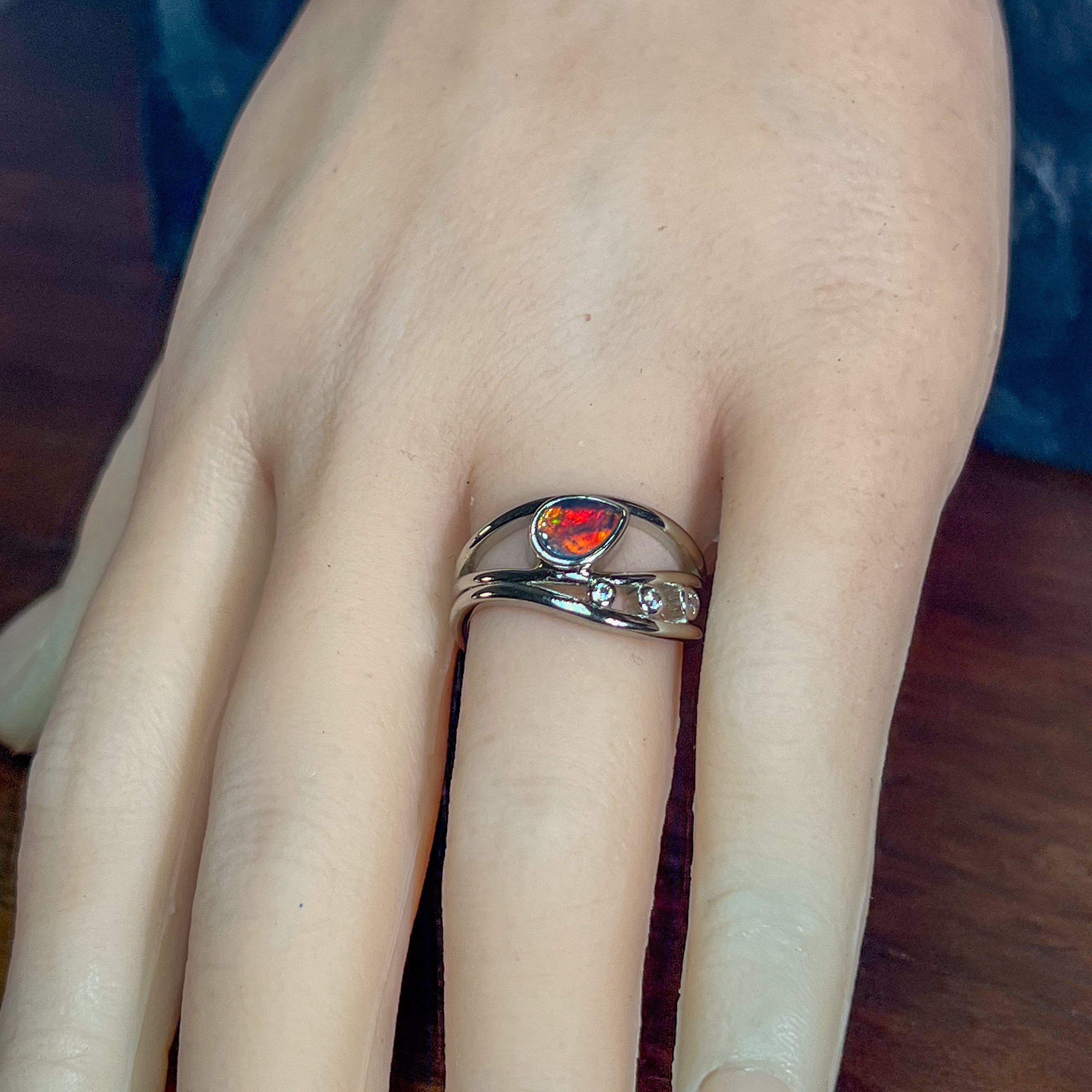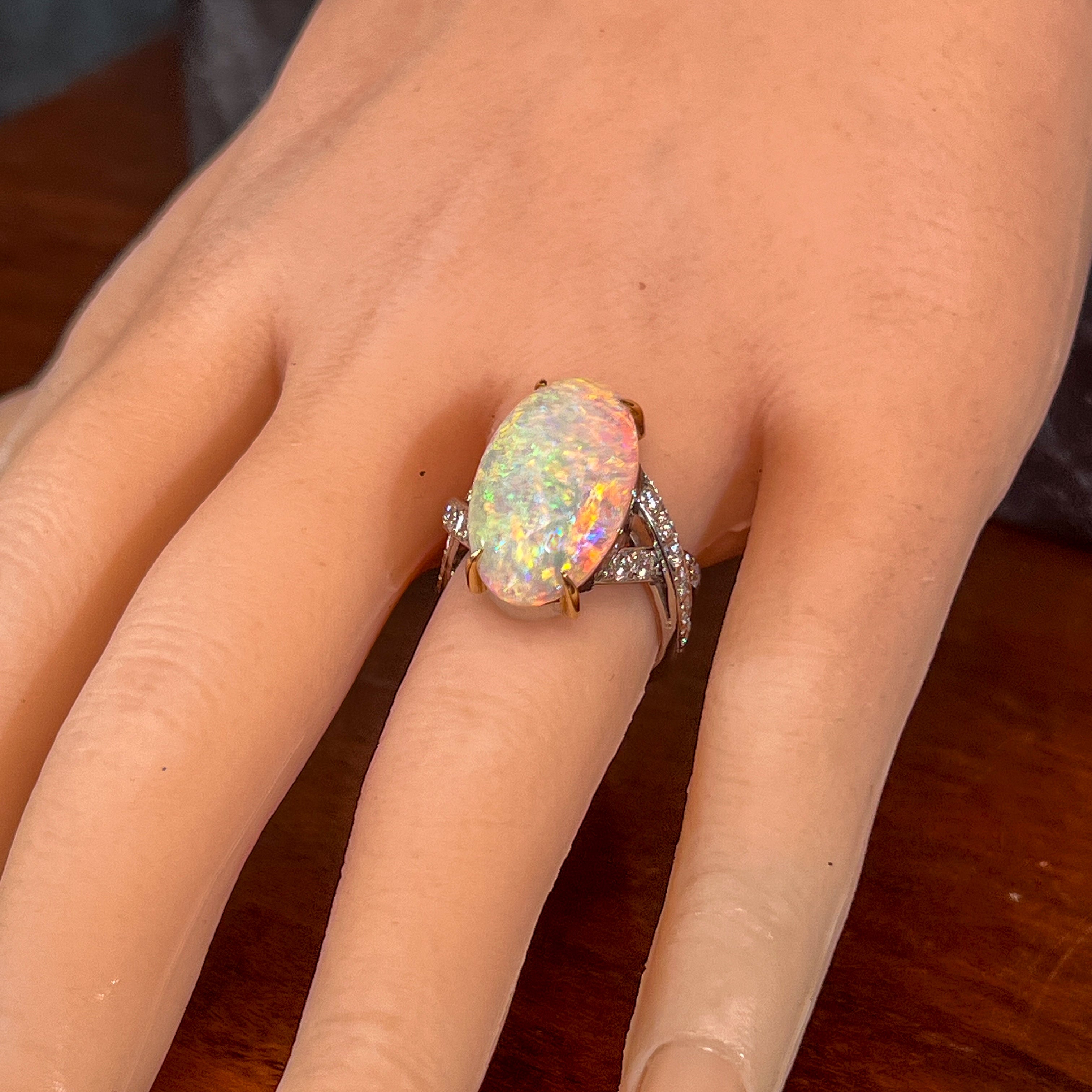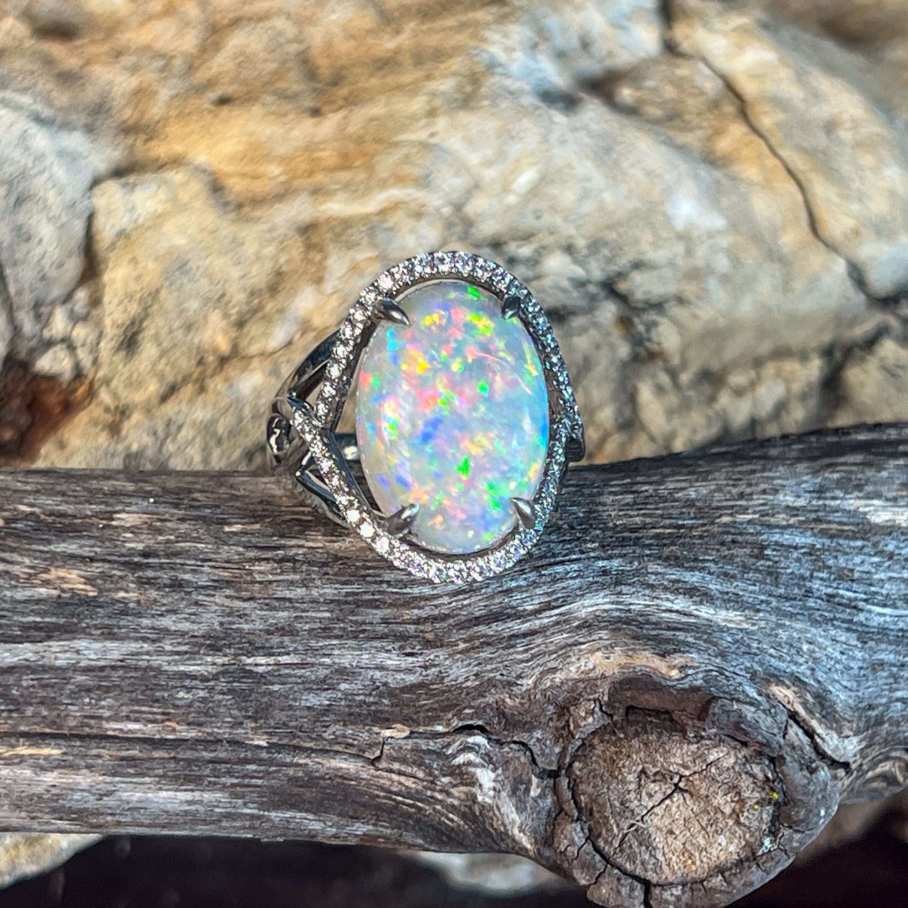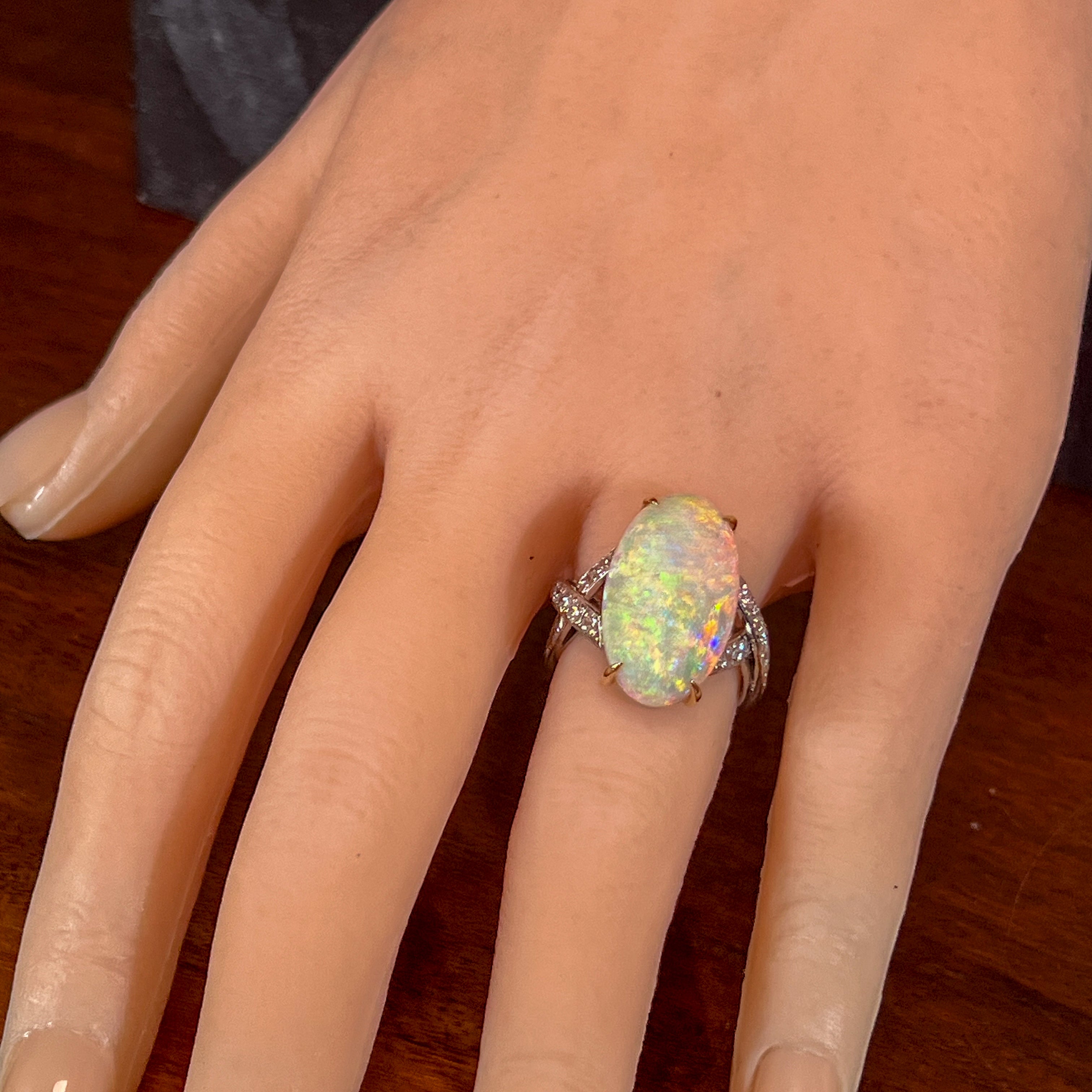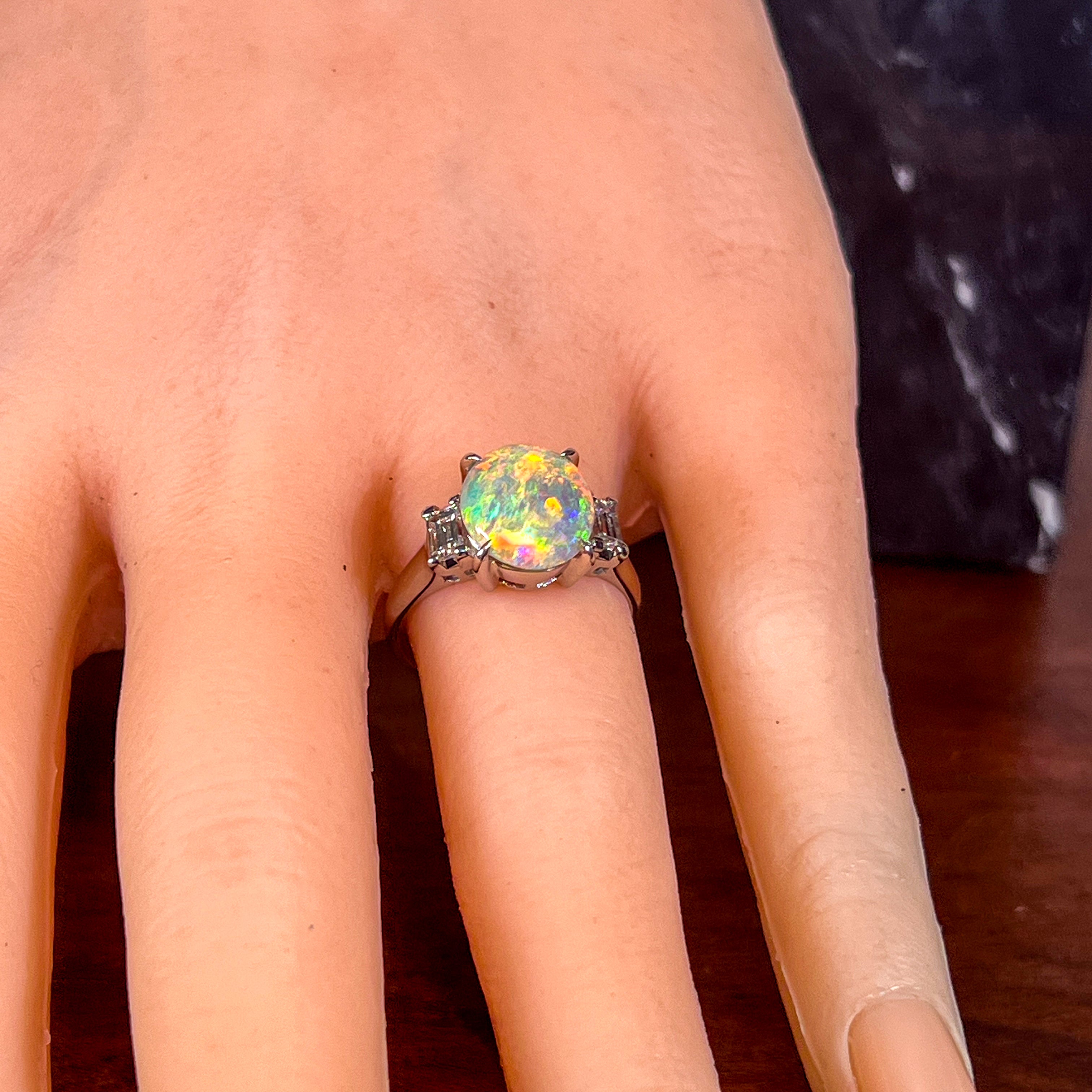 Diamond and opal rings often go well together, not only because they look good but also because diamond balances the opal stones' softness.