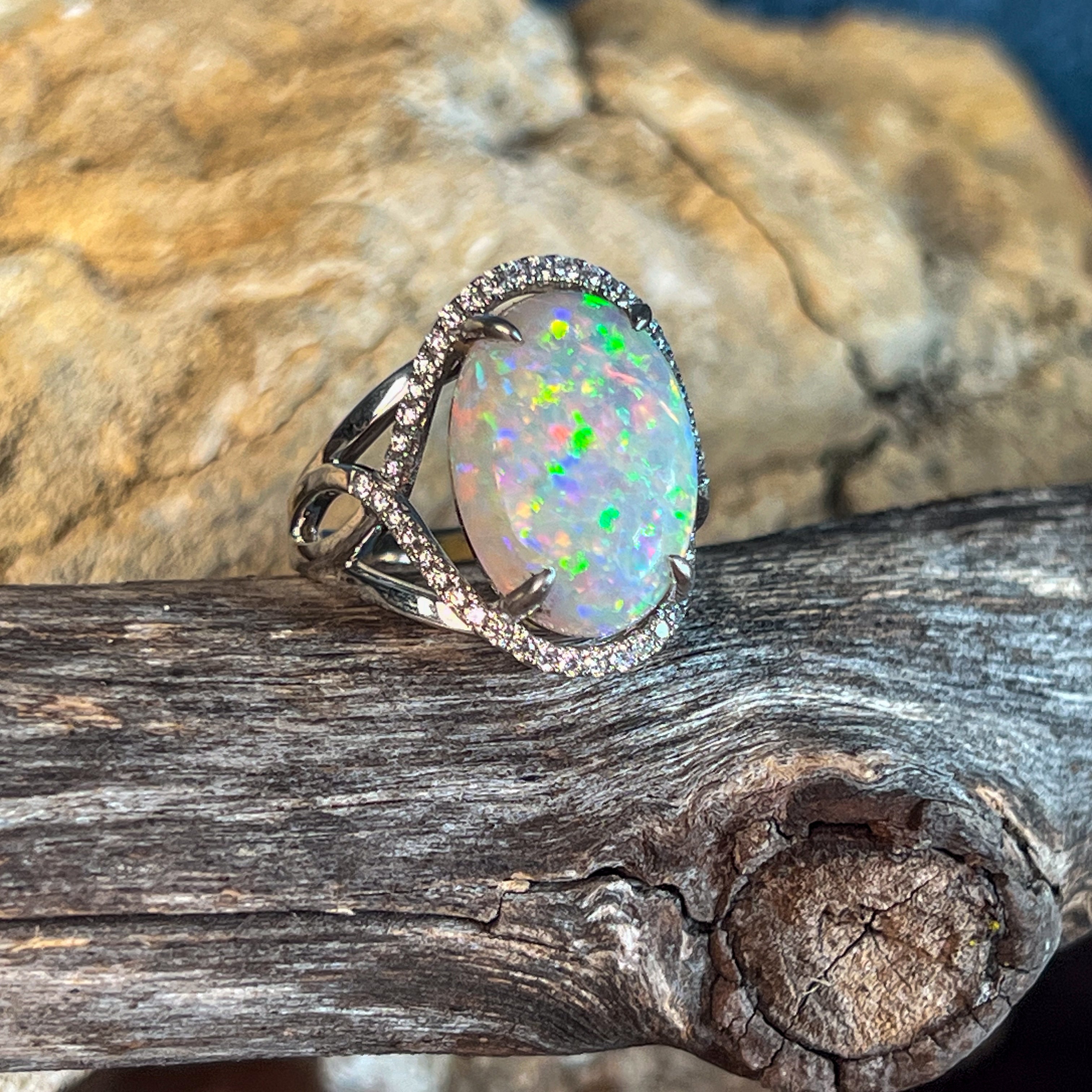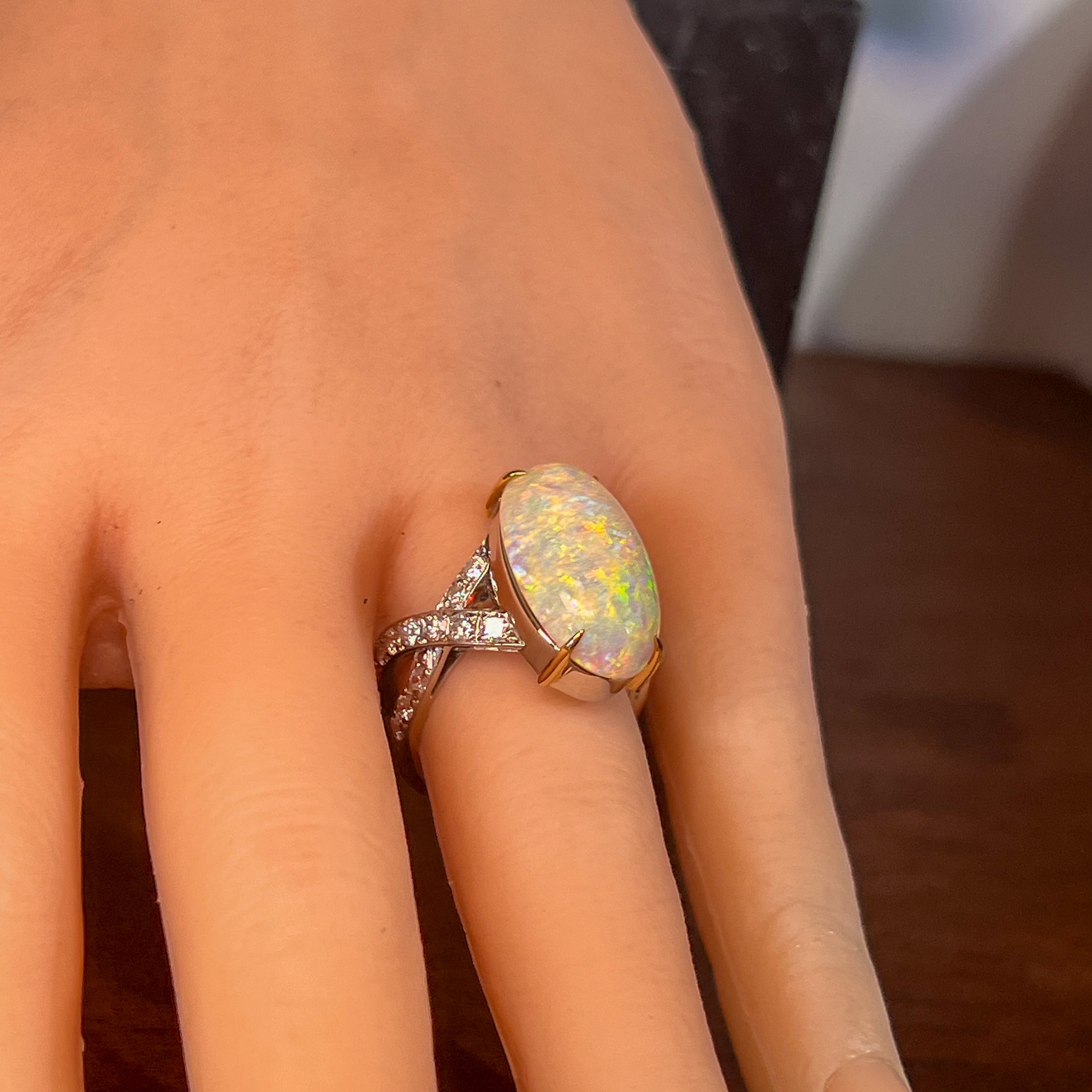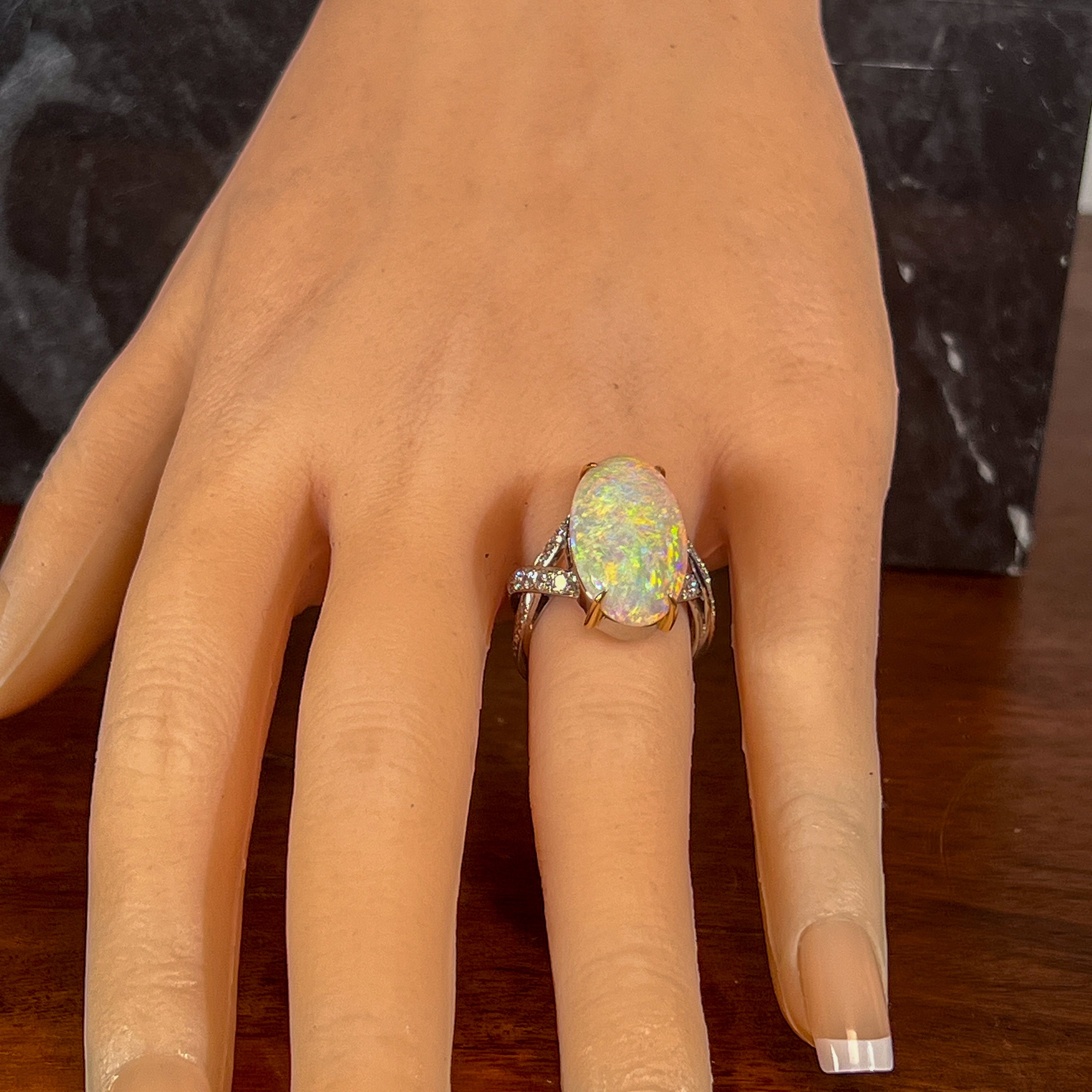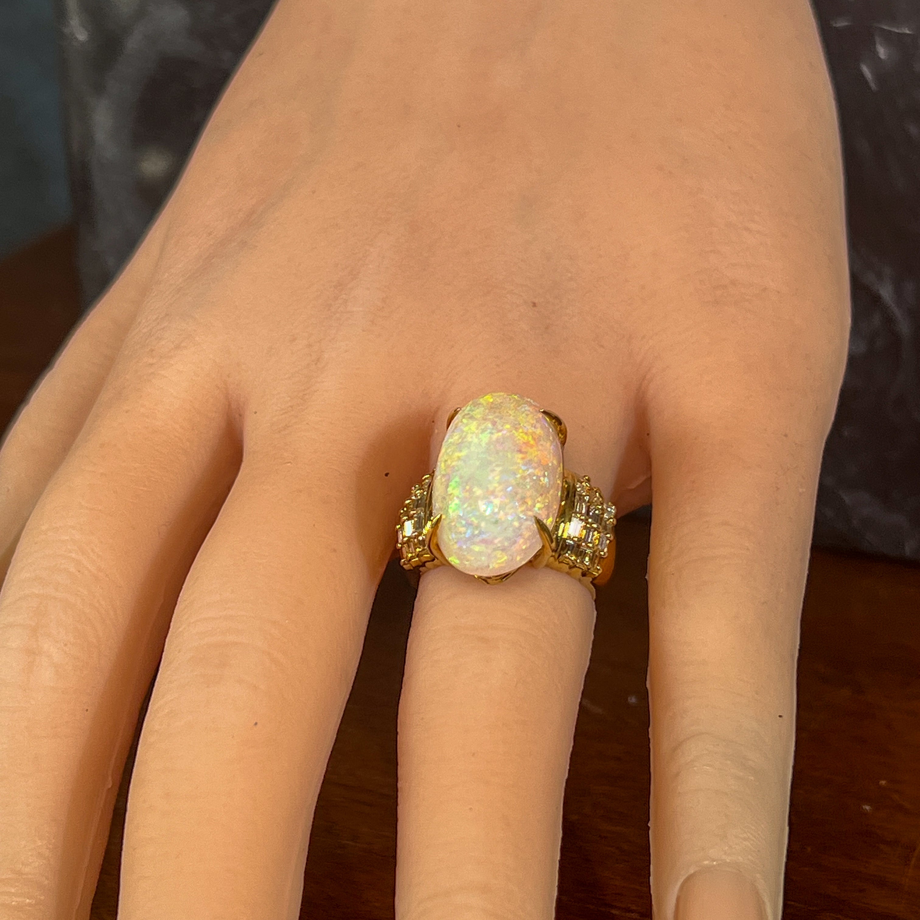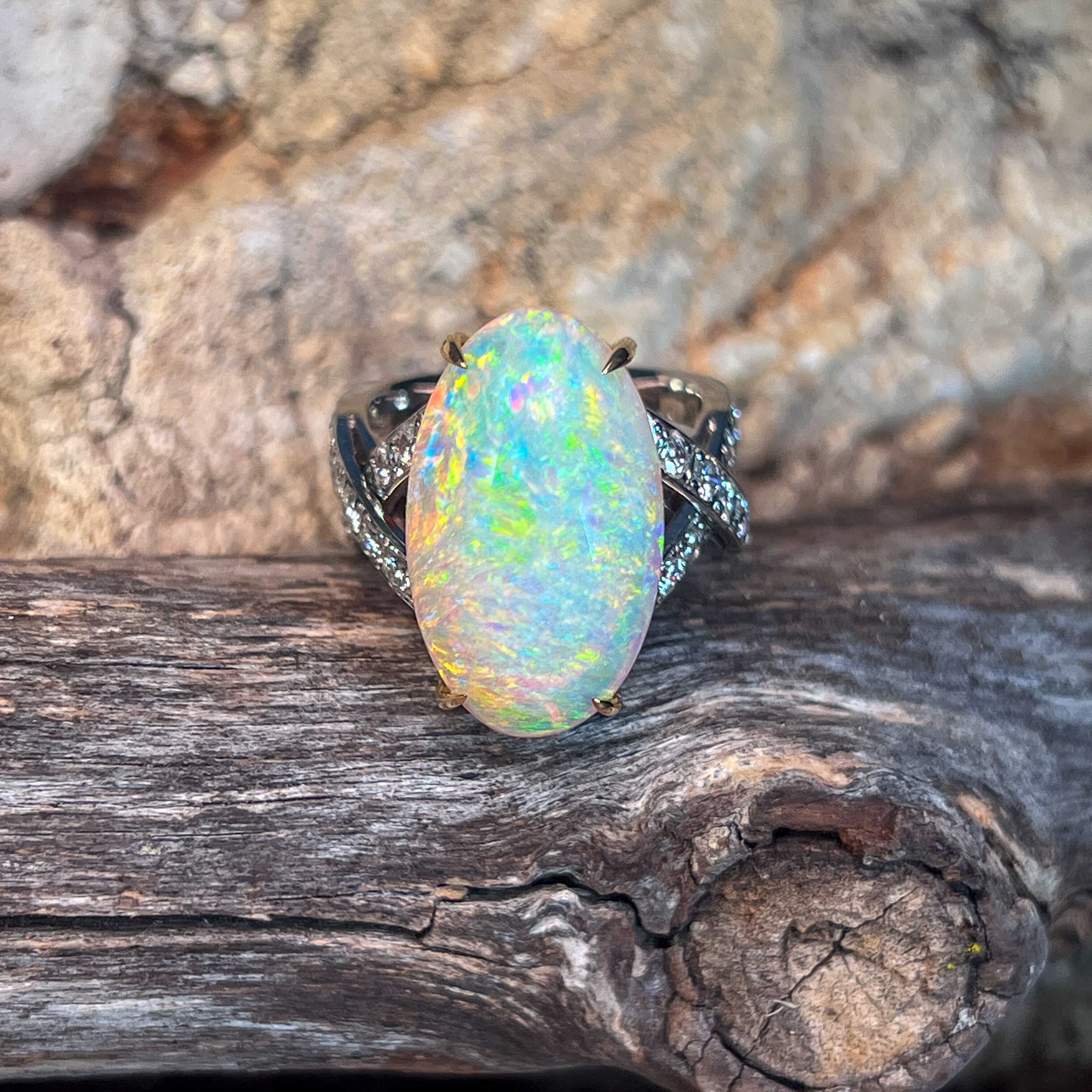 Diamond and opal rings often go well together, not only because they look good but also because diamond balances the opal stones' softness.