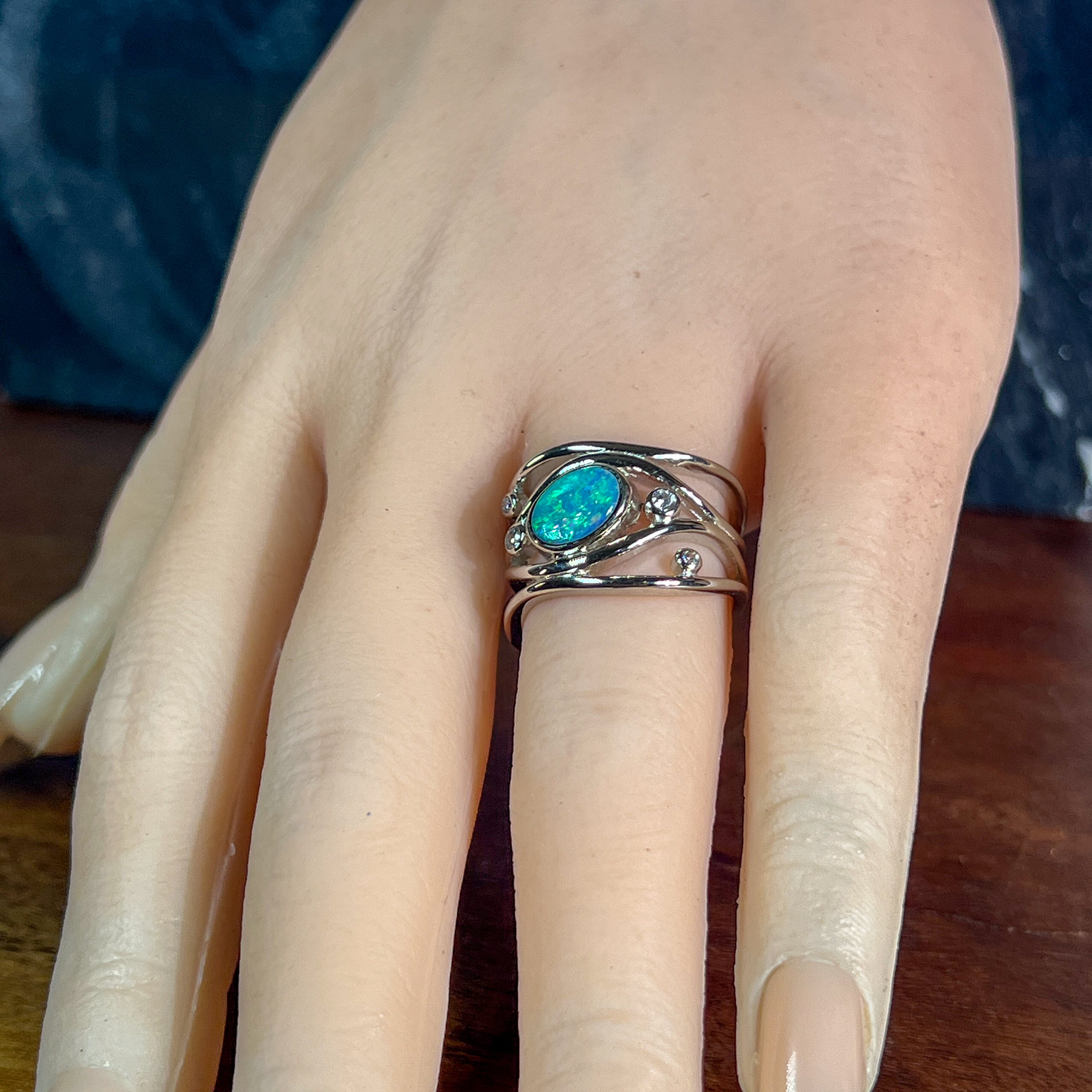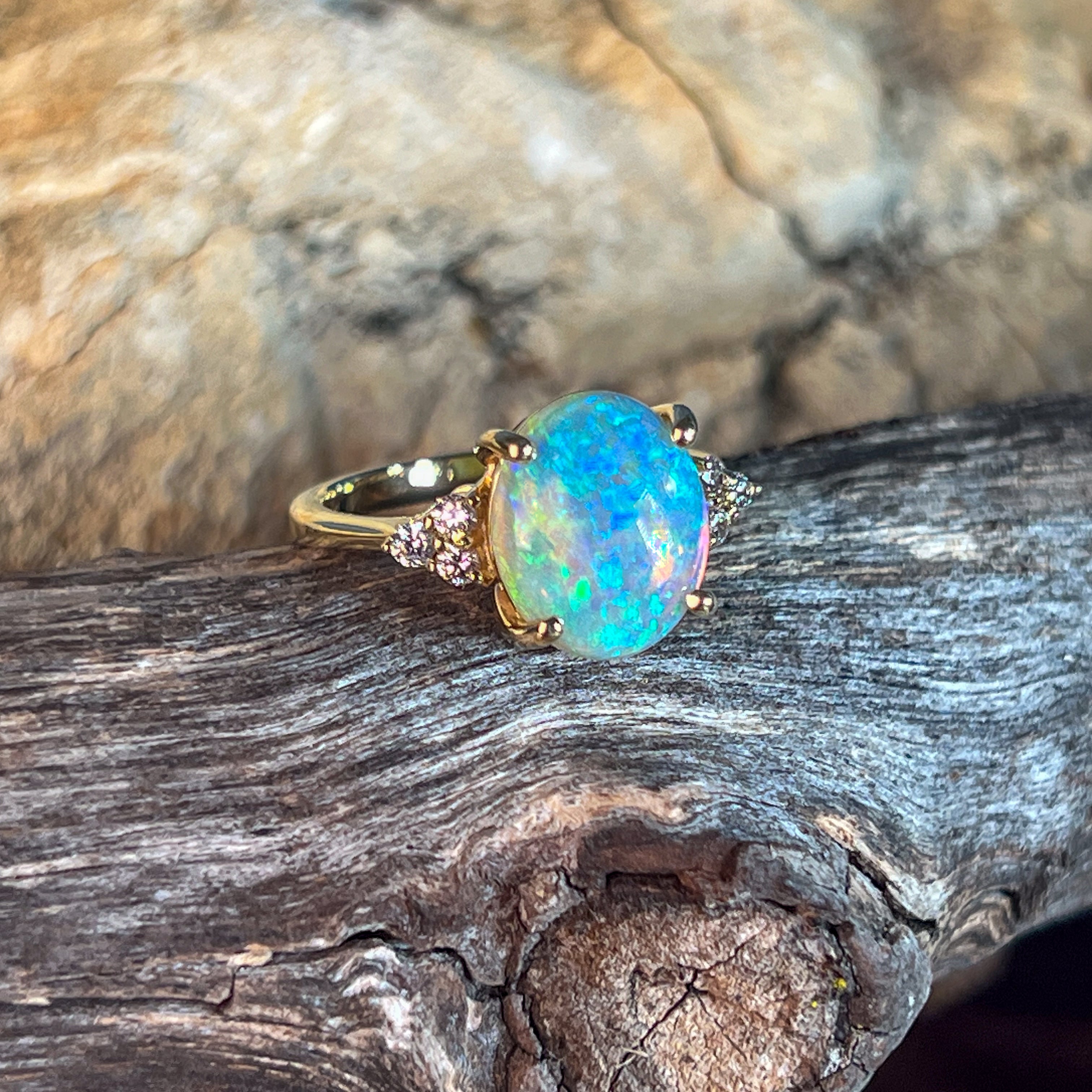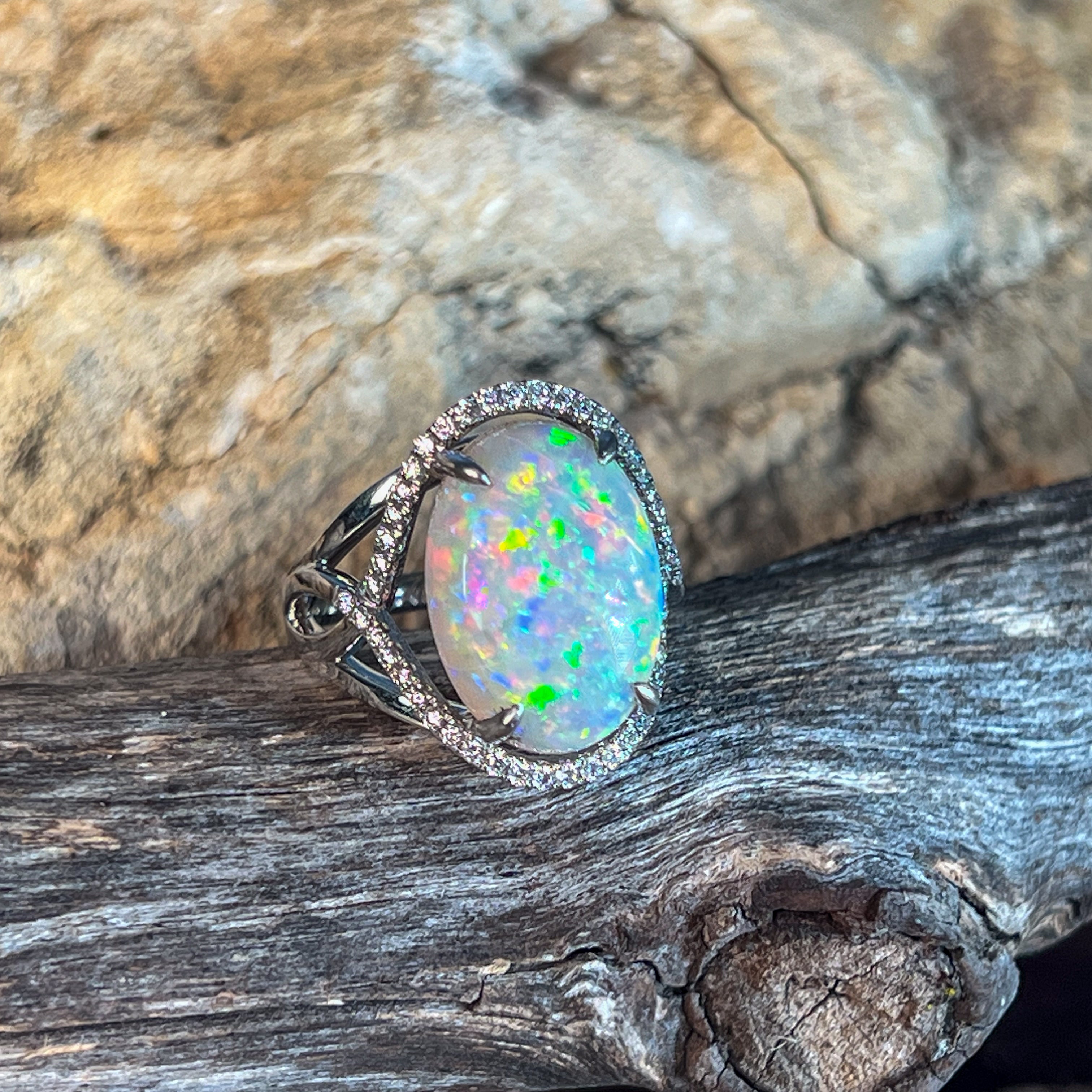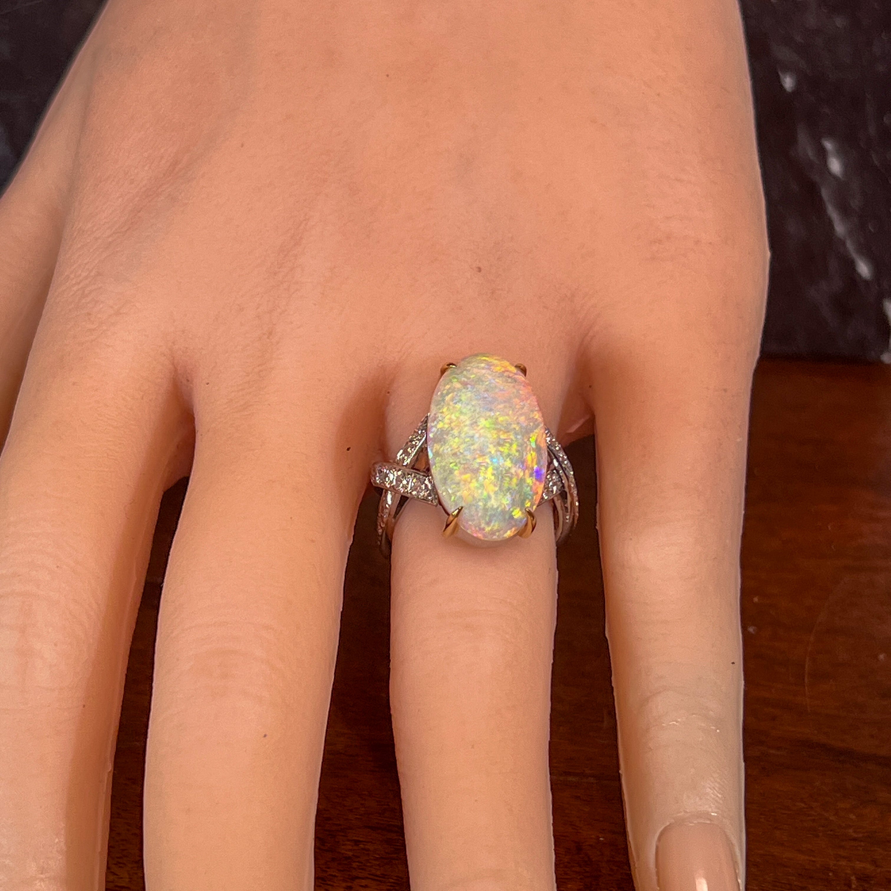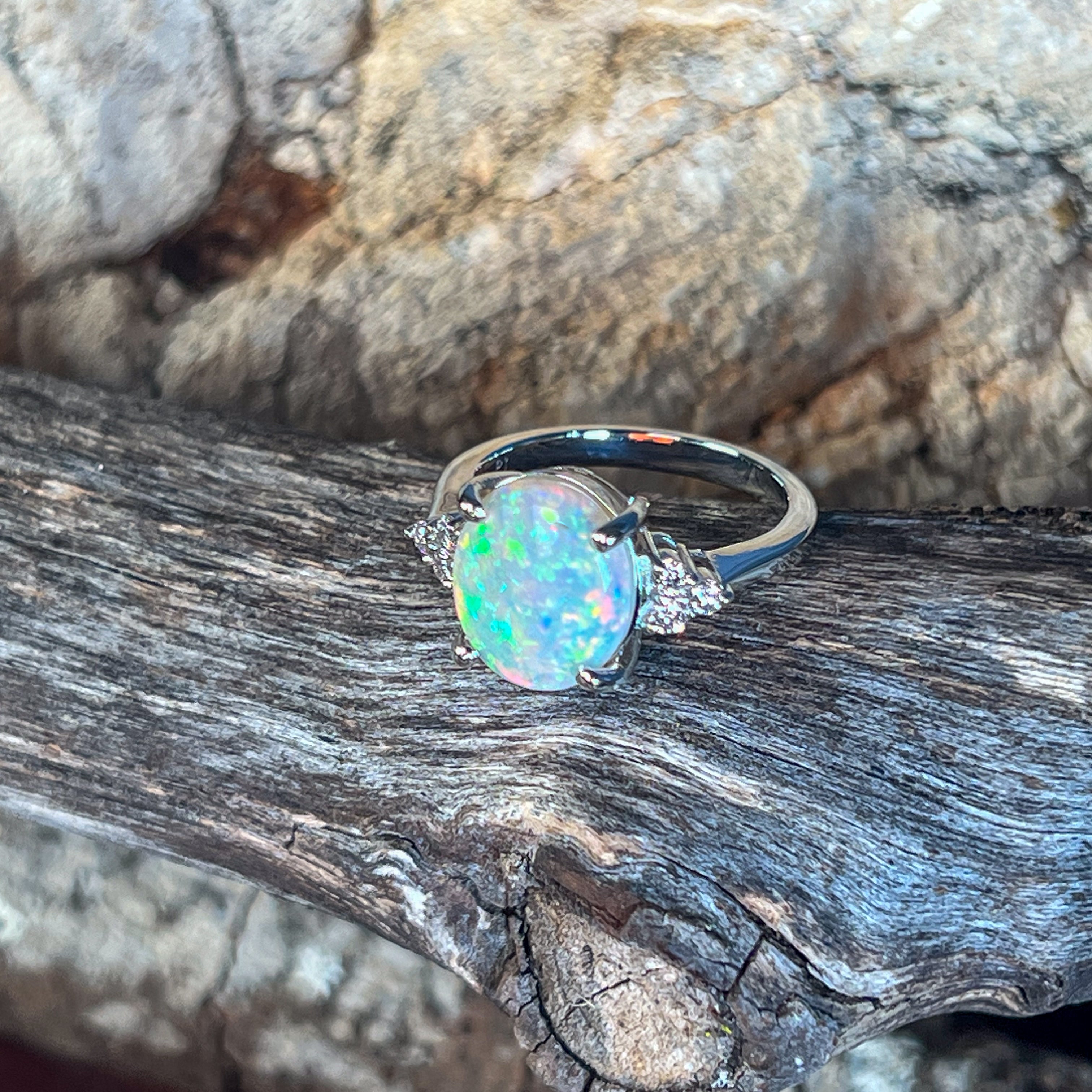 Diamond and opal rings often go well together, not only because they look good but also because diamond balances the opal stones' softness.