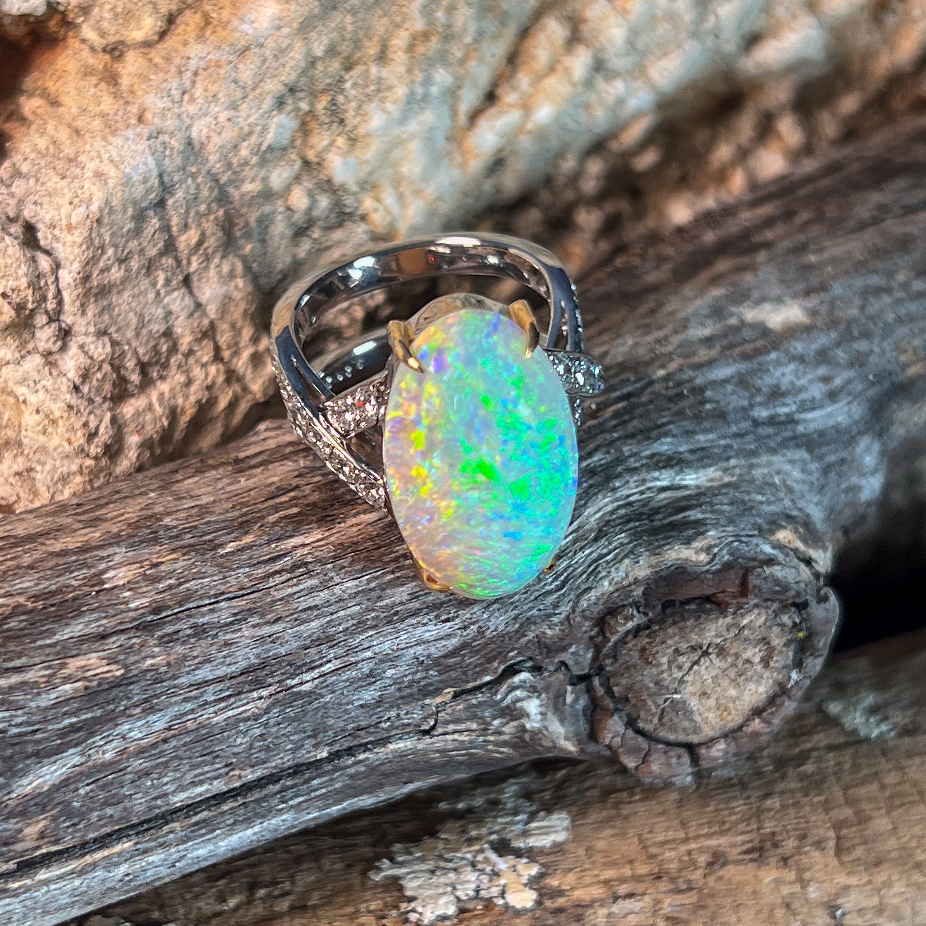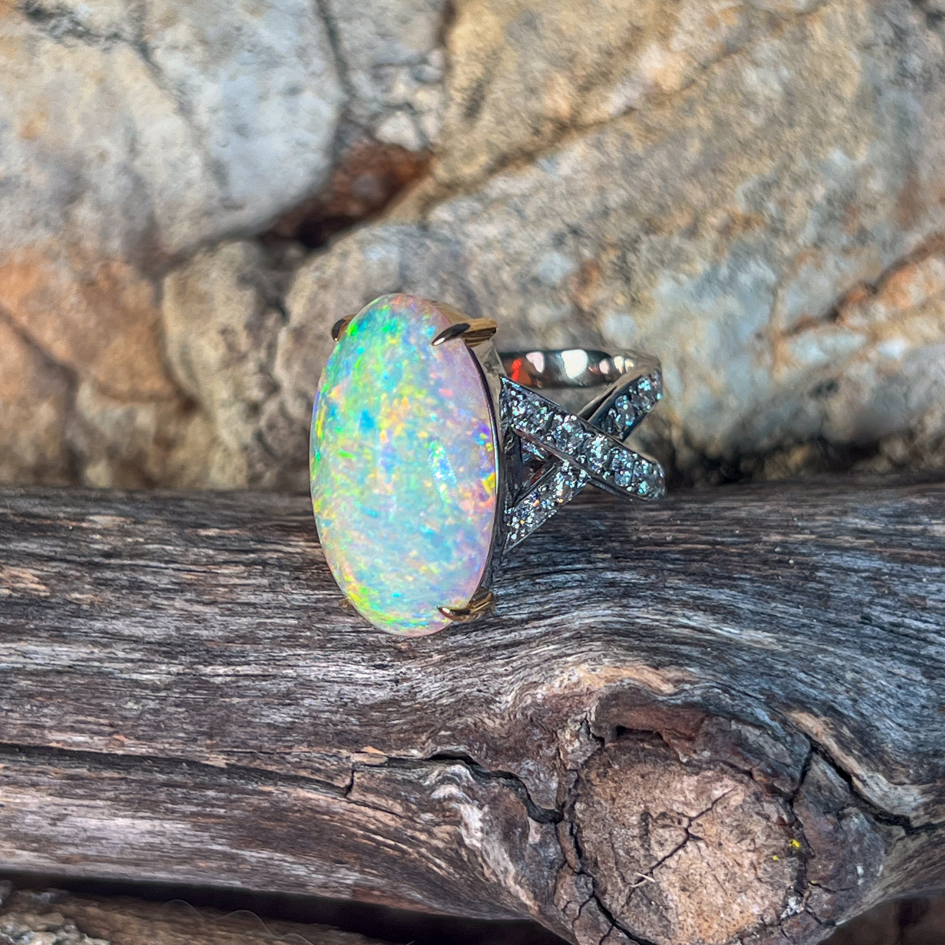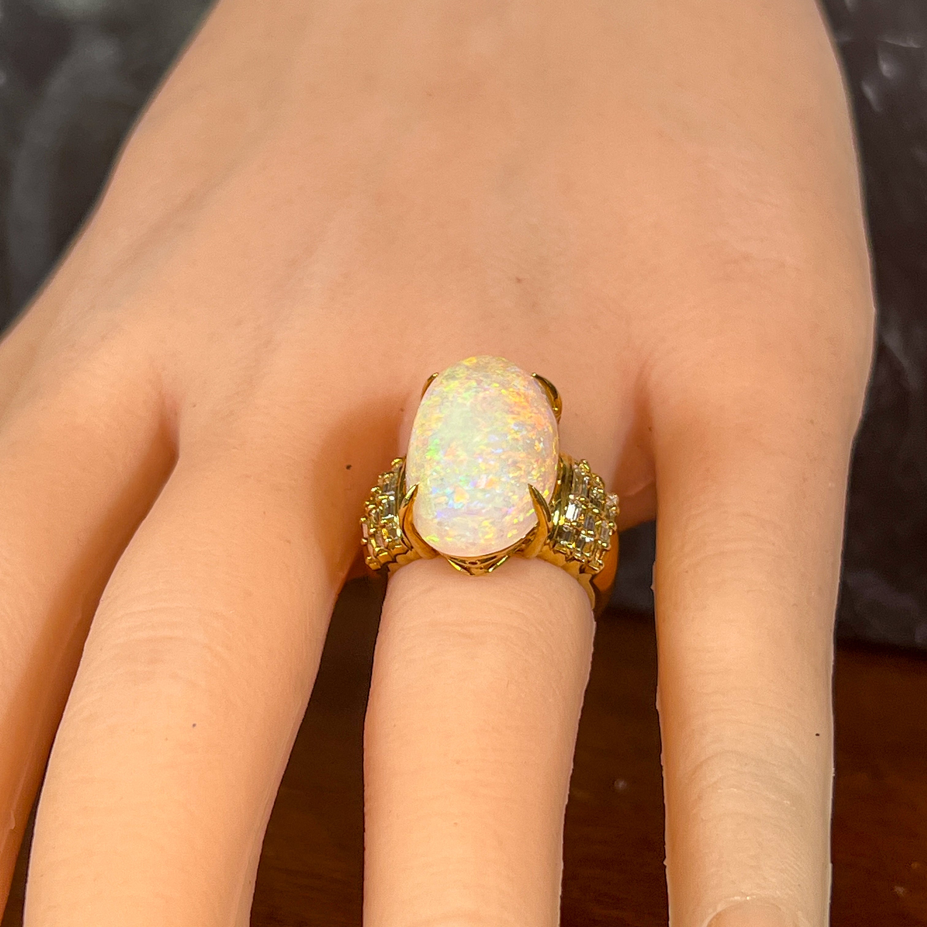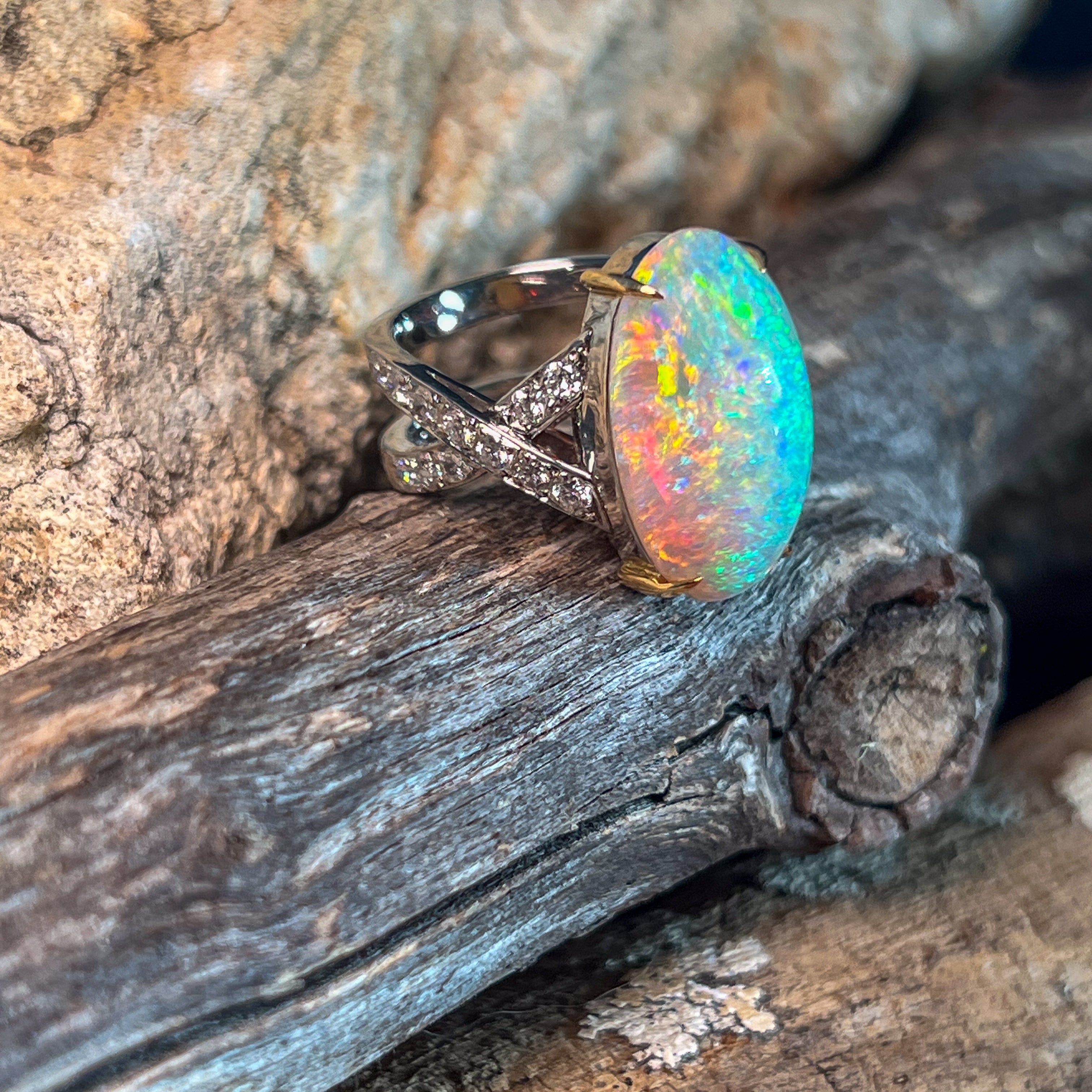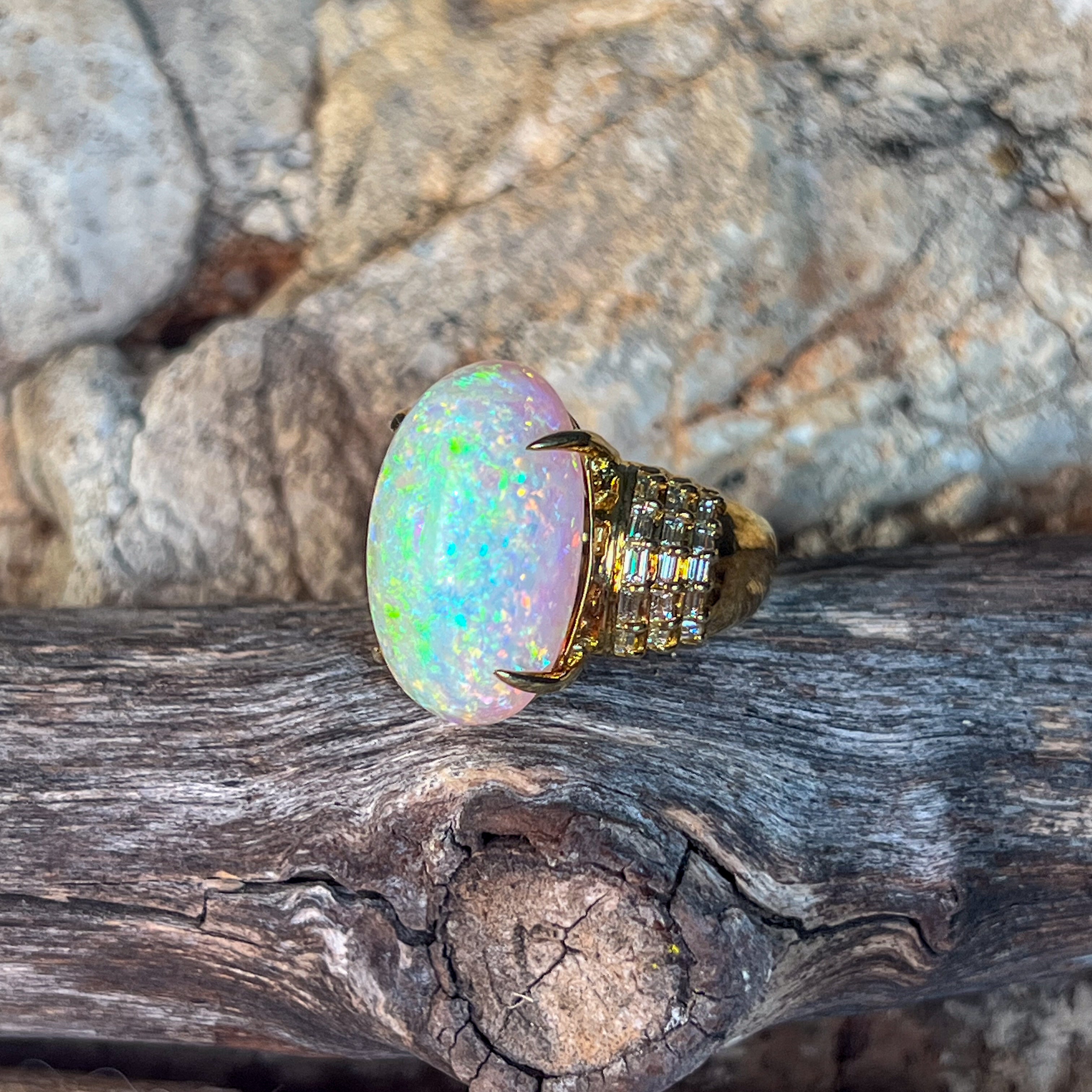 Diamond and opal rings often go well together, not only because they look good but also because diamond balances the opal stones' softness.