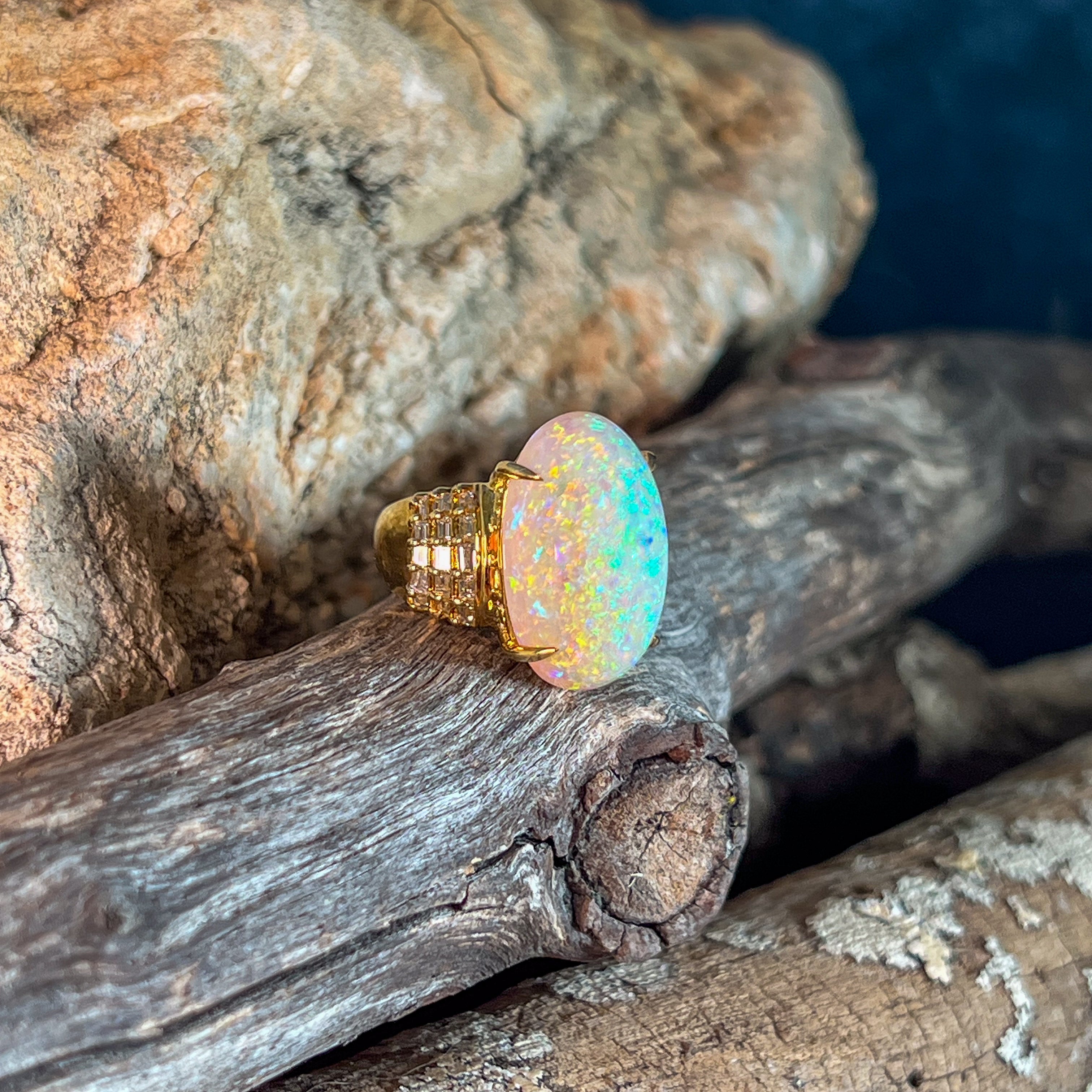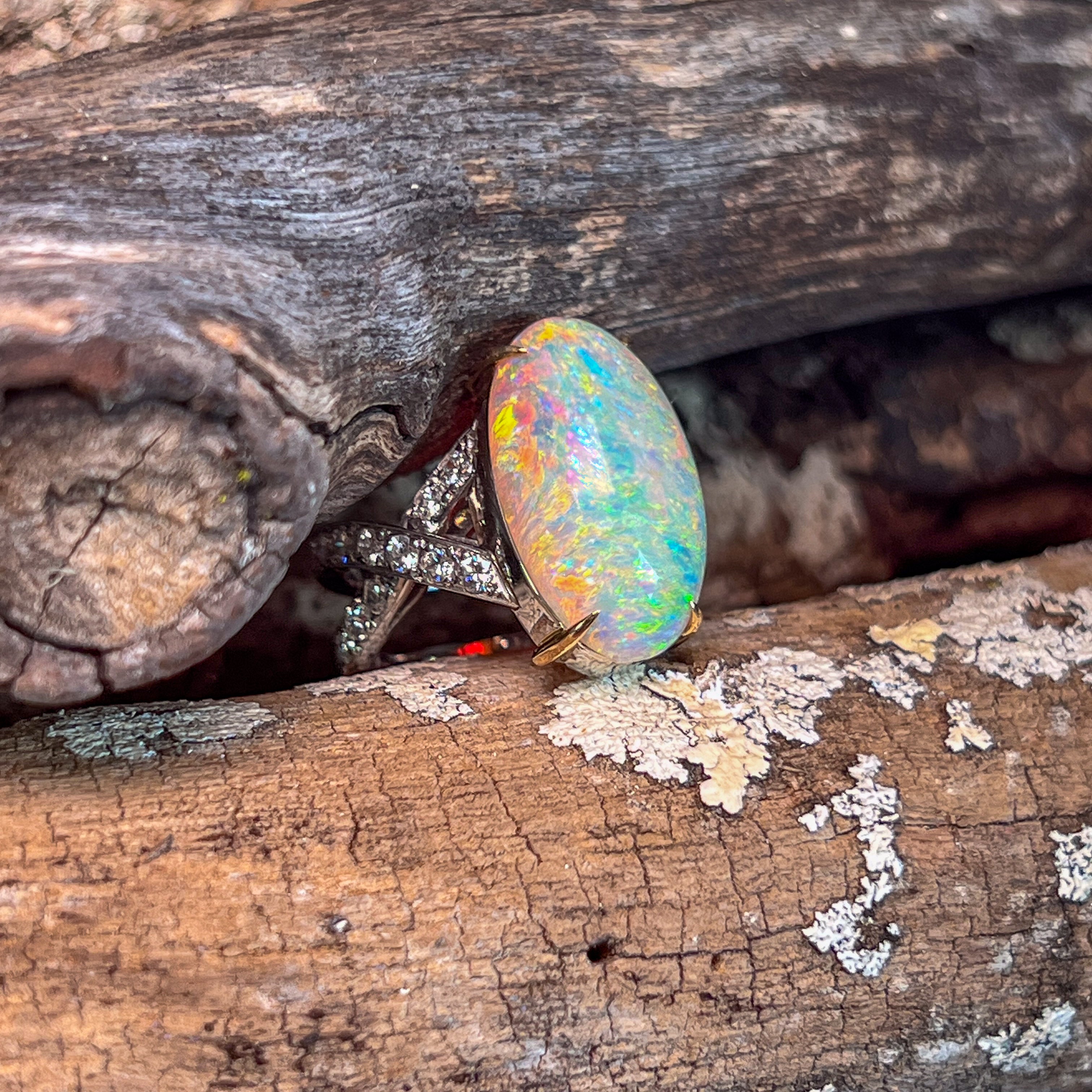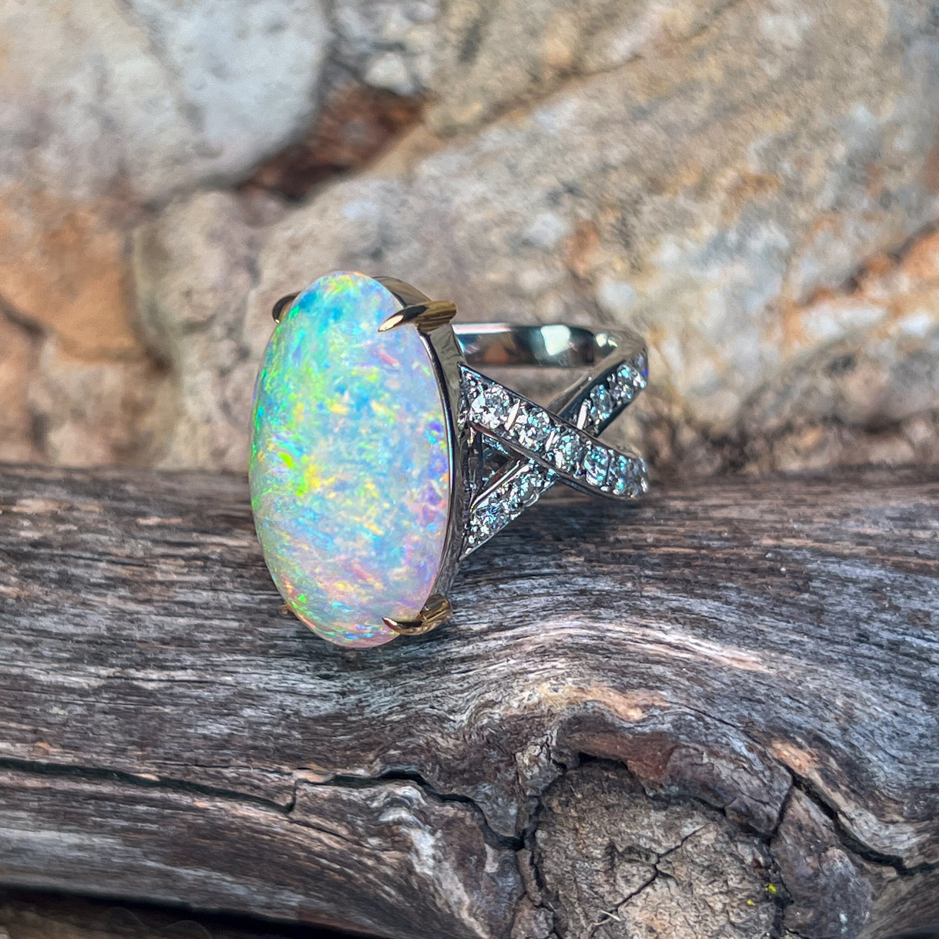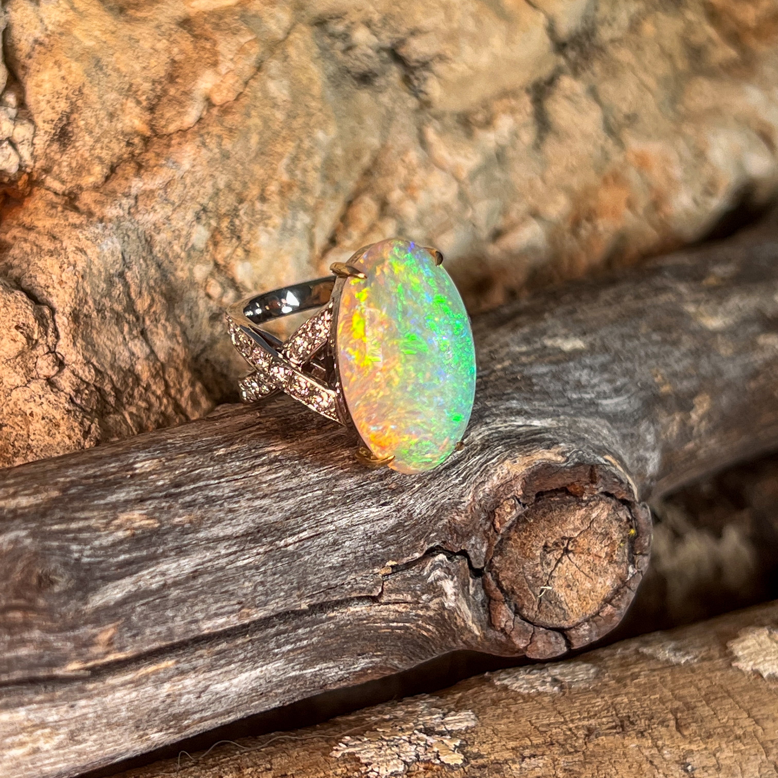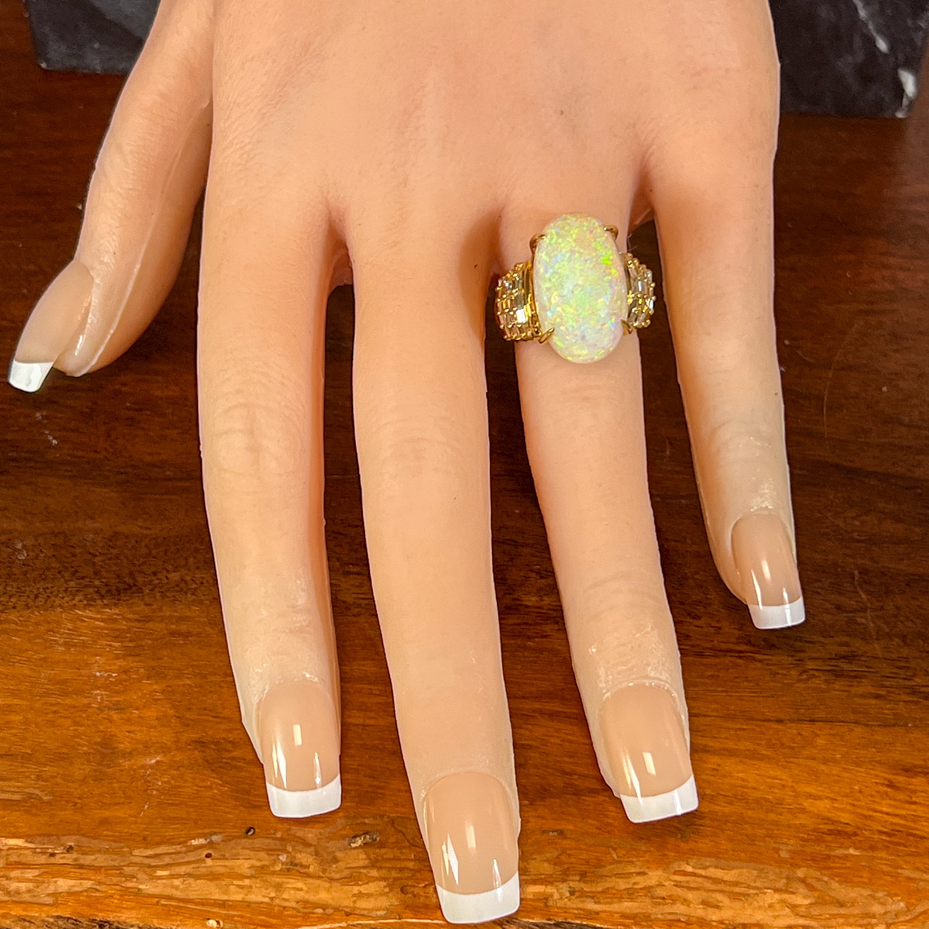Diamond and opal rings often go well together, not only because they look good but also because diamond balances the opal stones' softness.
