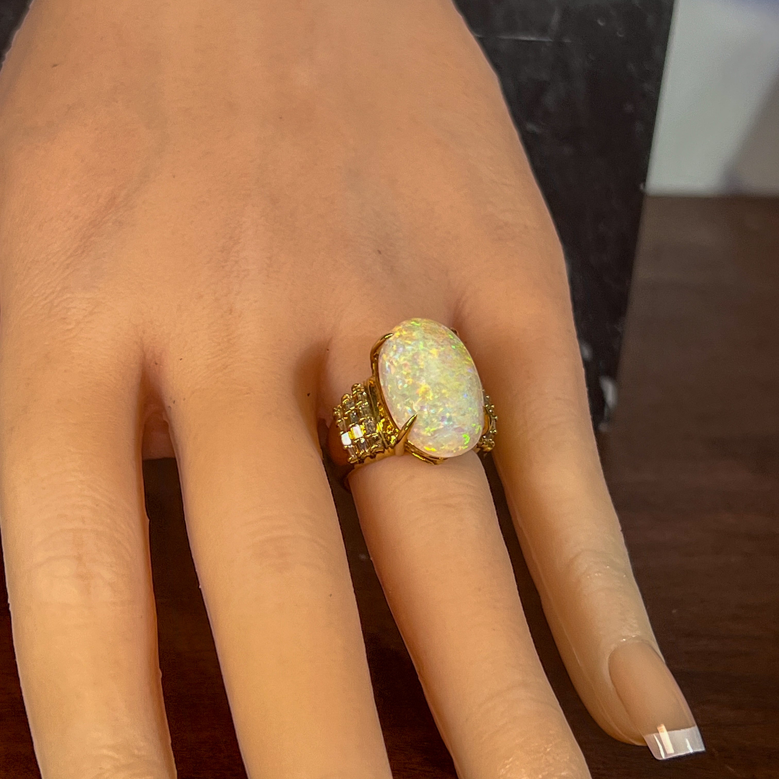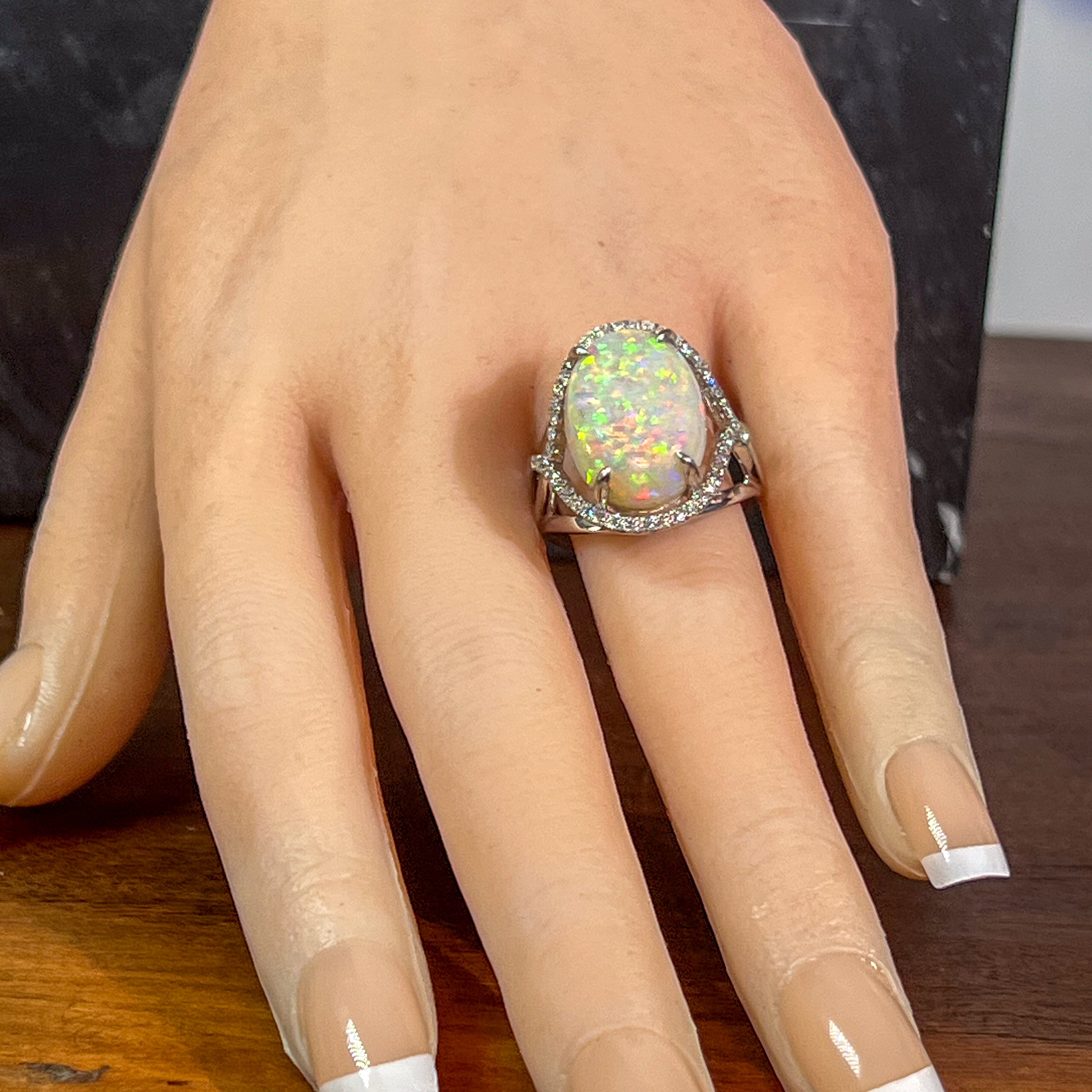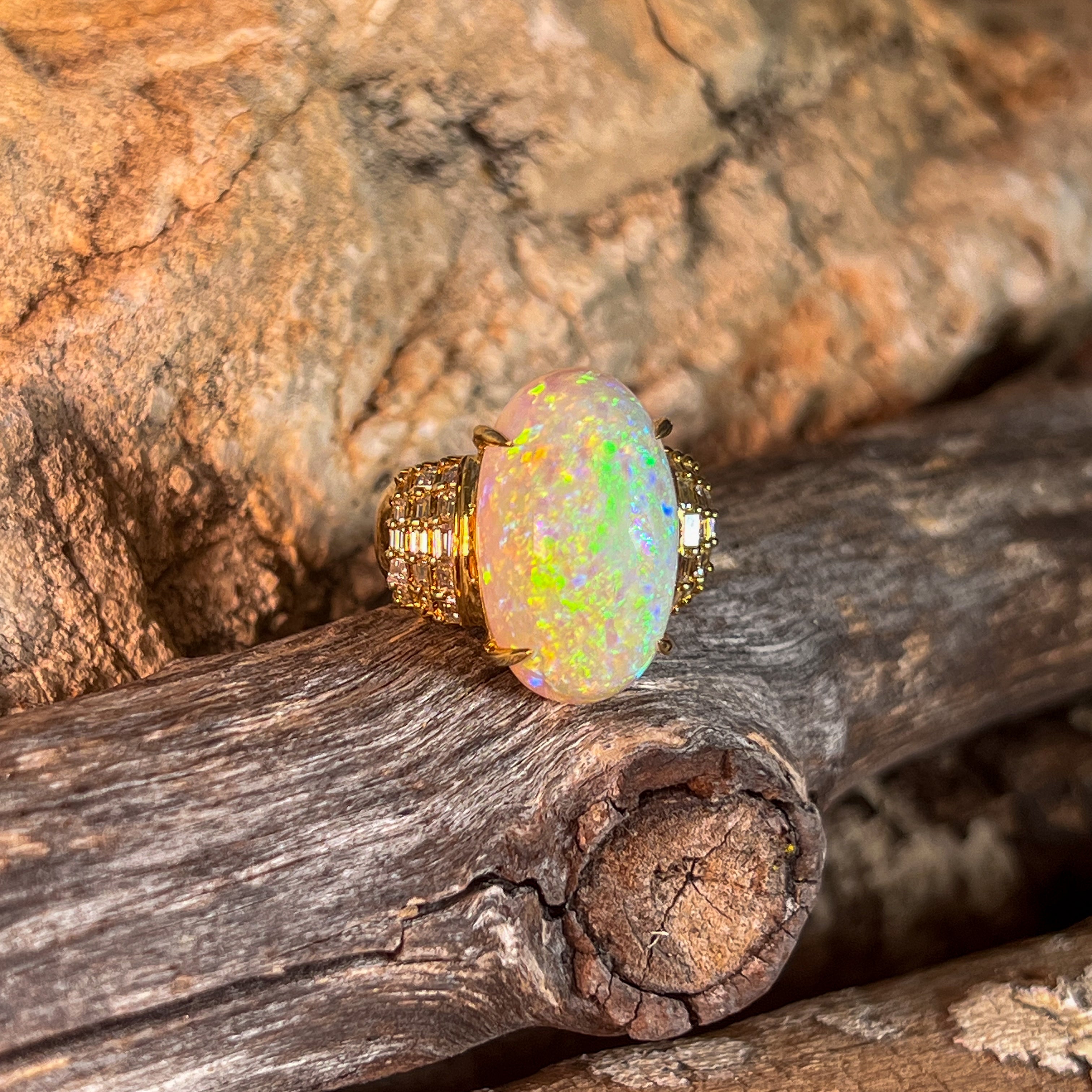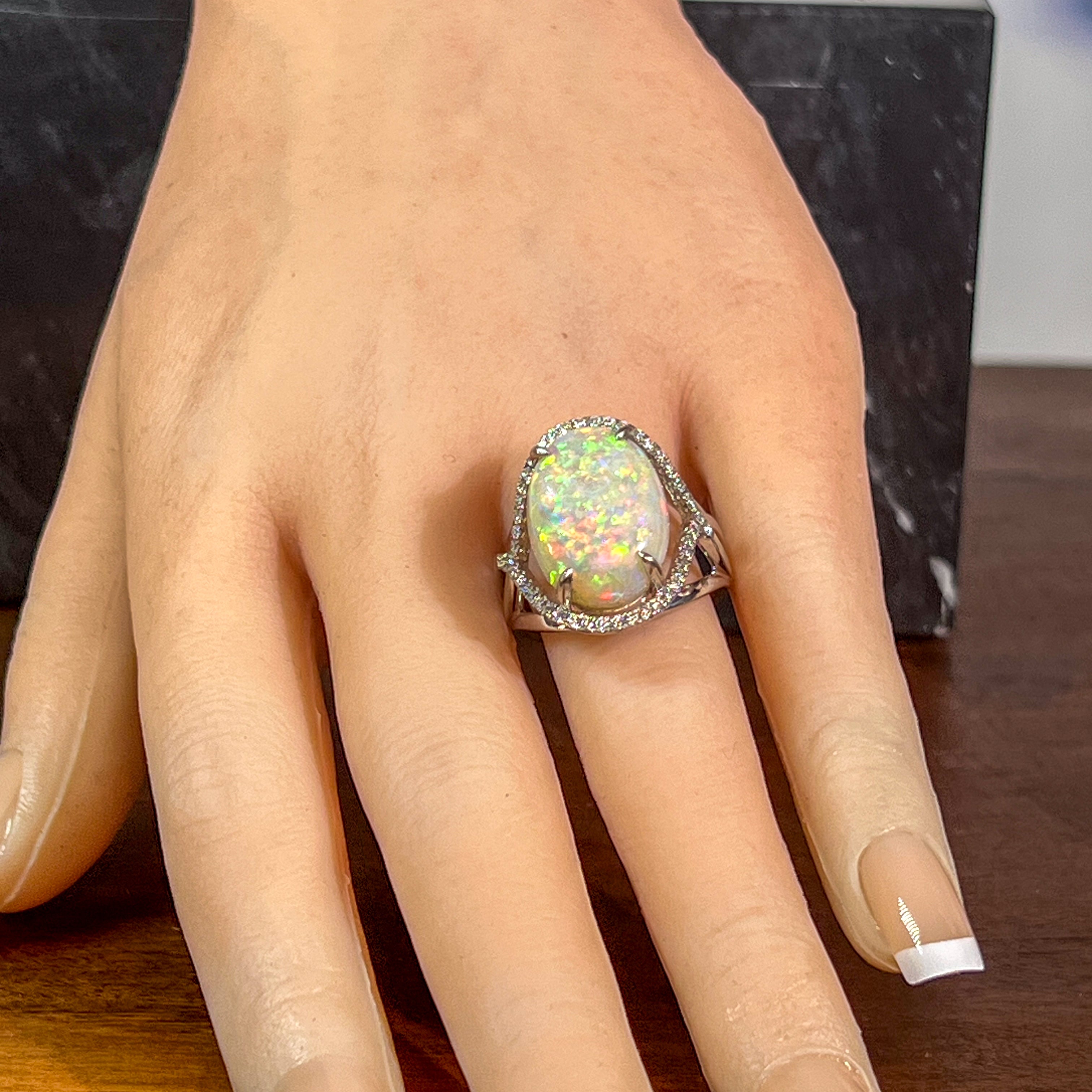 You may opt for gold opal rings, and if you don't like yellow gold, we also have white gold opal rings available. A white gold opal ring is also as beautiful as the others. Take a look at our 18-KT White Gold Light Opal Fire And Diamond Ring.