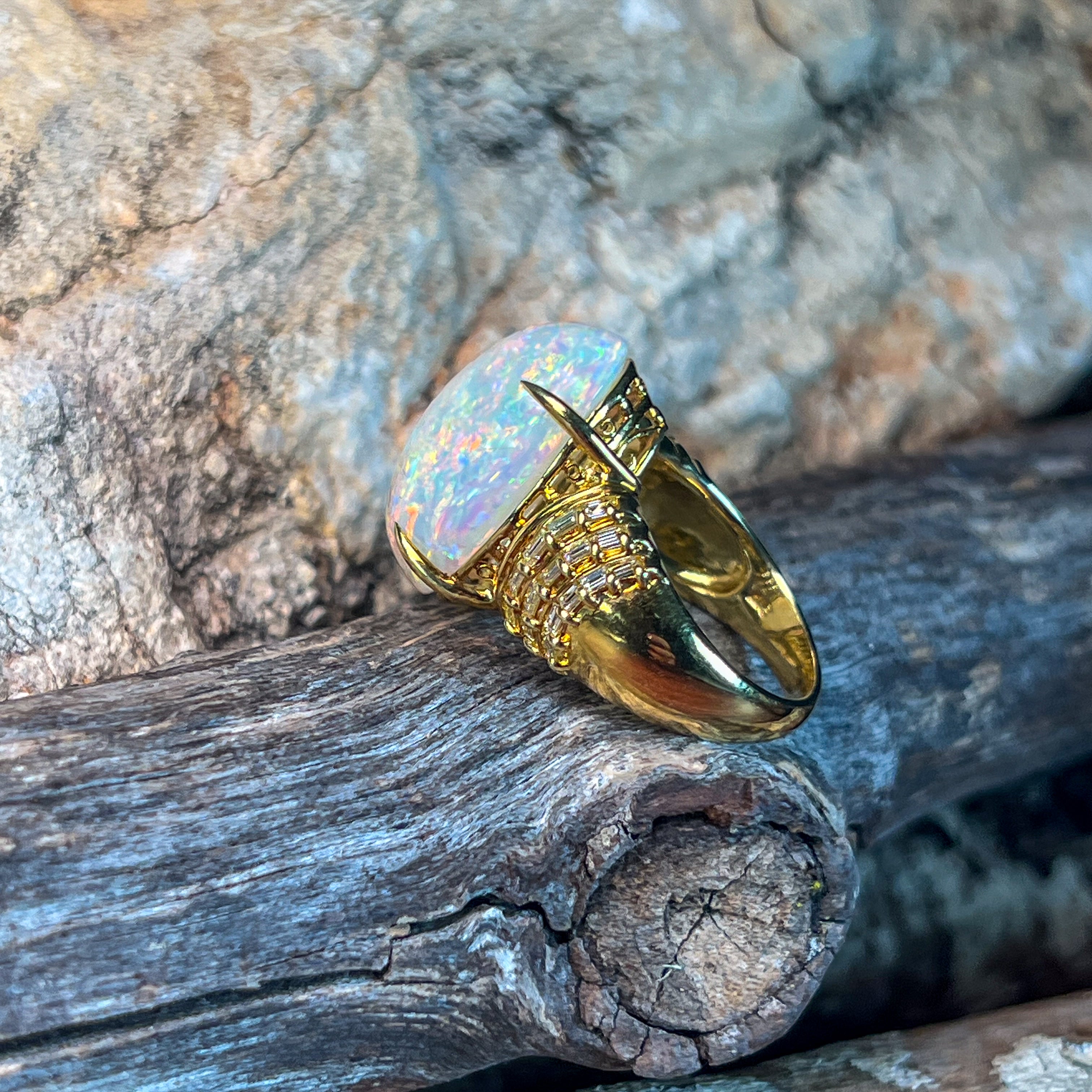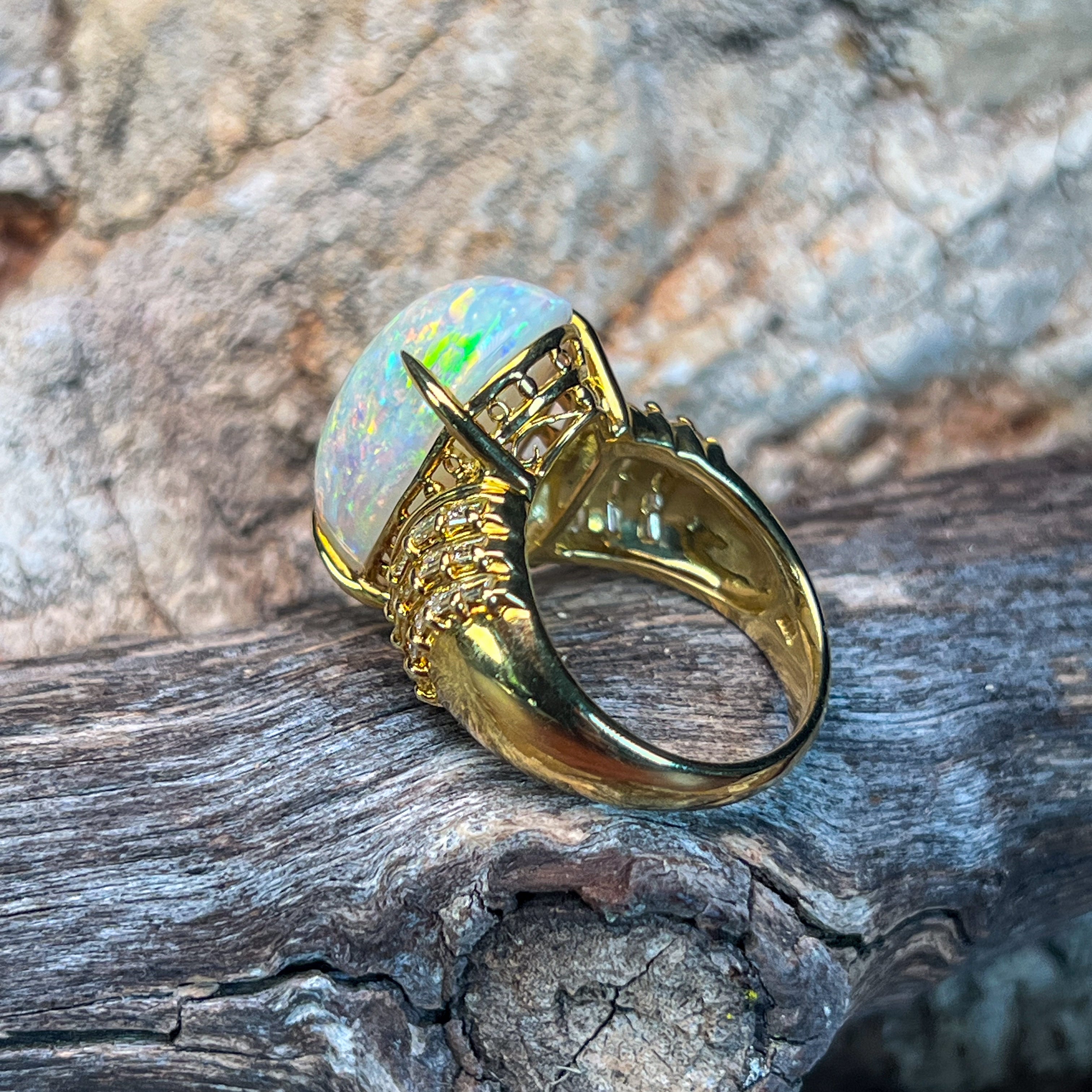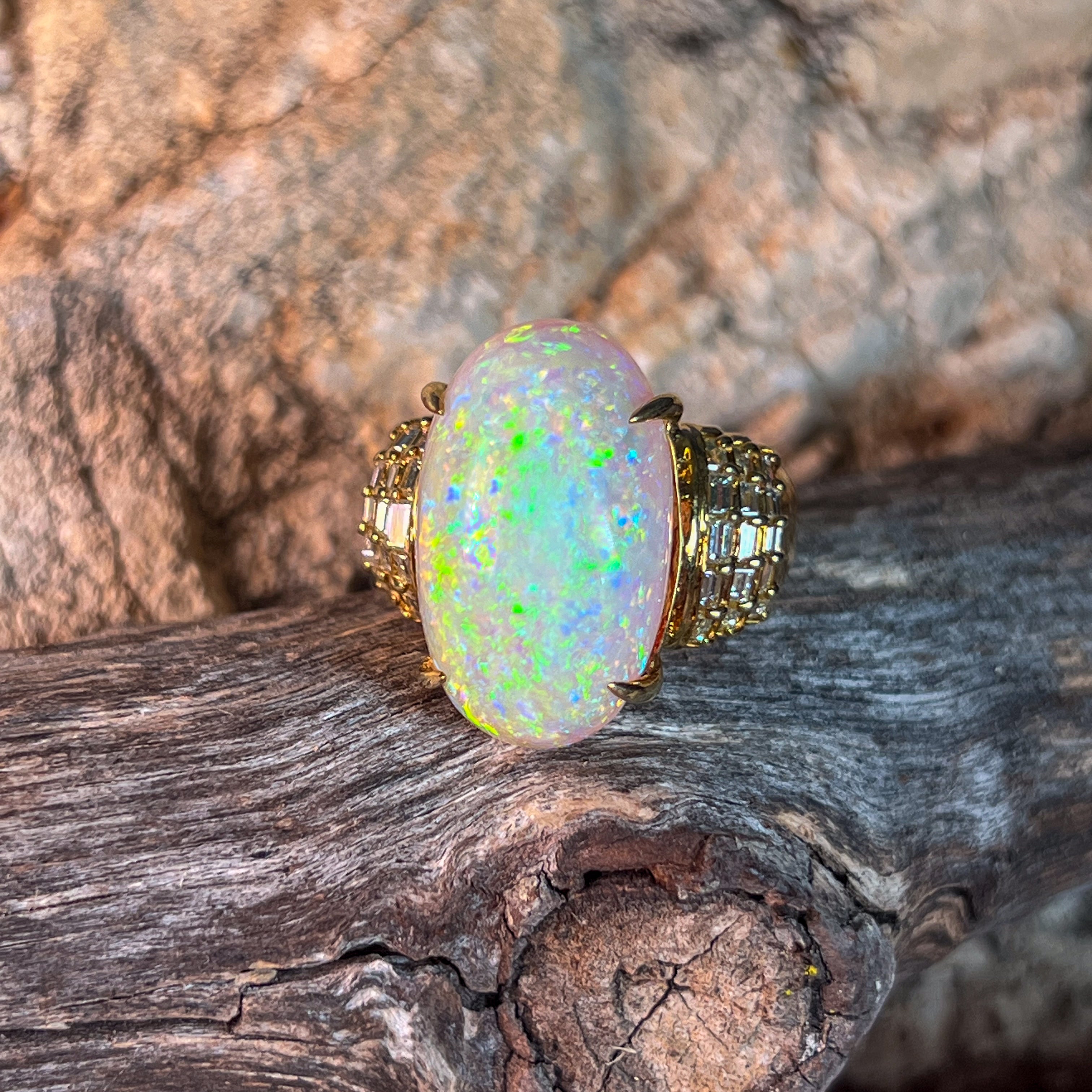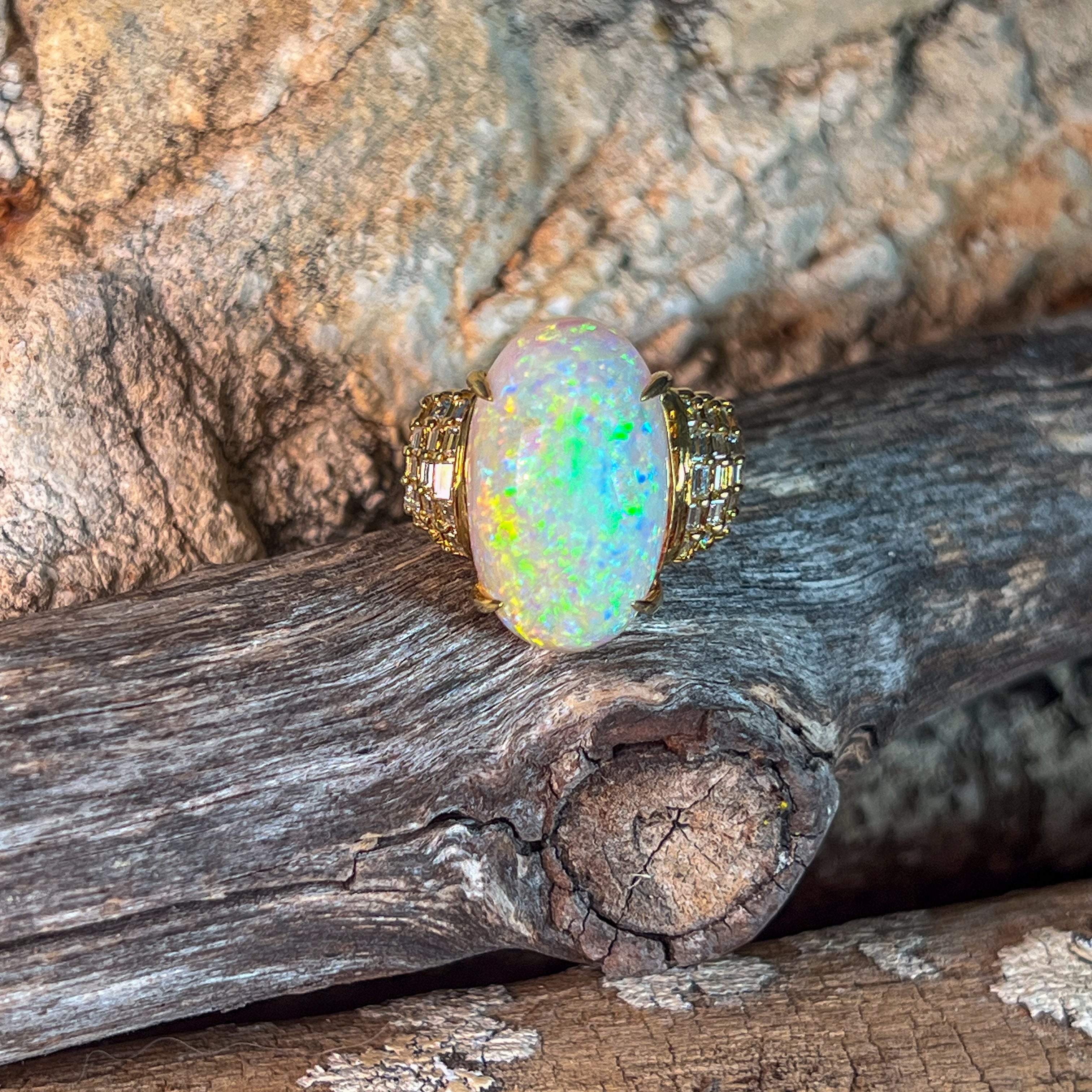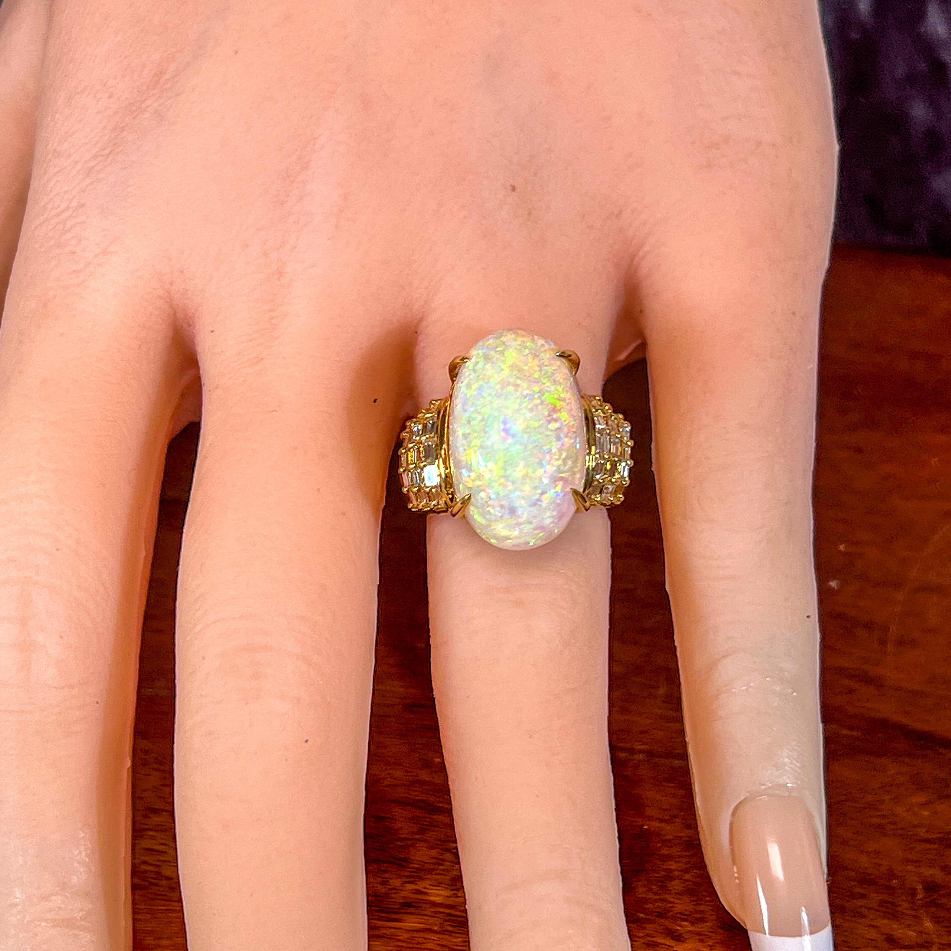 You may opt for gold opal rings, and if you don't like yellow gold, we also have white gold opal rings available. A white gold opal ring is also as beautiful as the others. Take a look at our 18-KT White Gold Light Opal Fire And Diamond Ring.